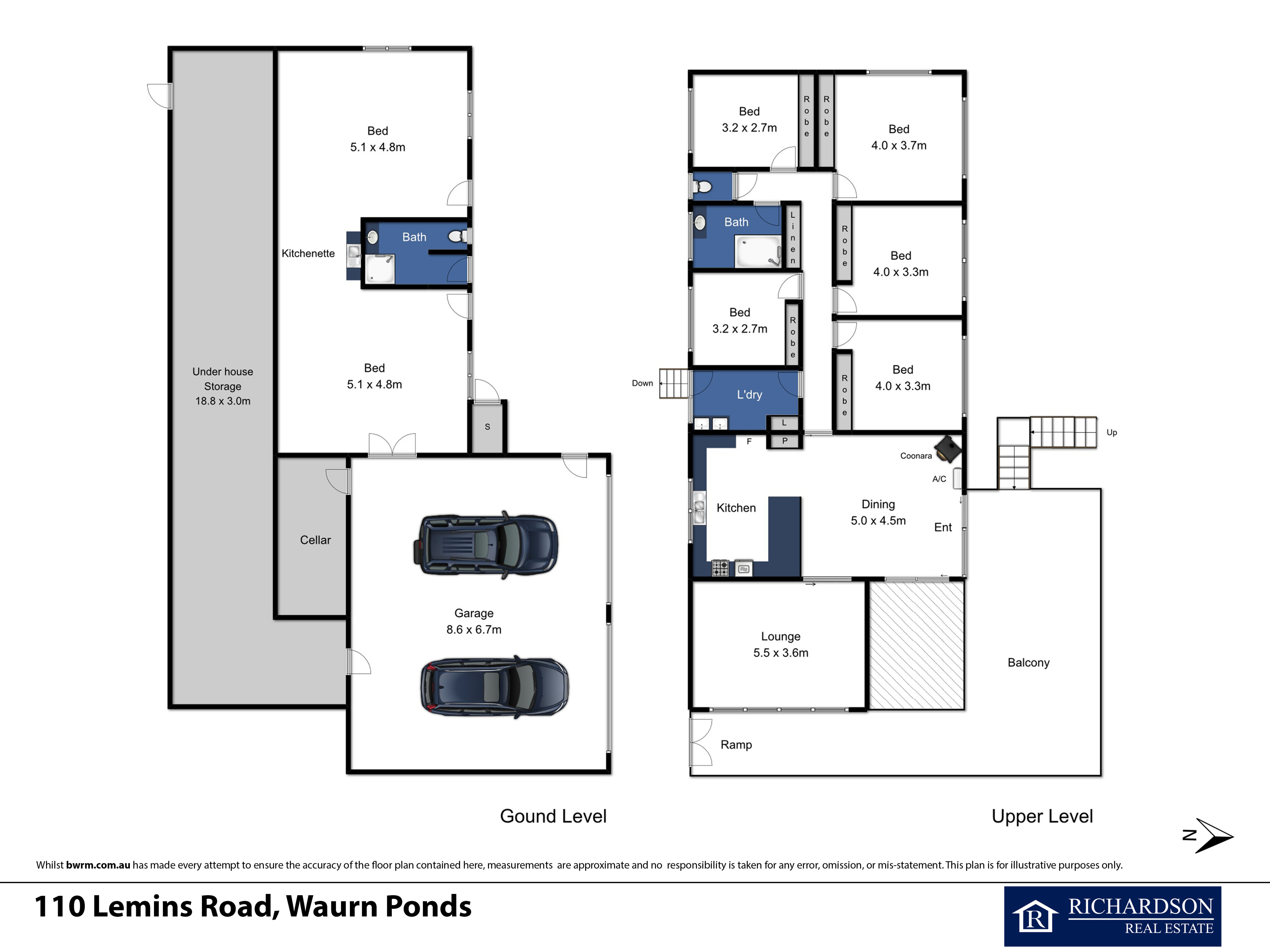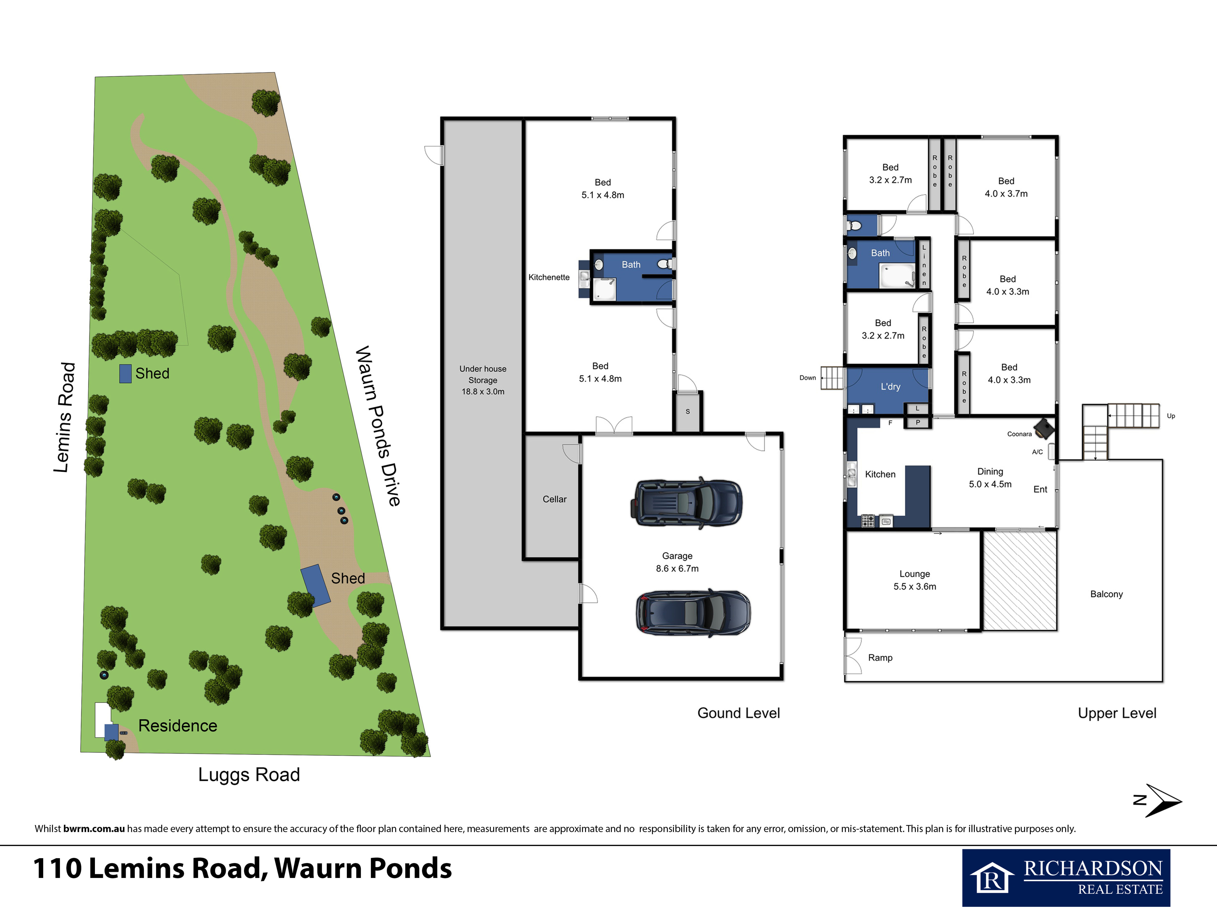 Comprising a spacious brick veneer home with five bedrooms, formal lounge, large kitchen/meals area, one bathroom, cellar, five bay machinery shed, site compound and double garage with storage. Additional under house accommodation includes a two bedroom self contained unit with kitchenette and bathroom.