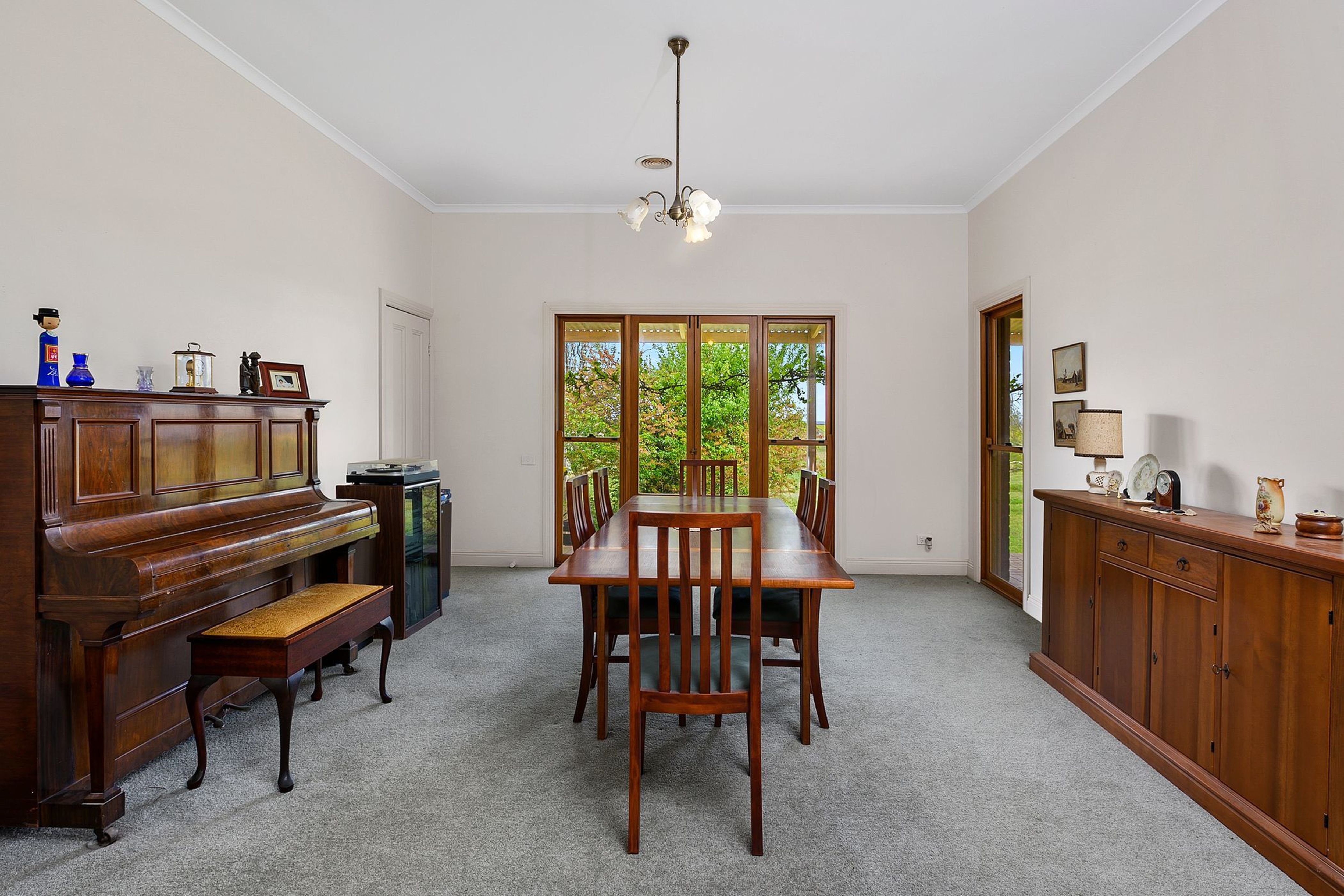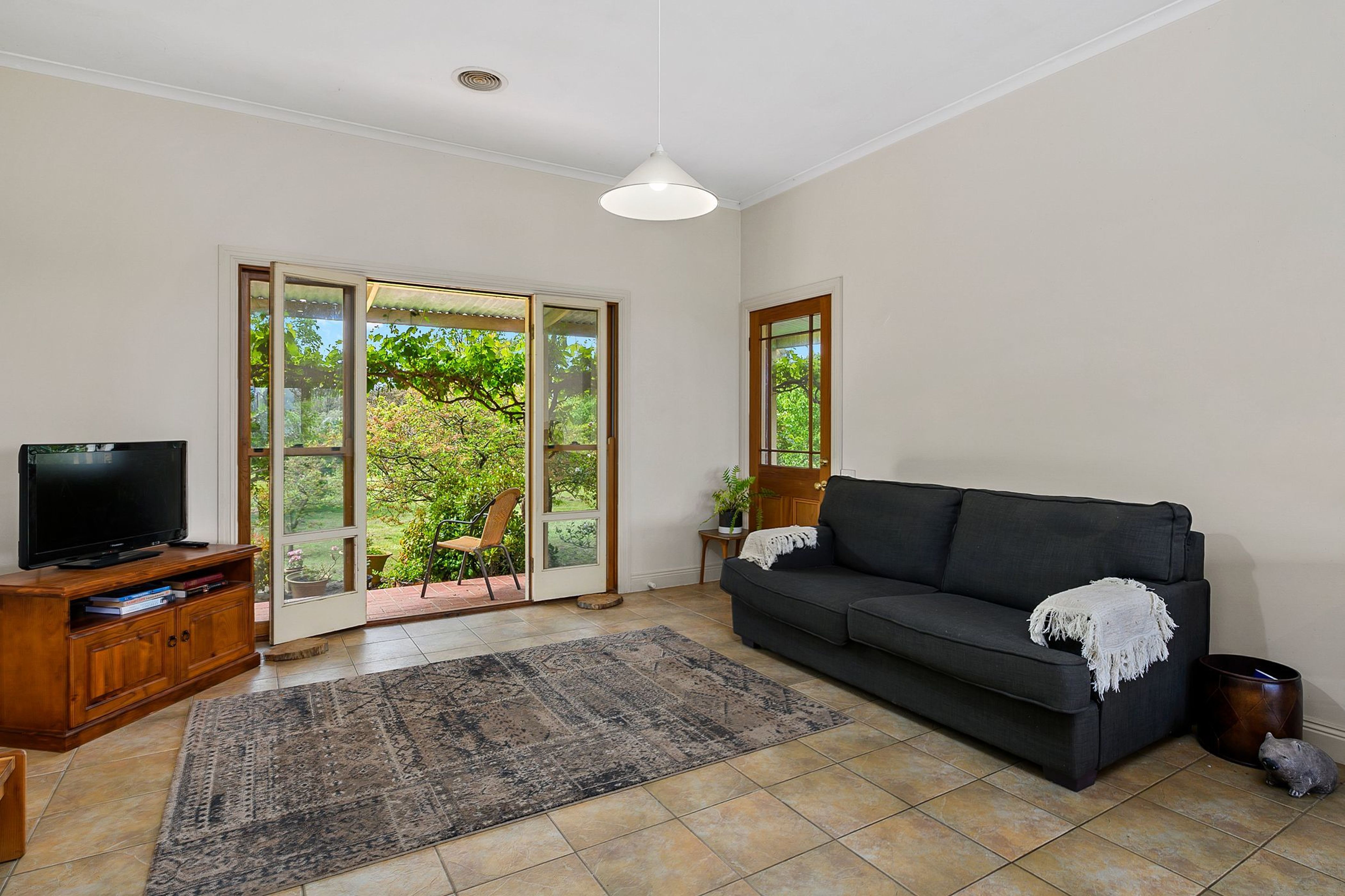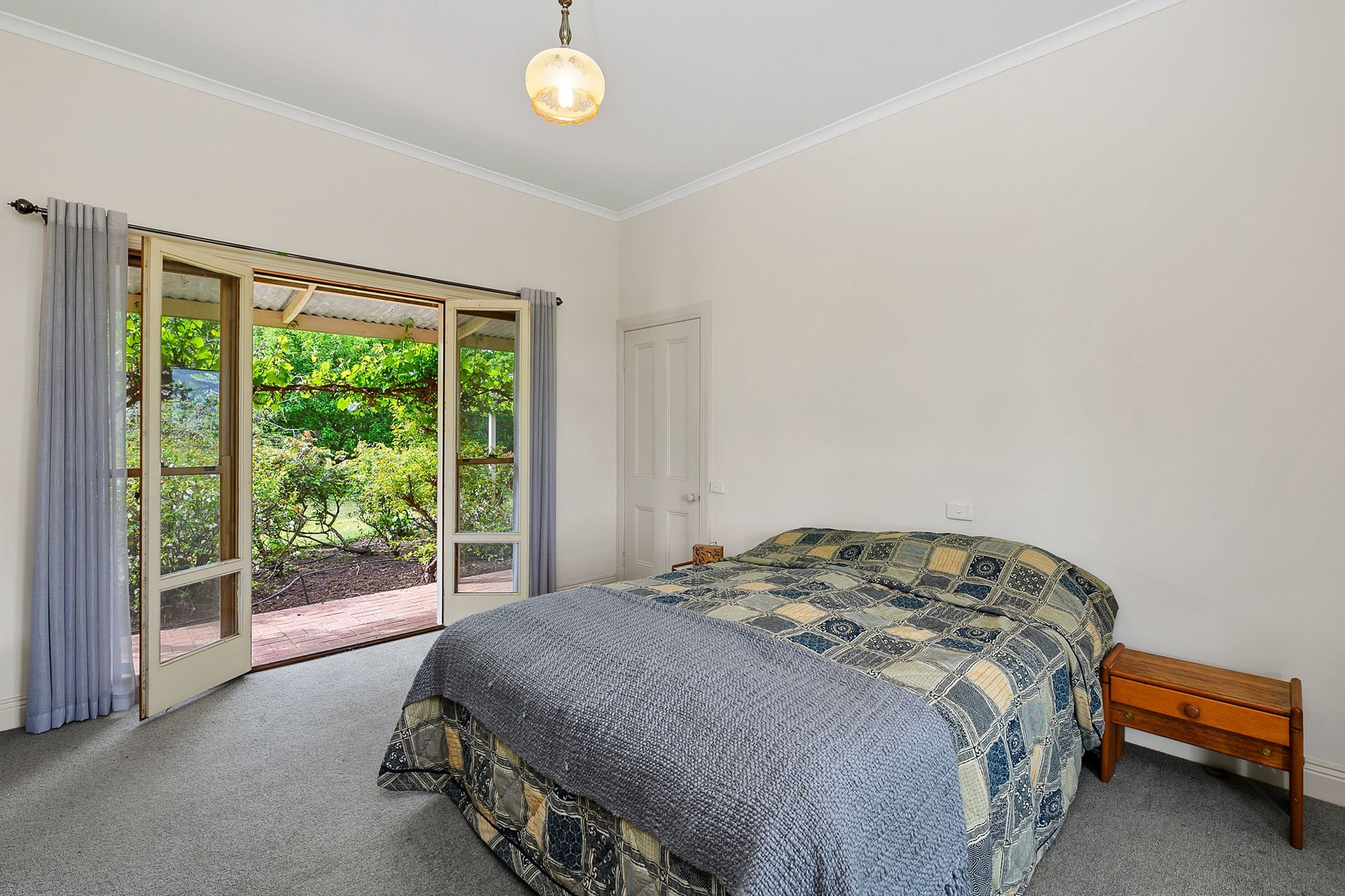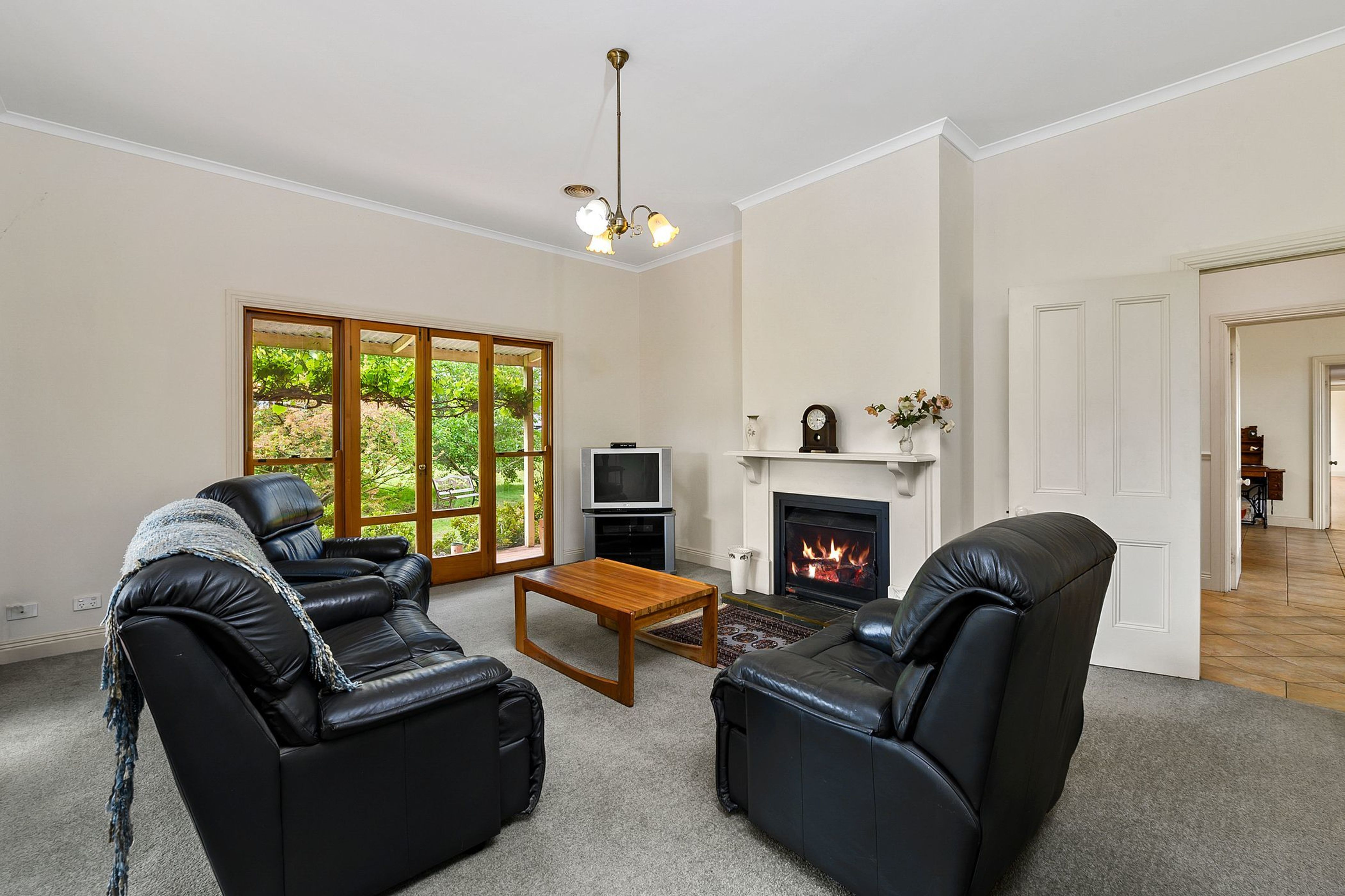 Surrounded by established gardens & fruit trees, this family residence is set well back from the road and offers 4 spacious bedrooms & 2 bathrooms (walk-in-robe & ensuite to main). A large kitchen with oak benchtops opens onto the rear courtyard area and is well-appointed with a Thermalux Supreme wood stove, gas hot plates, electric oven, dishwasher and walk-in-pantry. A meals area takes in the countryside views with a casual living-dining space adding to the ambience of the room.
