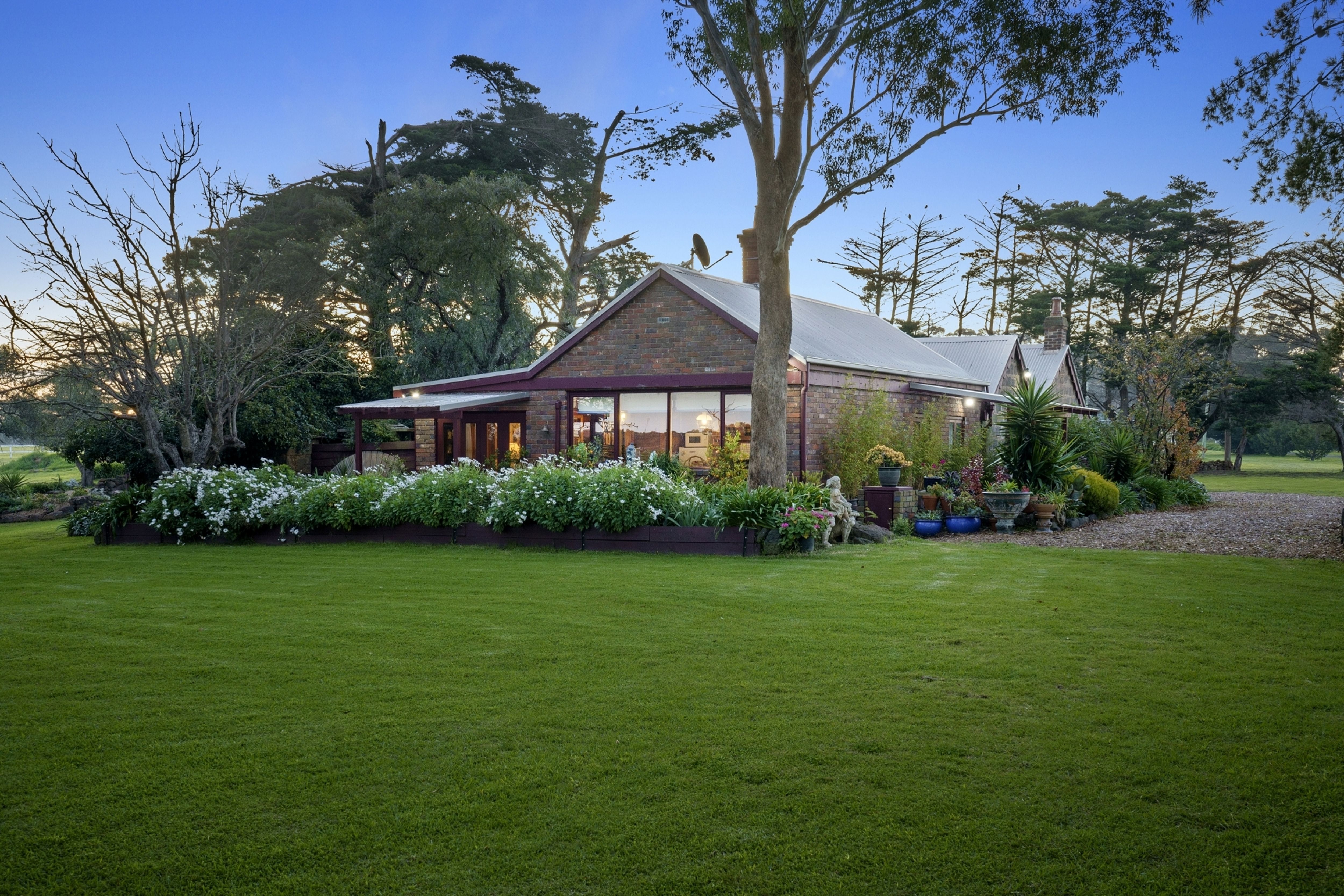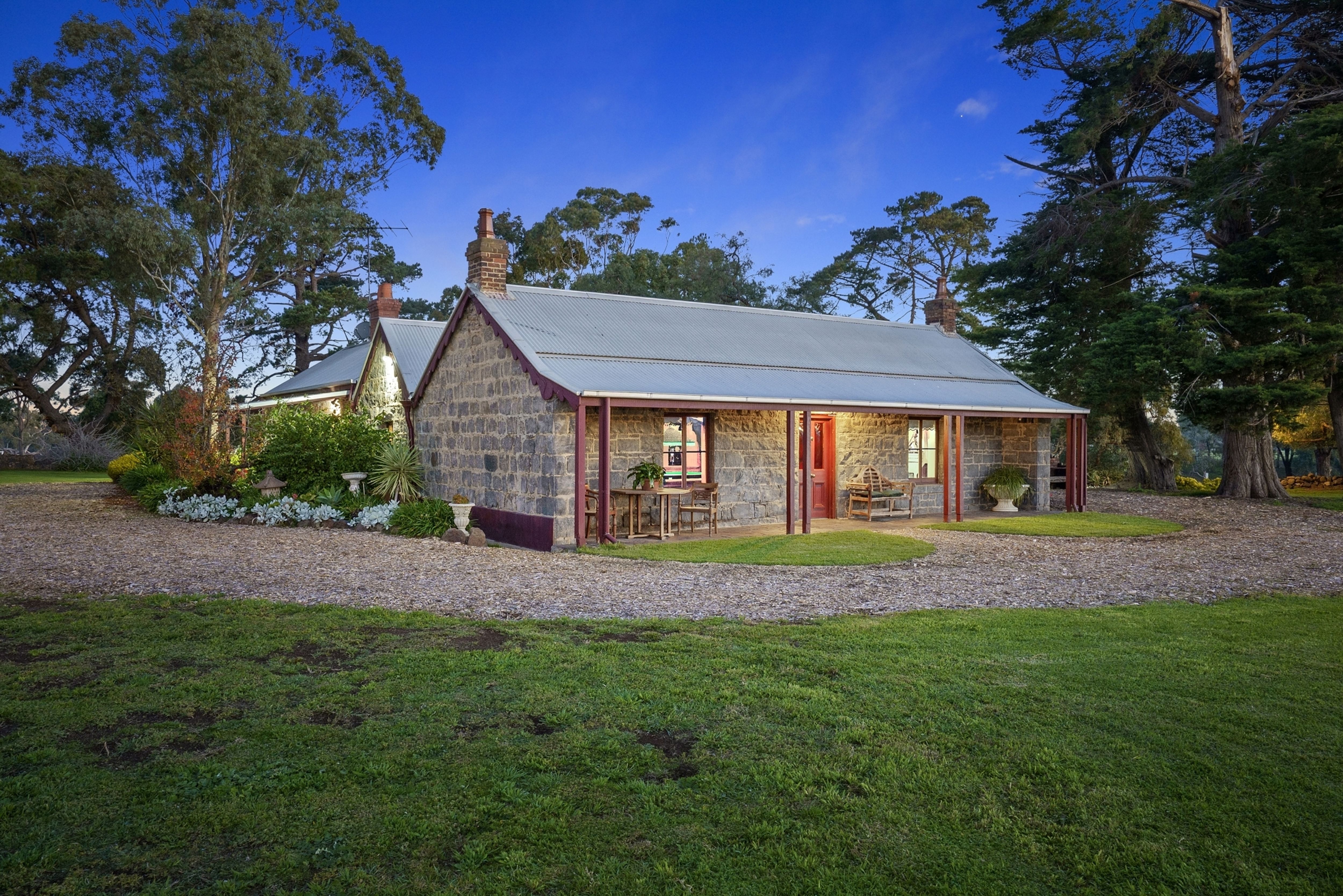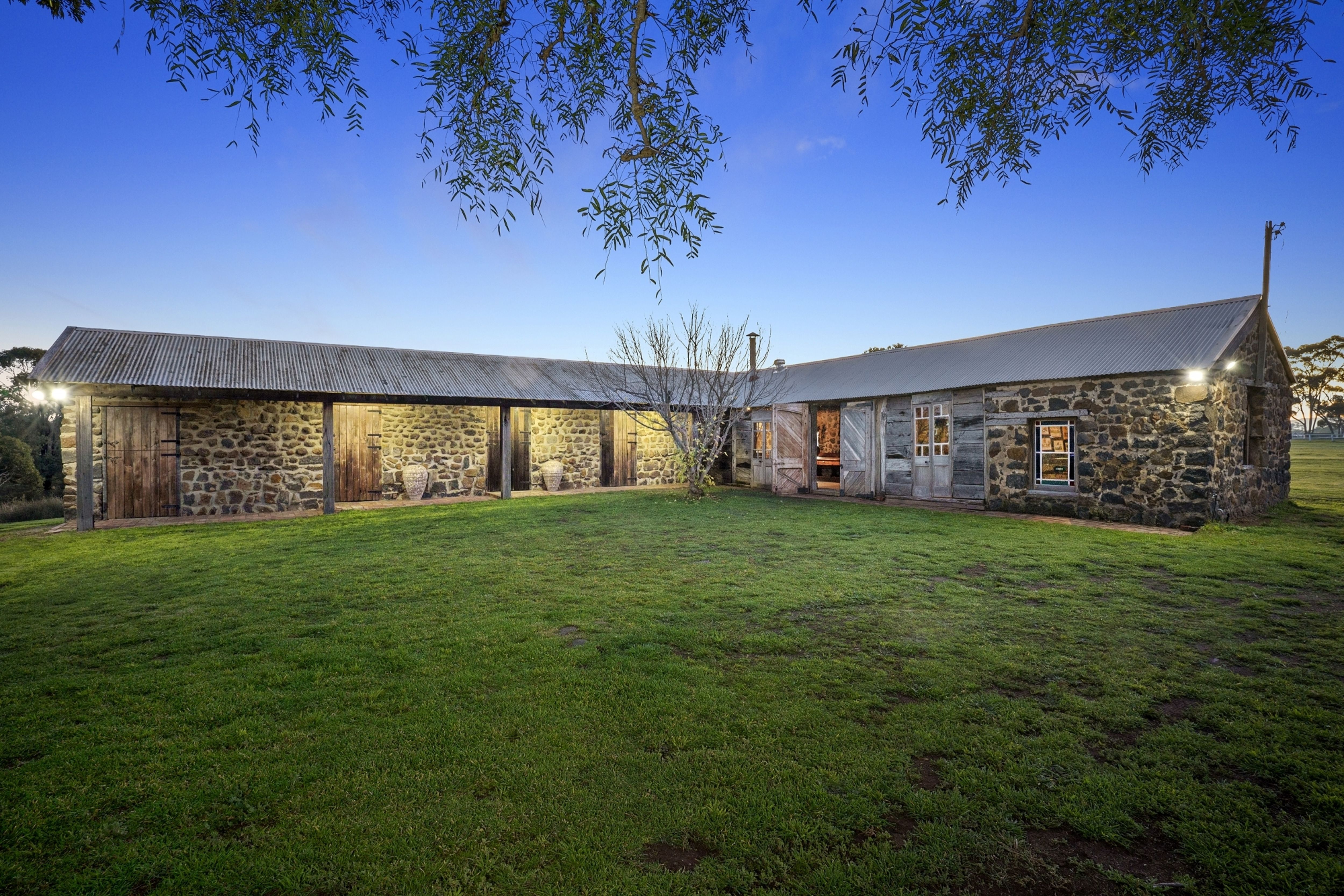 A long winding driveway leads to a sheltered haven that features a historic bluestone homestead, bluestone barn and stables, a magnificent cottage garden, courtyard, outdoor entertaining area, tennis court, double carport, 4 bay machinery shed, horse shelters plus a wood shed and garden shed.