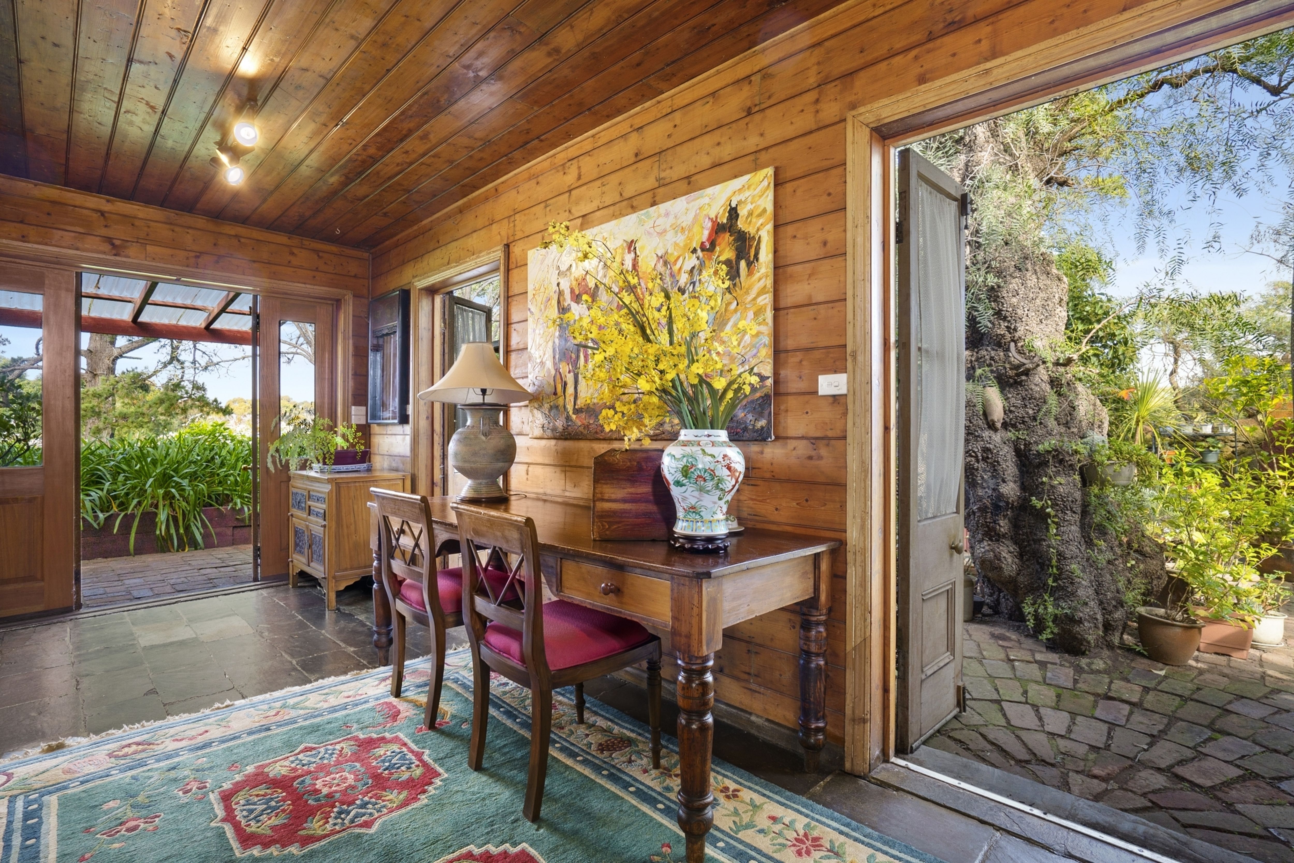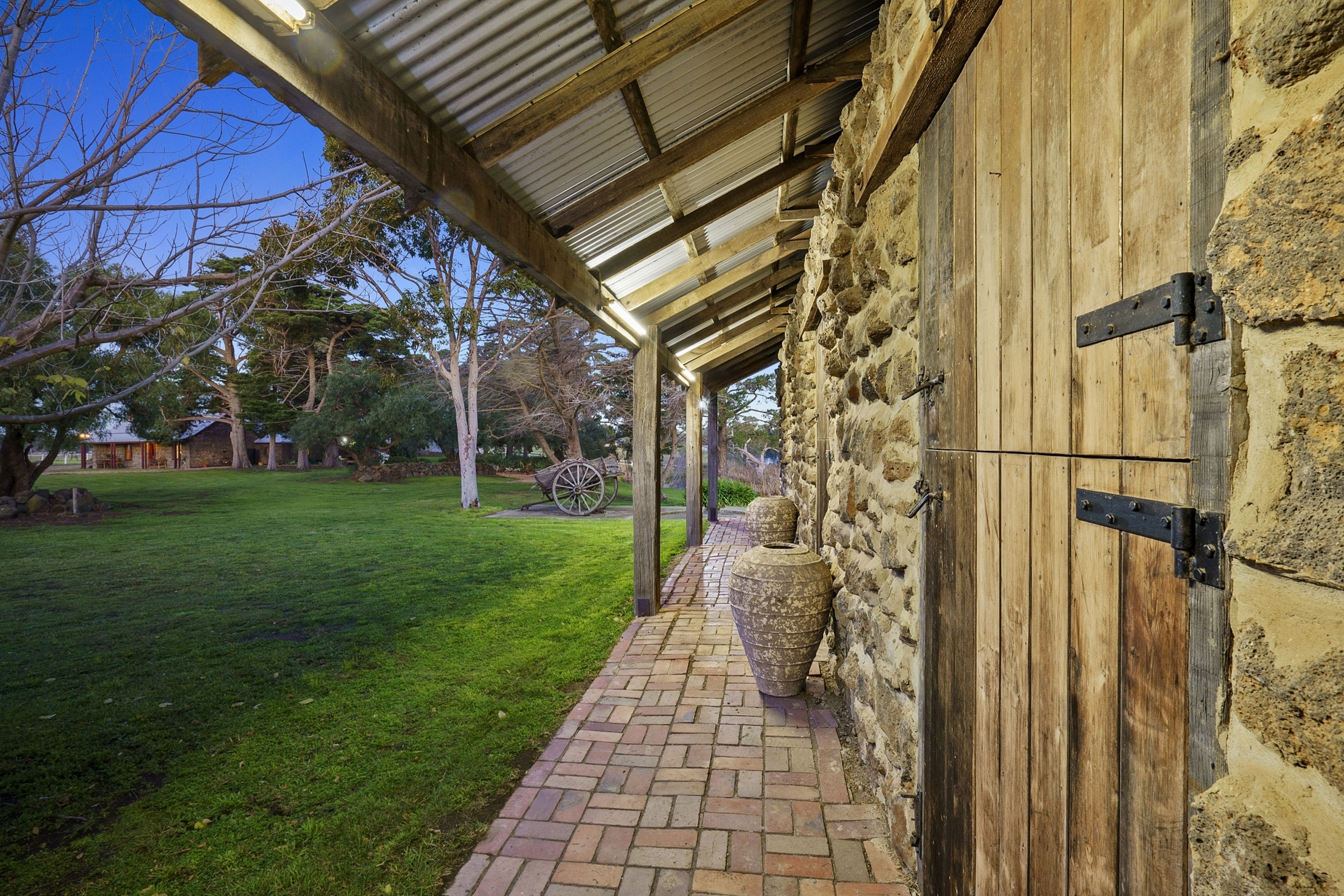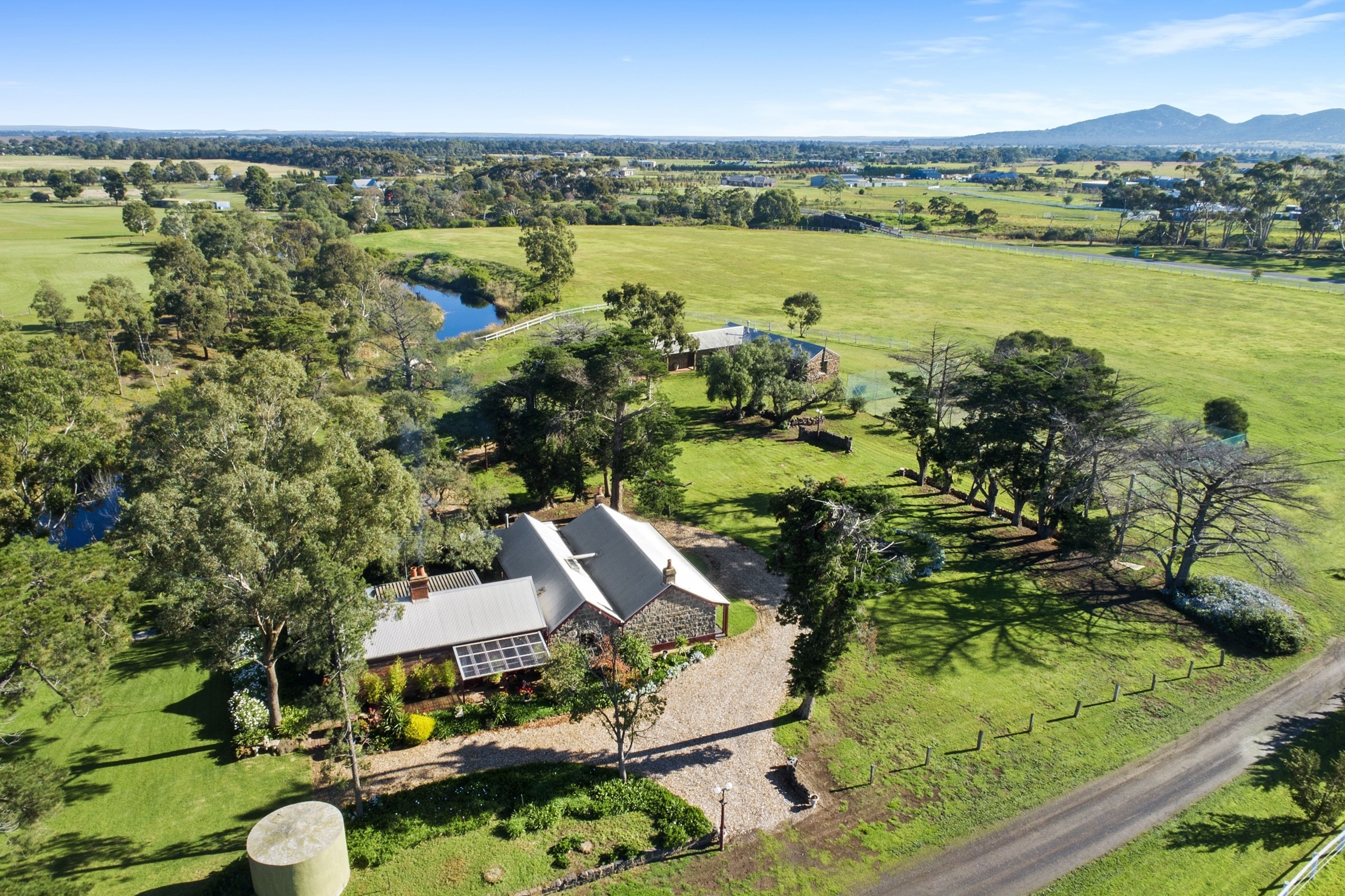 A long winding driveway leads to a sheltered haven that features a historic bluestone homestead, bluestone barn and stables, a magnificent cottage garden, courtyard, outdoor entertaining area, tennis court, double carport, 4 bay machinery shed, horse shelters plus a wood shed and garden shed.