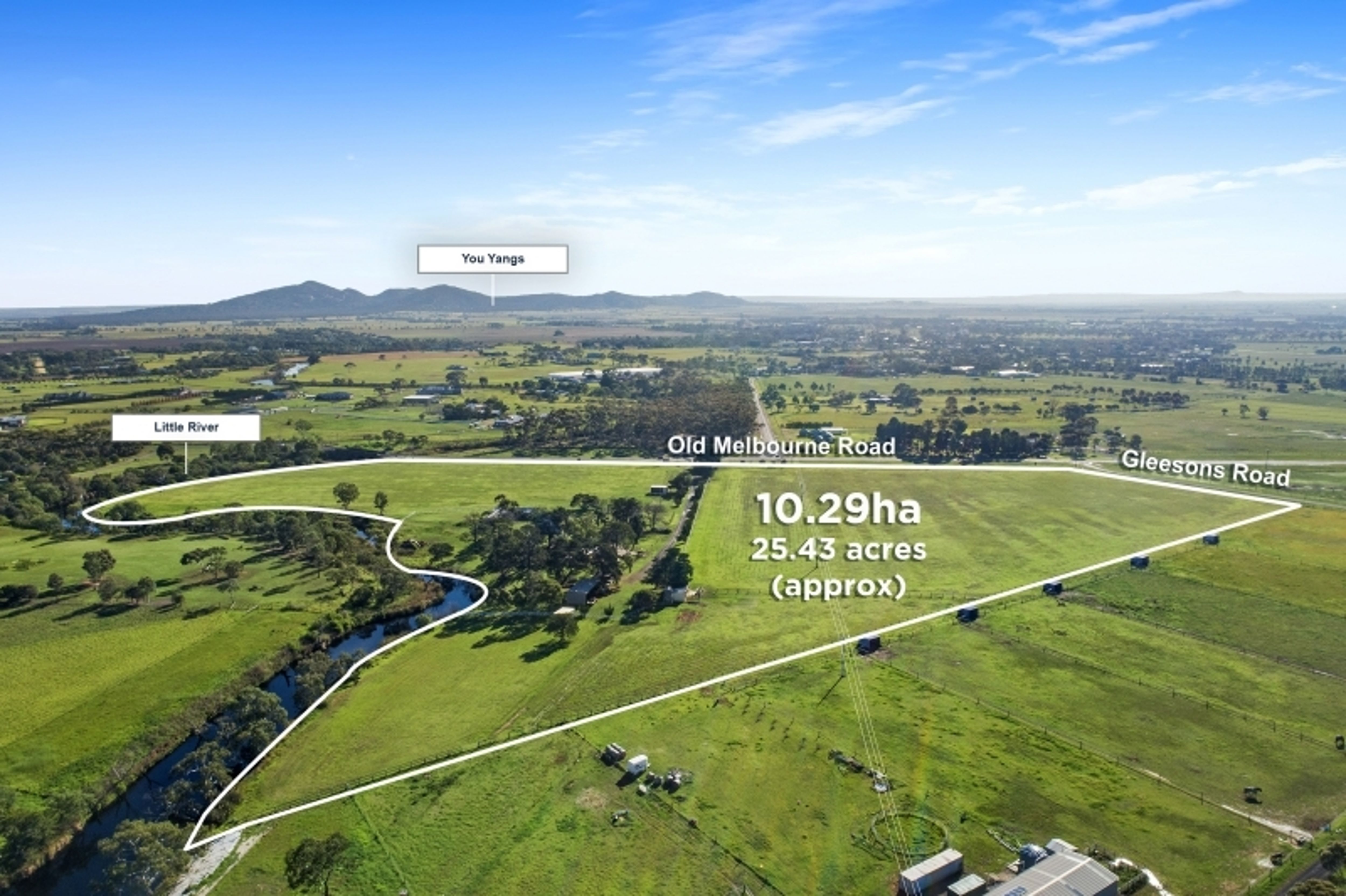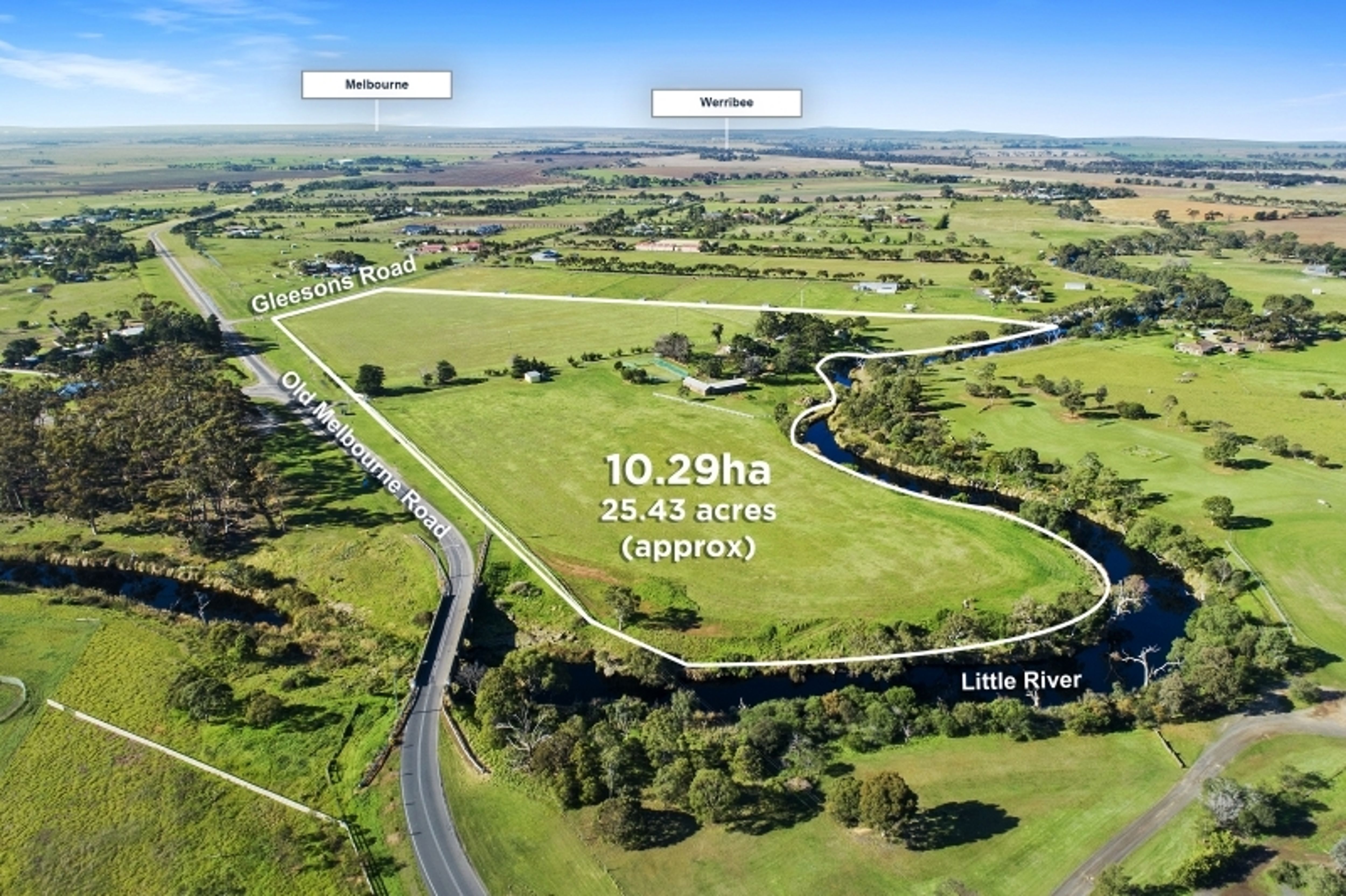 Set across approximately 25.43 acres, on the corner of Old Melbourne Road and Gleesons Road, the property is comprised of 3 crown allotments (each with road frontage) plus over 500m of prime river access whilst also presenting an outstanding land banking investment opportunity for future subdivision / development (STCA).