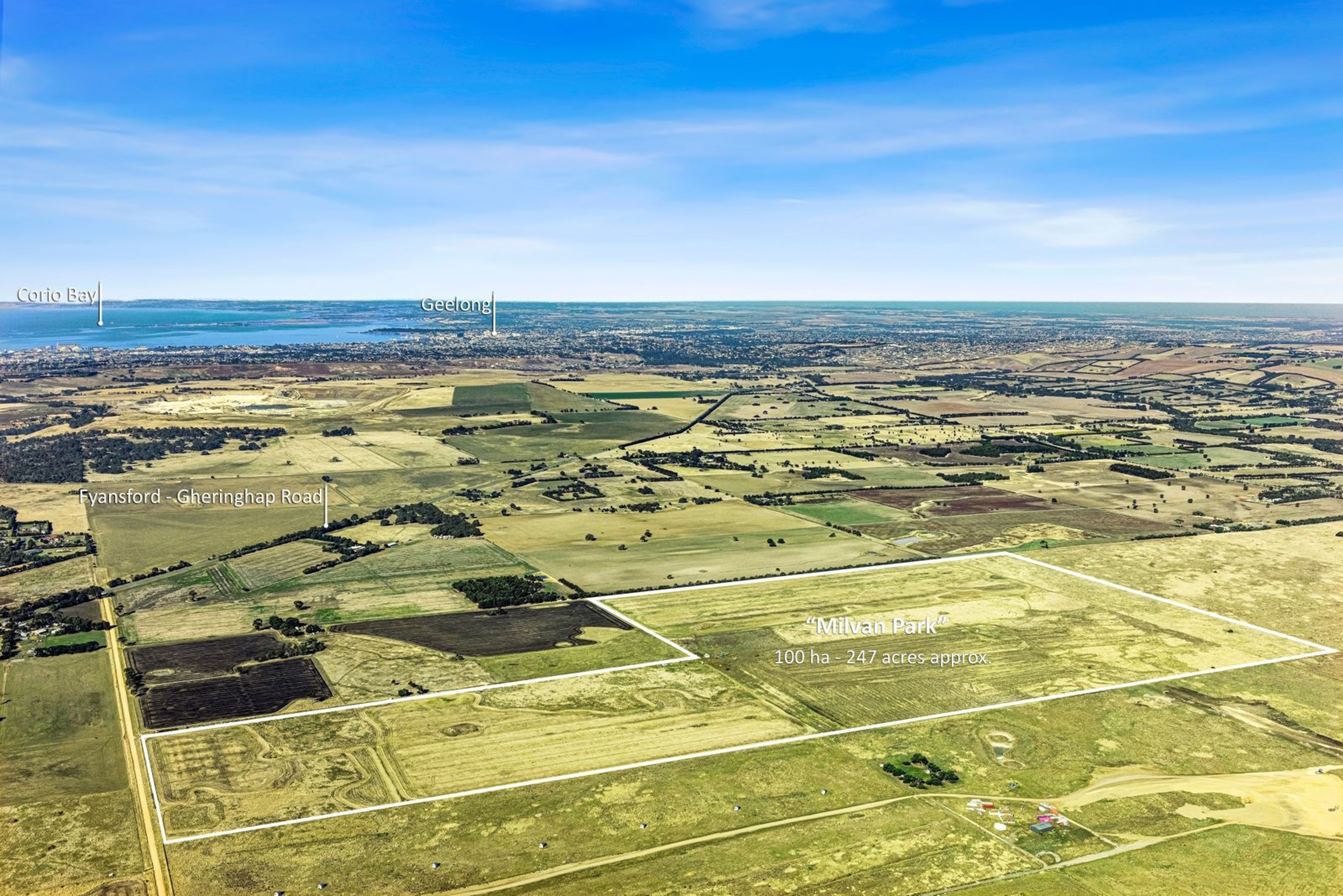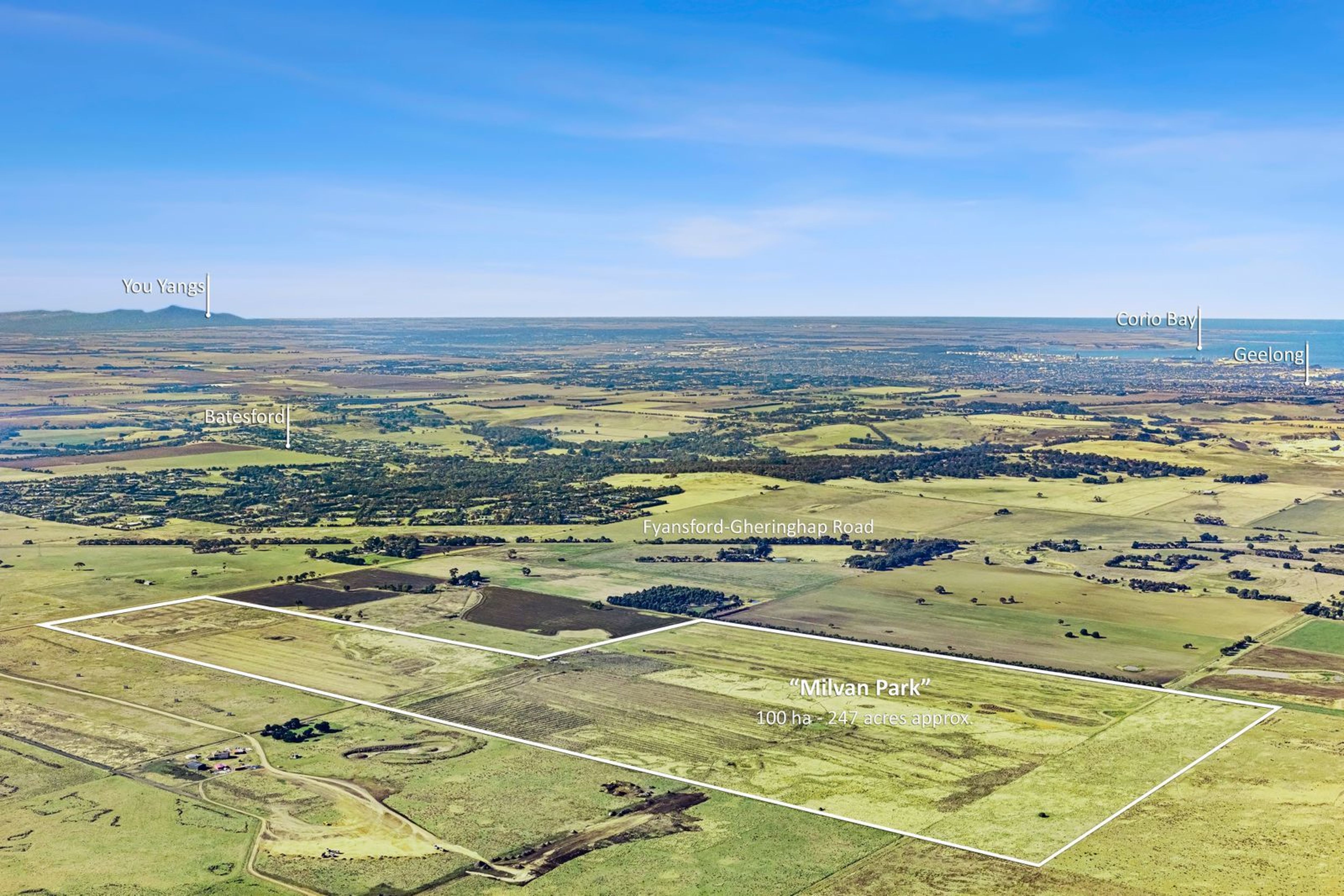 This large allotment of land totalling approximately 100 Ha (247 acres approx.) represents an outstanding investment opportunity. Located in a capital-appreciating region close to the edge of the developing town of Batesford, there is extensive future gain to be achieved. The land is conveniently located off the Fyansford-Gheringhap Road within an easy 10-minute drive to the Geelong Ring Road, and it's just 15 minutes to schools and shopping facilities. There's handy access to airports too; Avalon Airport is positioned just 20 minutes away, and it takes around 60 minutes to reach Tullamarine Airport. For commuters or leisure-seekers, Melbourne's CBD is also only an hour away.