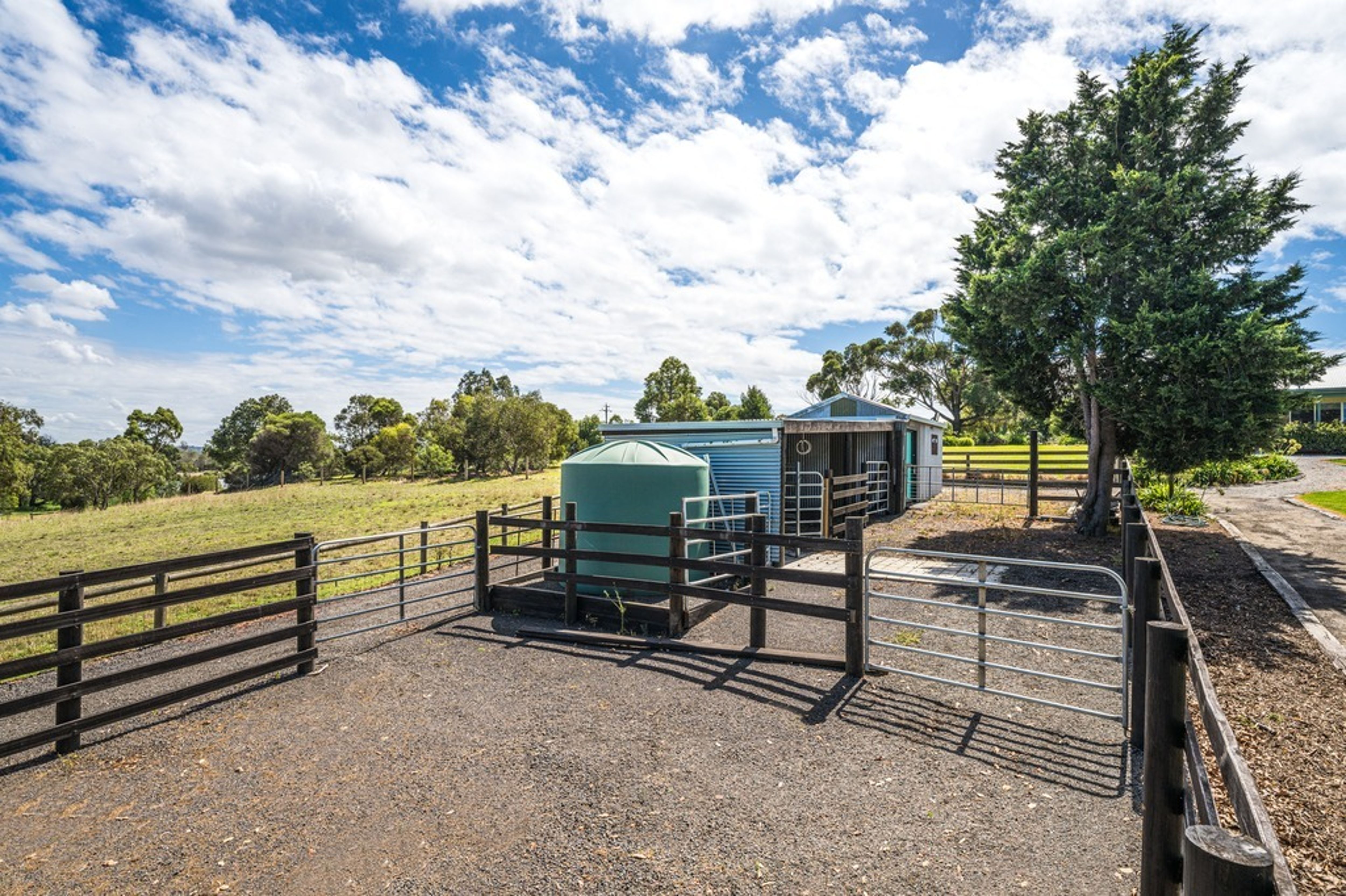 Tradies and families seeking a country life close to town are very well catered for with multiple storage sheds, stables and tack room, stock/holding yards, laneway access to the paddocks, electric fences and troughs for livestock.