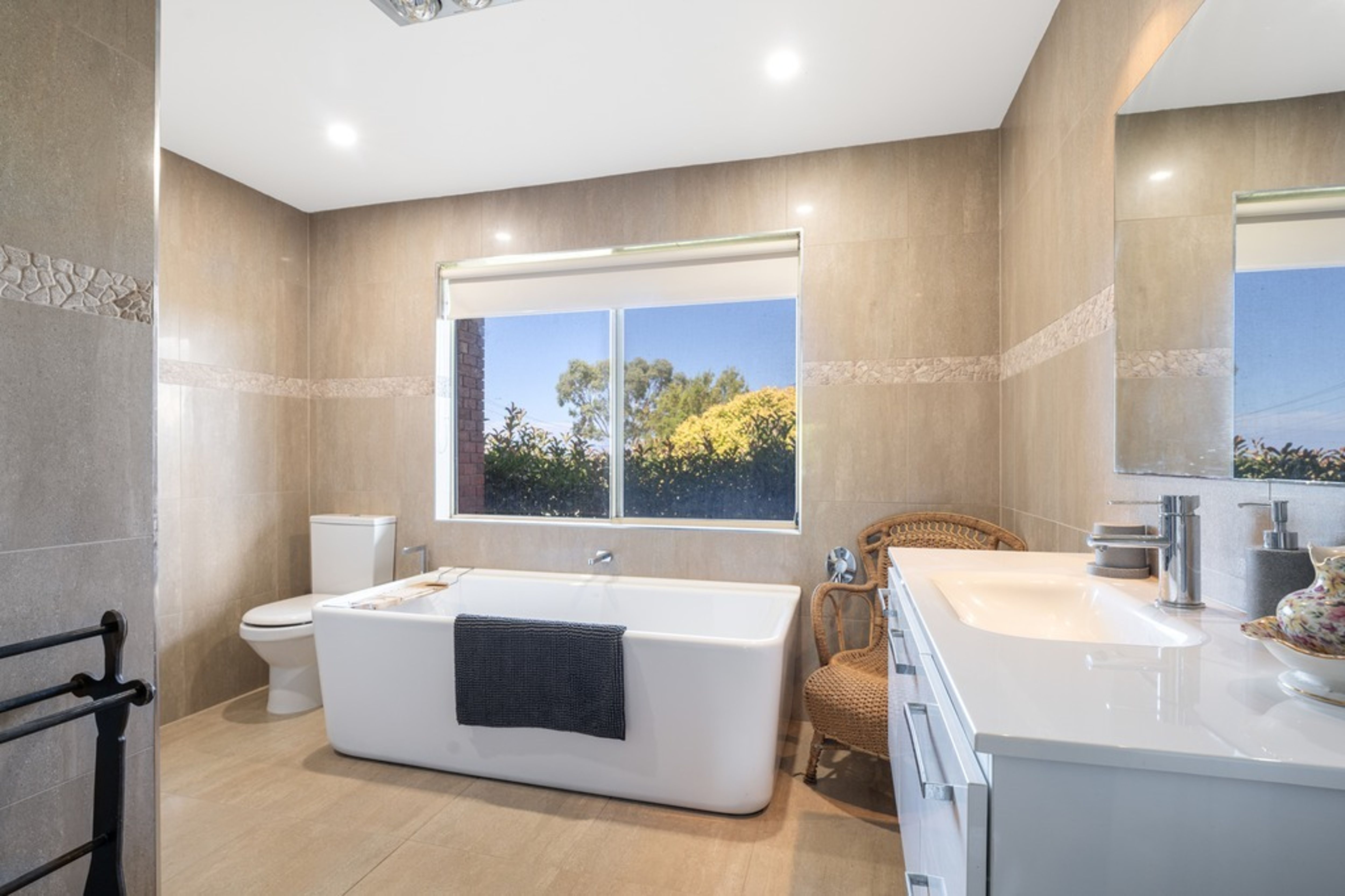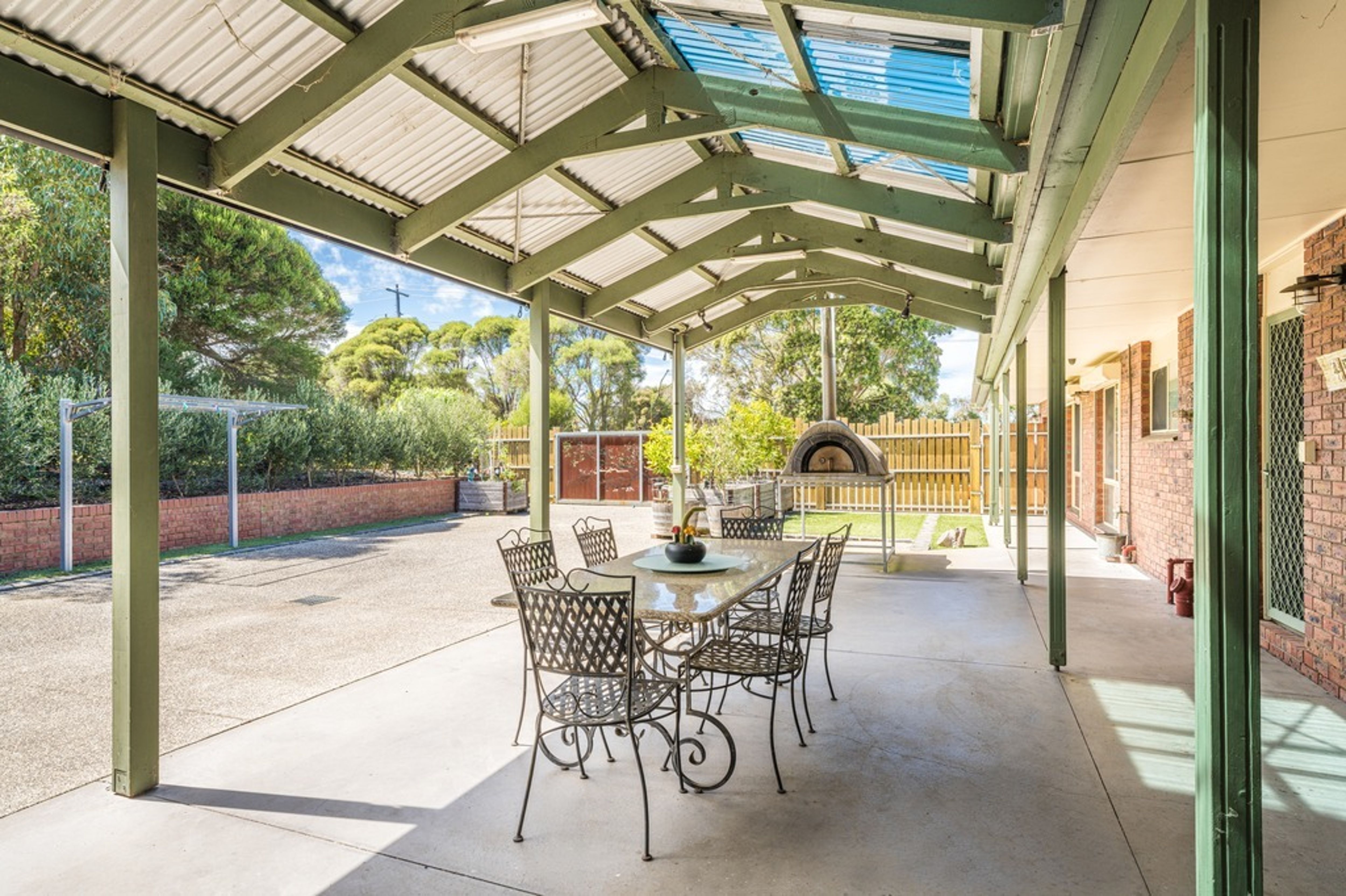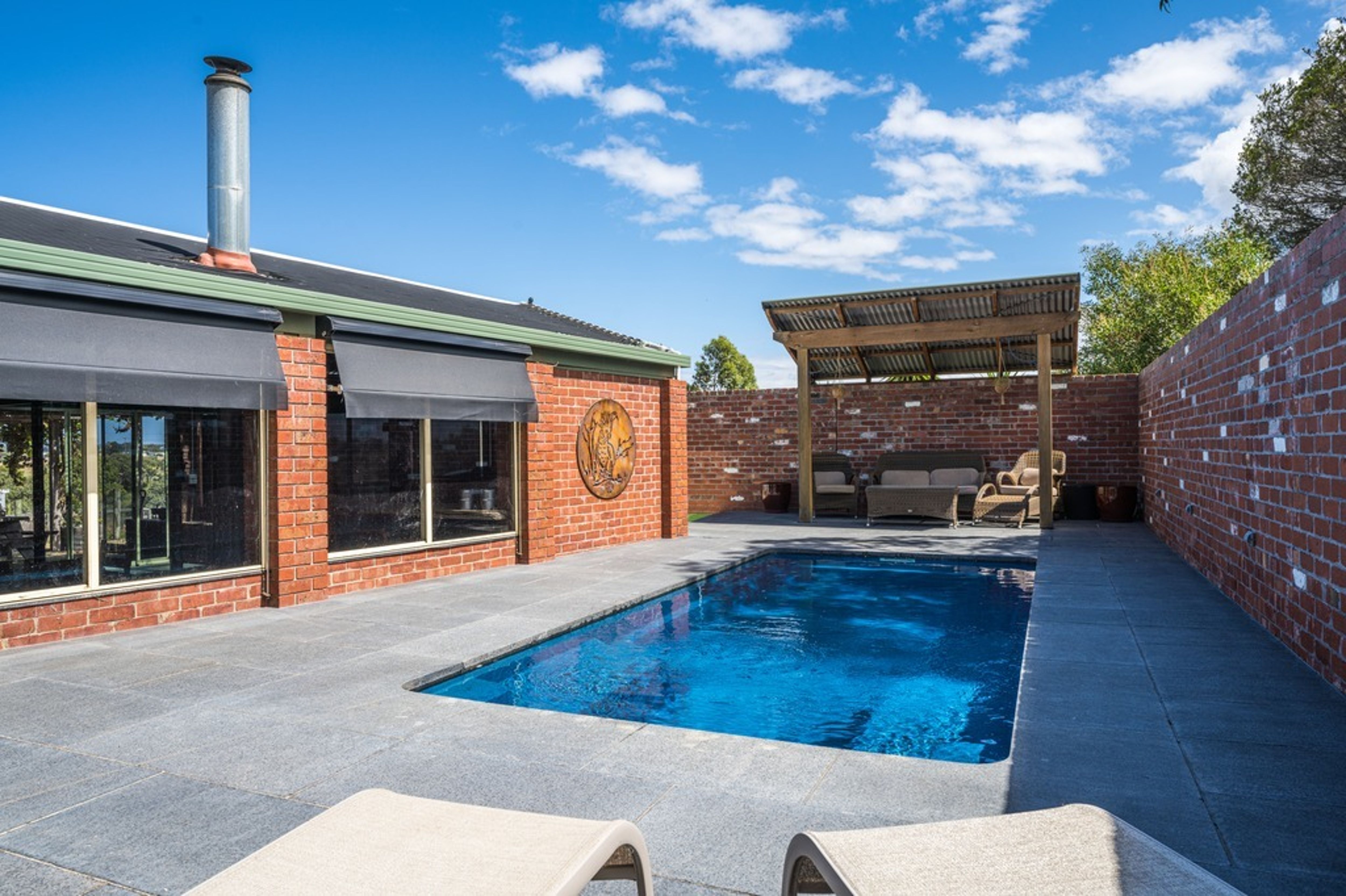 An adjoining, fully enclosed entertaining space is the hub of the home with a built-in-bar, wood fire and plenty of dining space - the ultimate all weather party space (yes, you will be hosting Christmas!).
