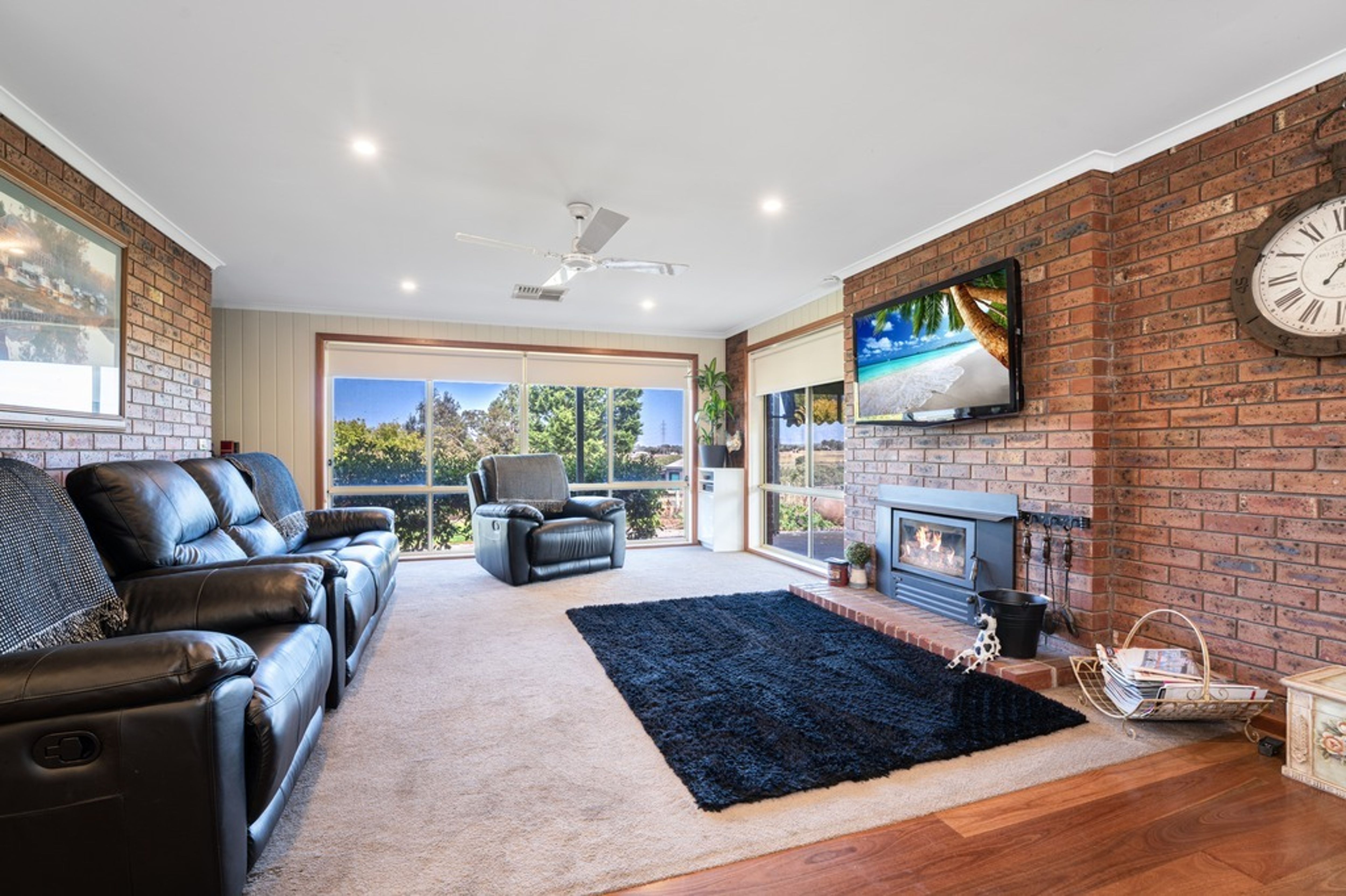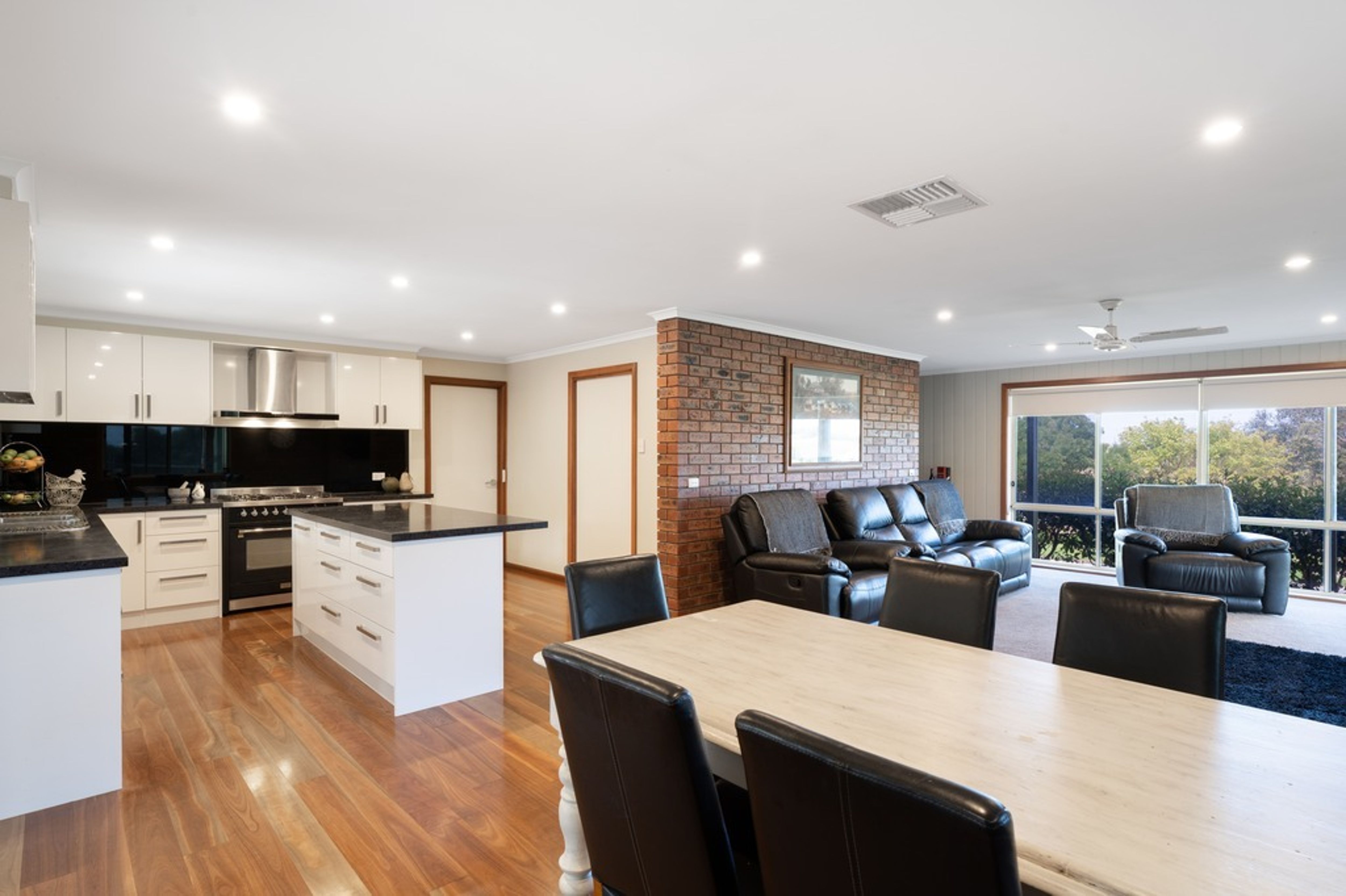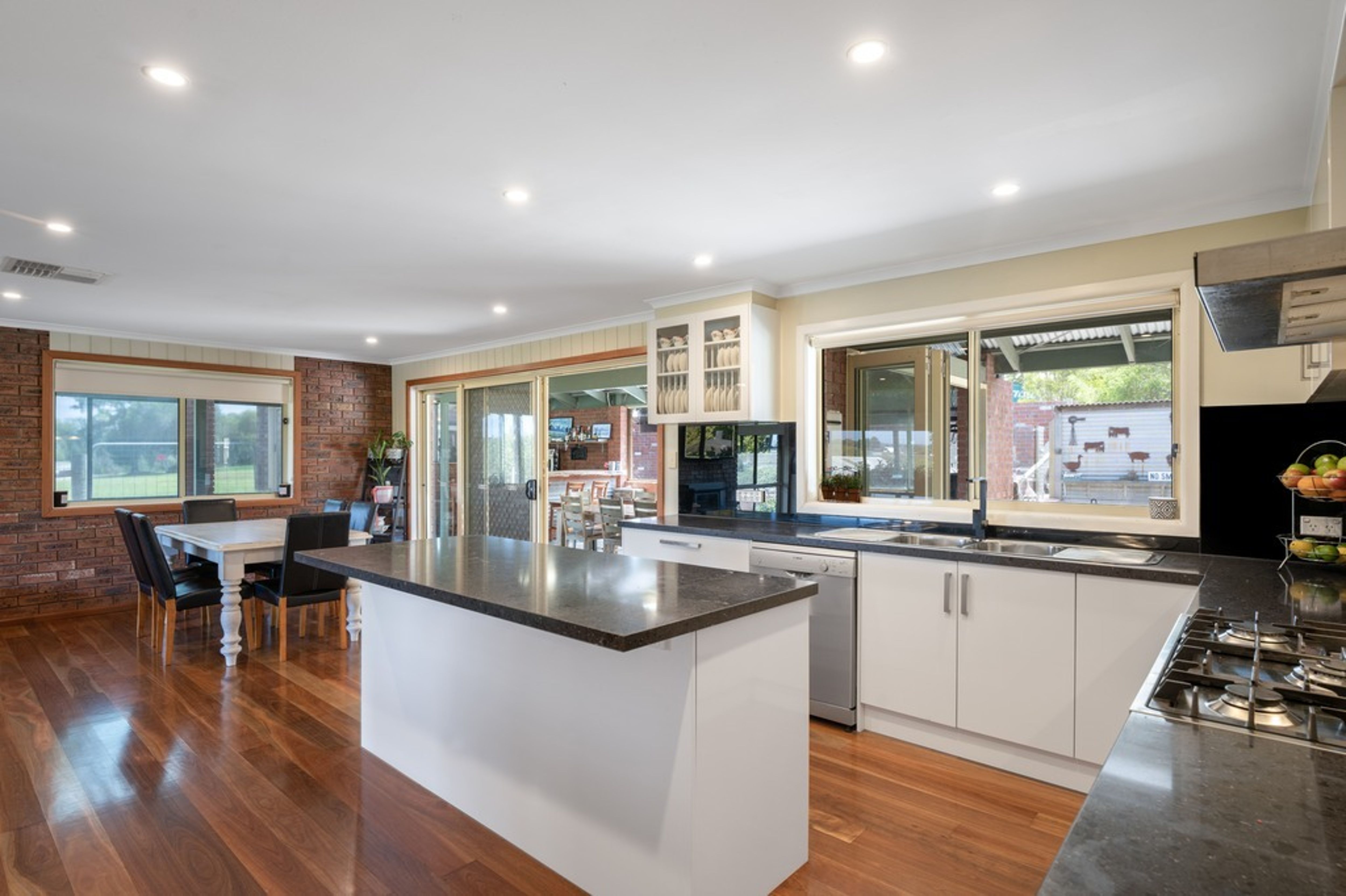 Located in an elevated position enjoying paddock & river views, this spacious family home provides 4 bedrooms (master with WIR & ensuite), 2 bathrooms (plus a powder room), an updated large laundry, study nook/office space, living/TV room with gas fire, open plan kitchen / dining / family room with walk-in-pantry, stone benchtops, gas cooktop, dishwasher and Coonara wood fire.