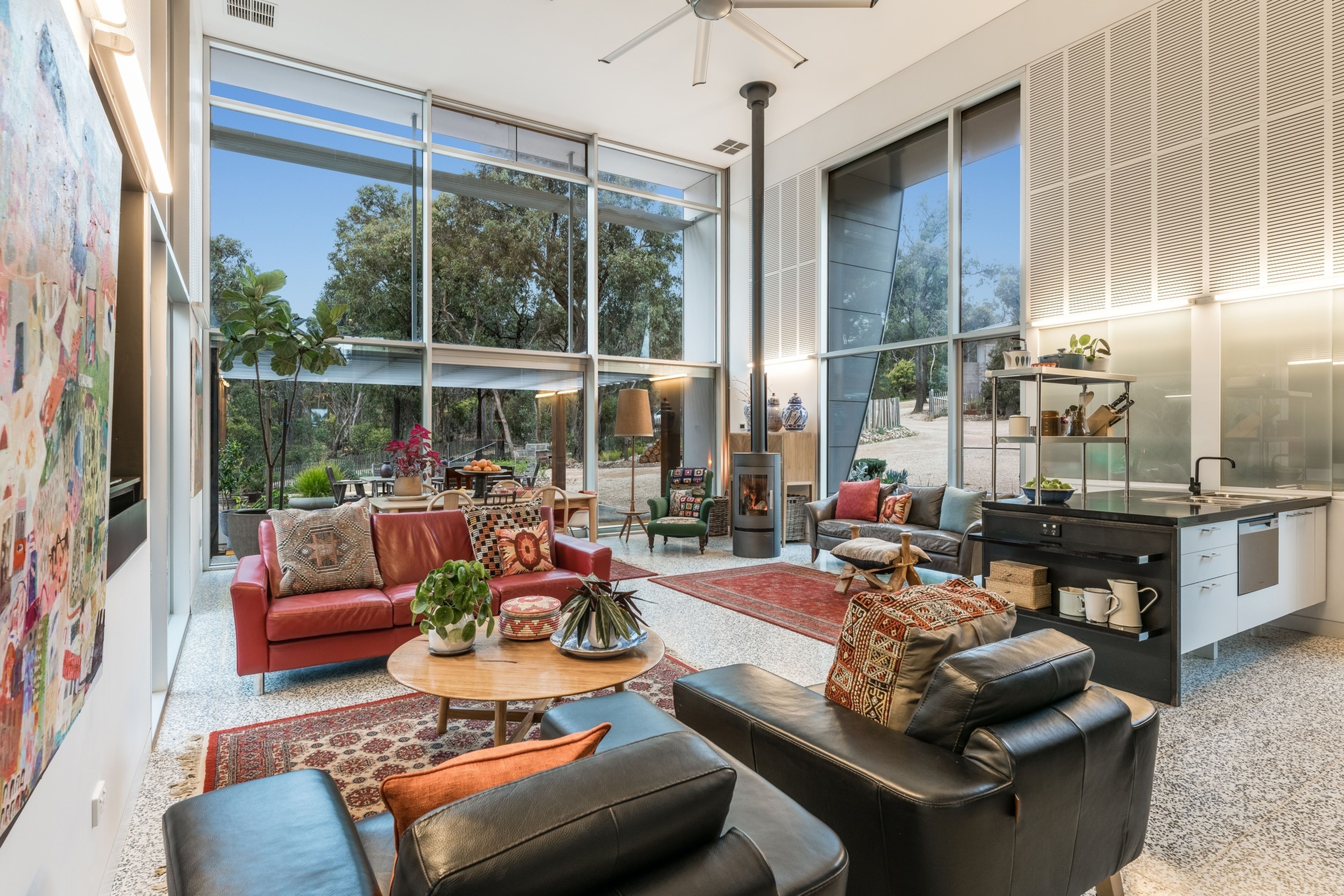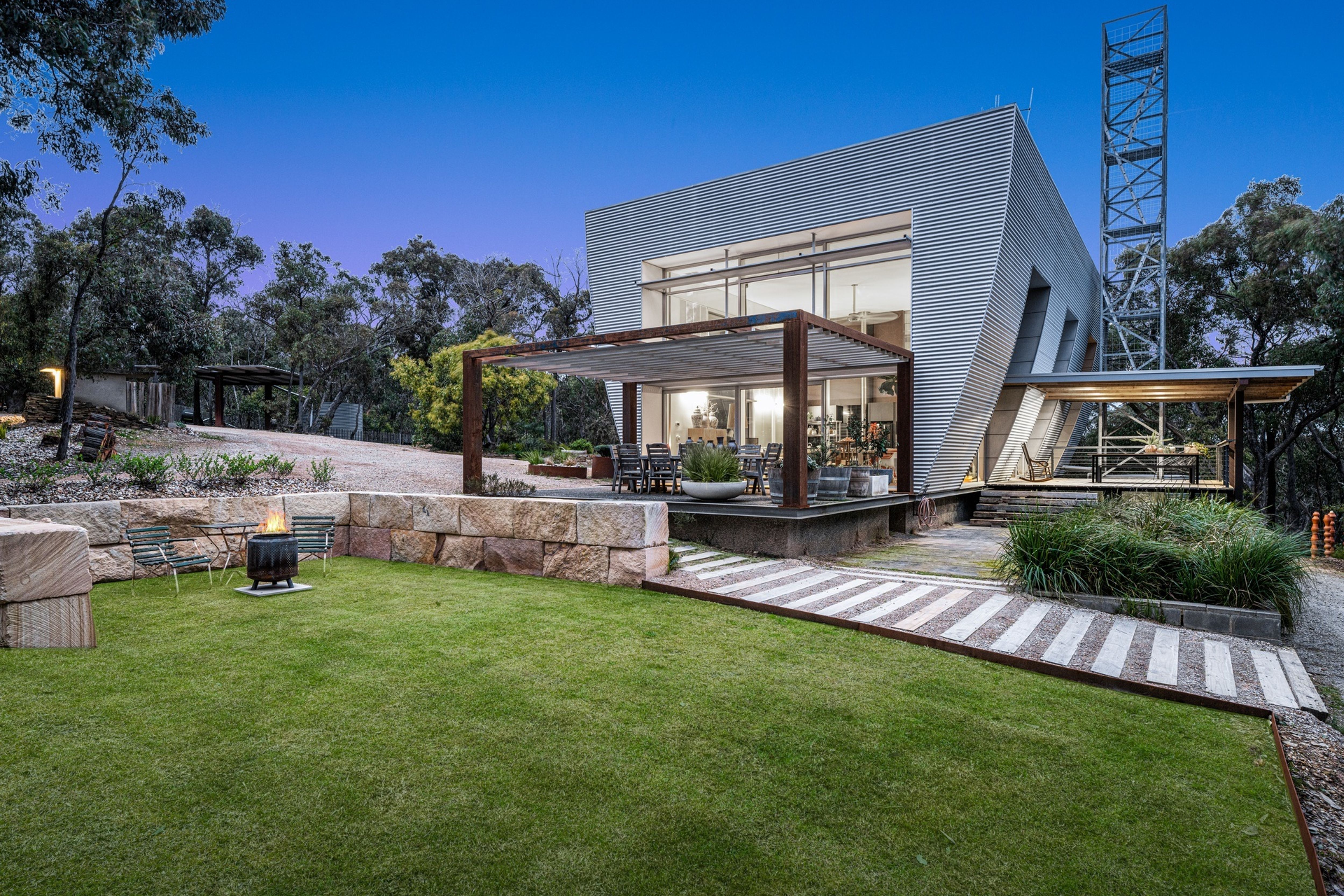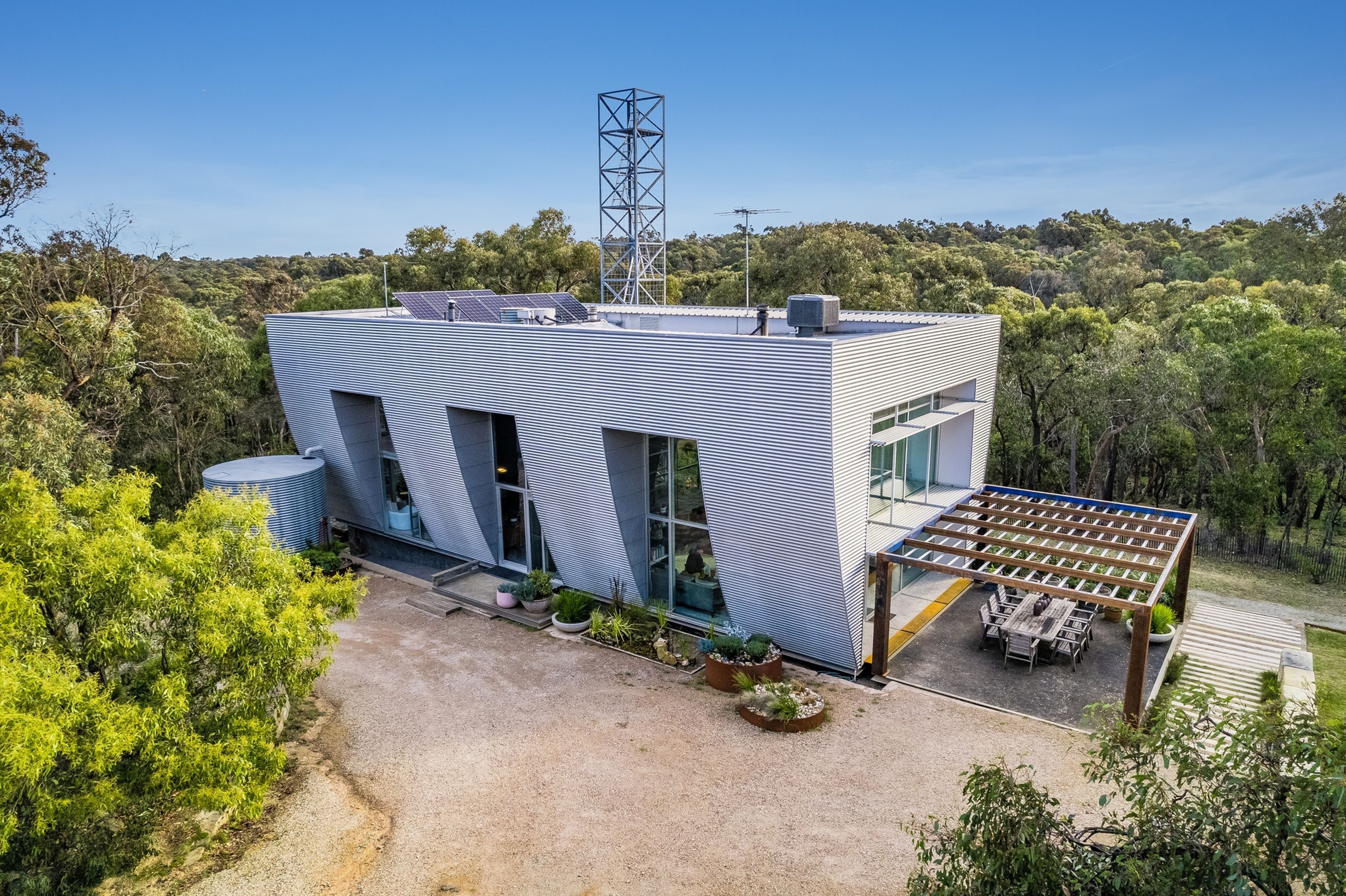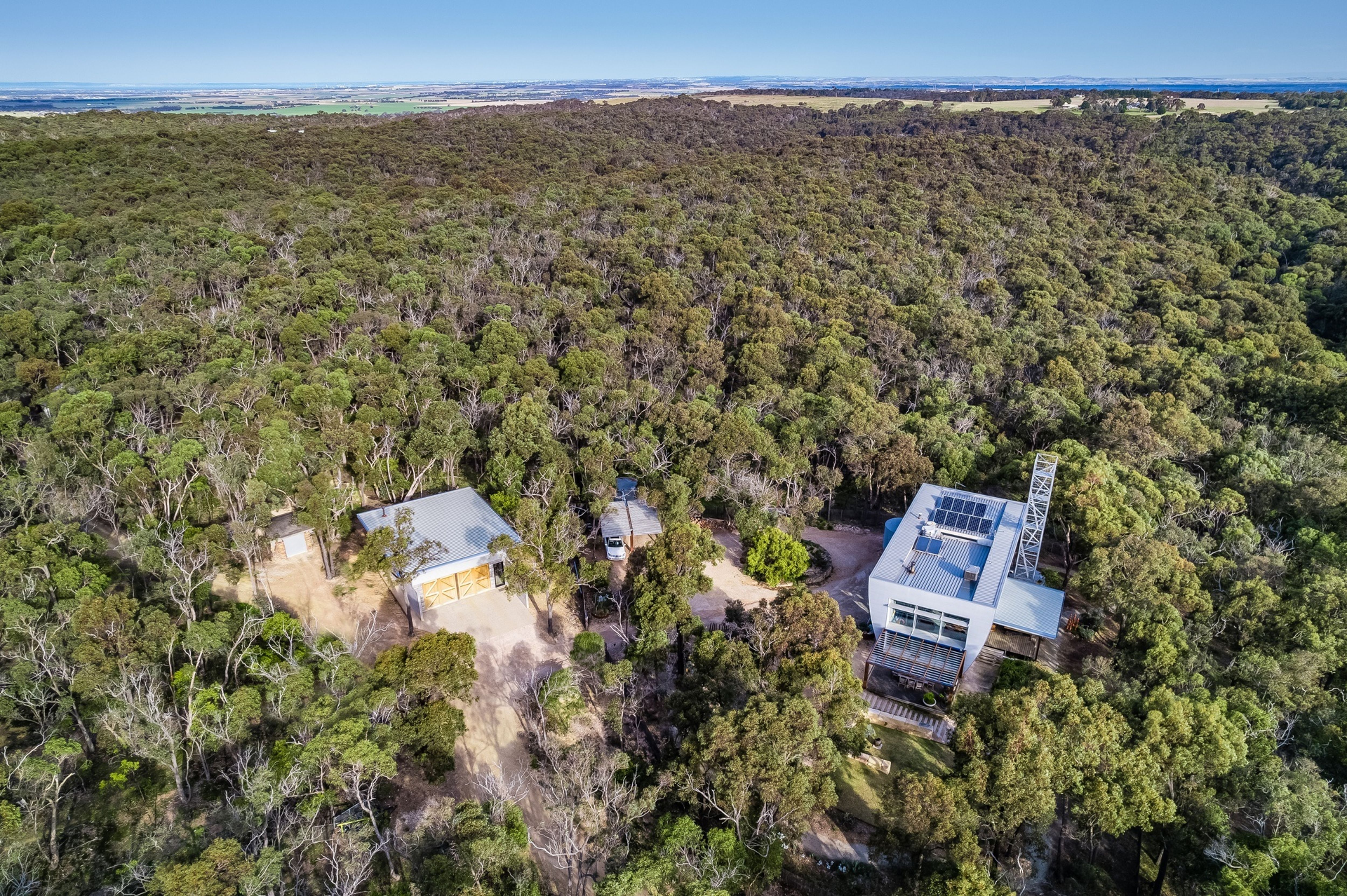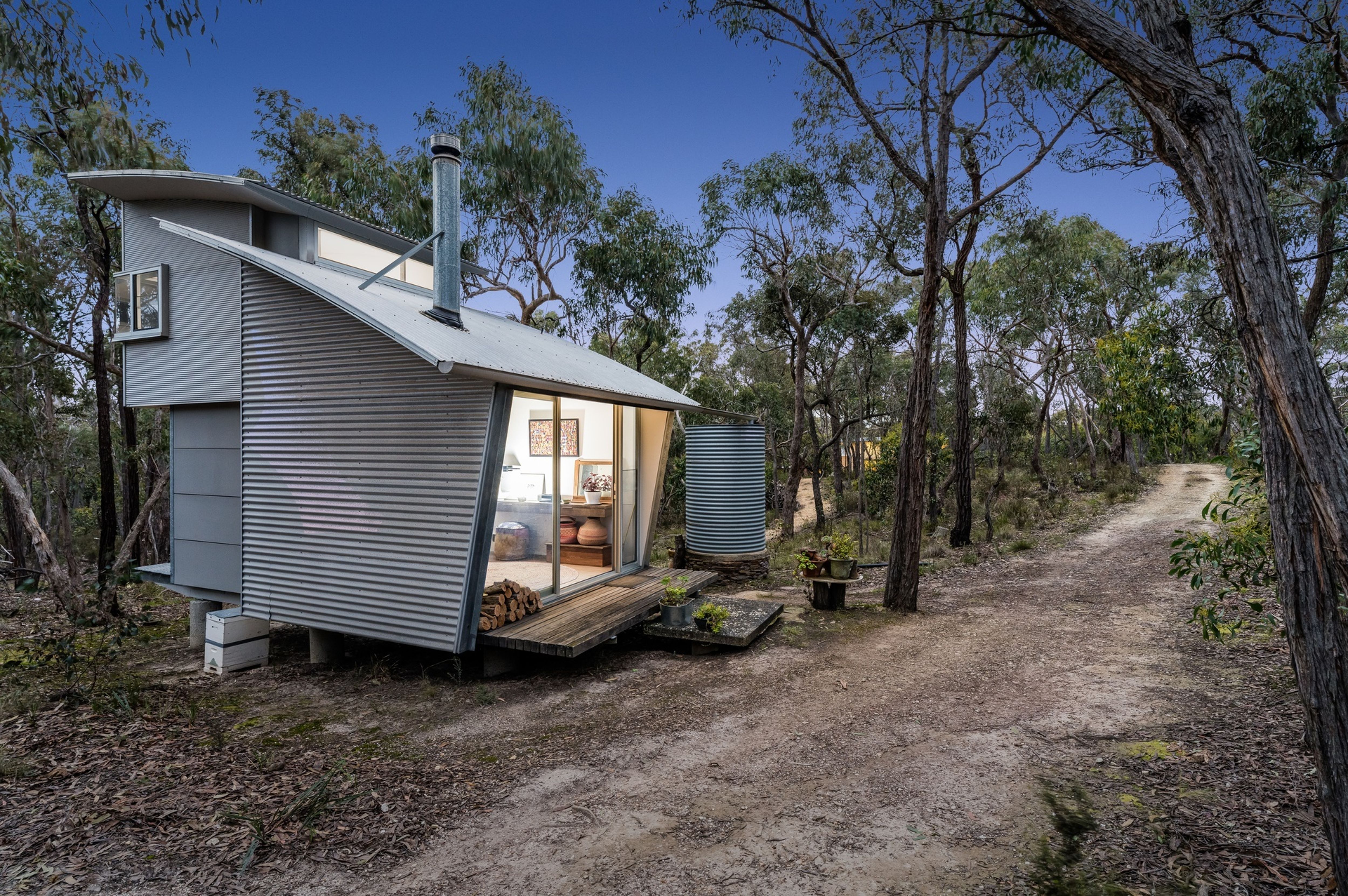 This property presents as a highly contemporary solution for bush living, perfect for a couple or family looking for an off-grid lifestyle within easy access to Geelong (30 minutes) or Melbourne (60 minutes).