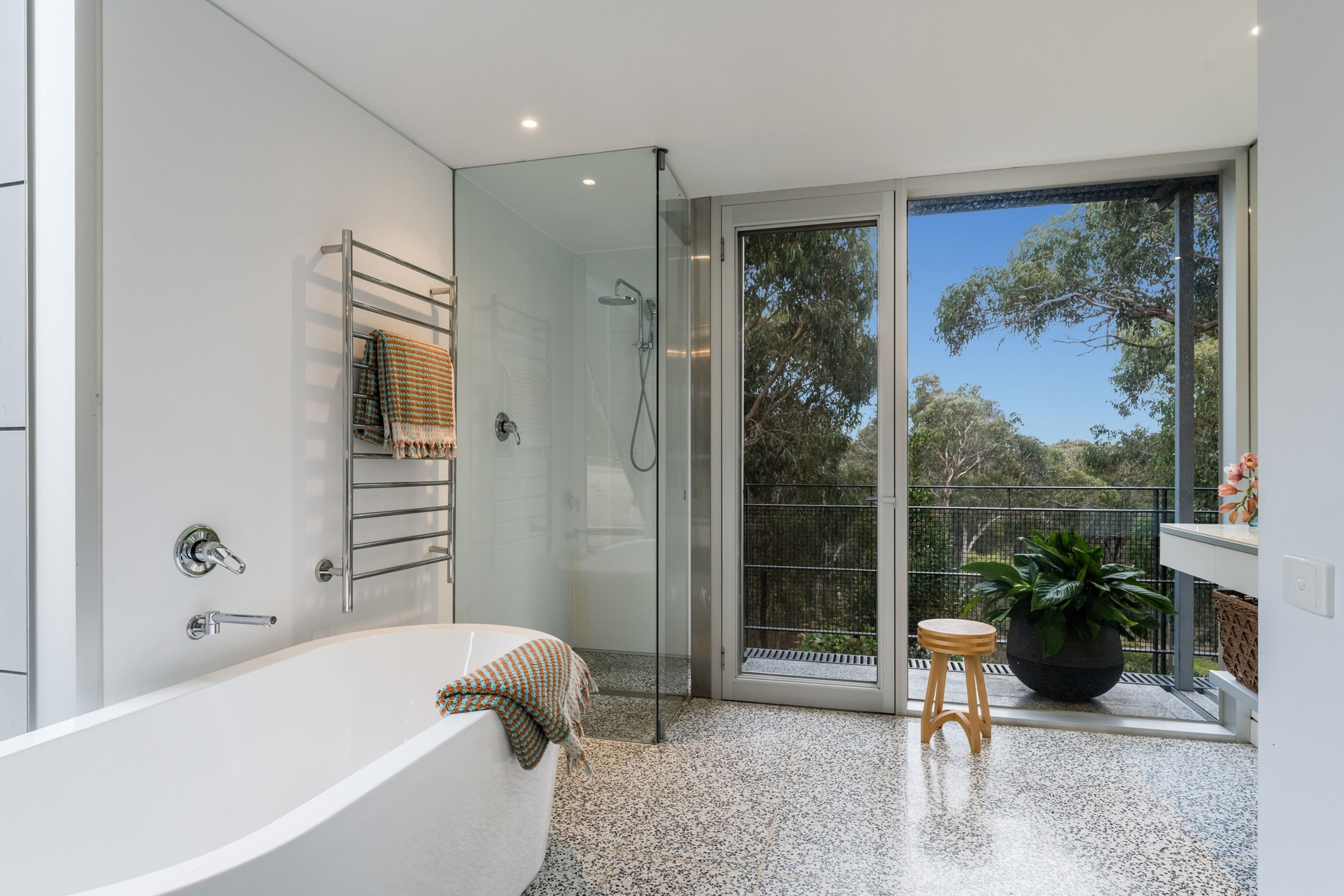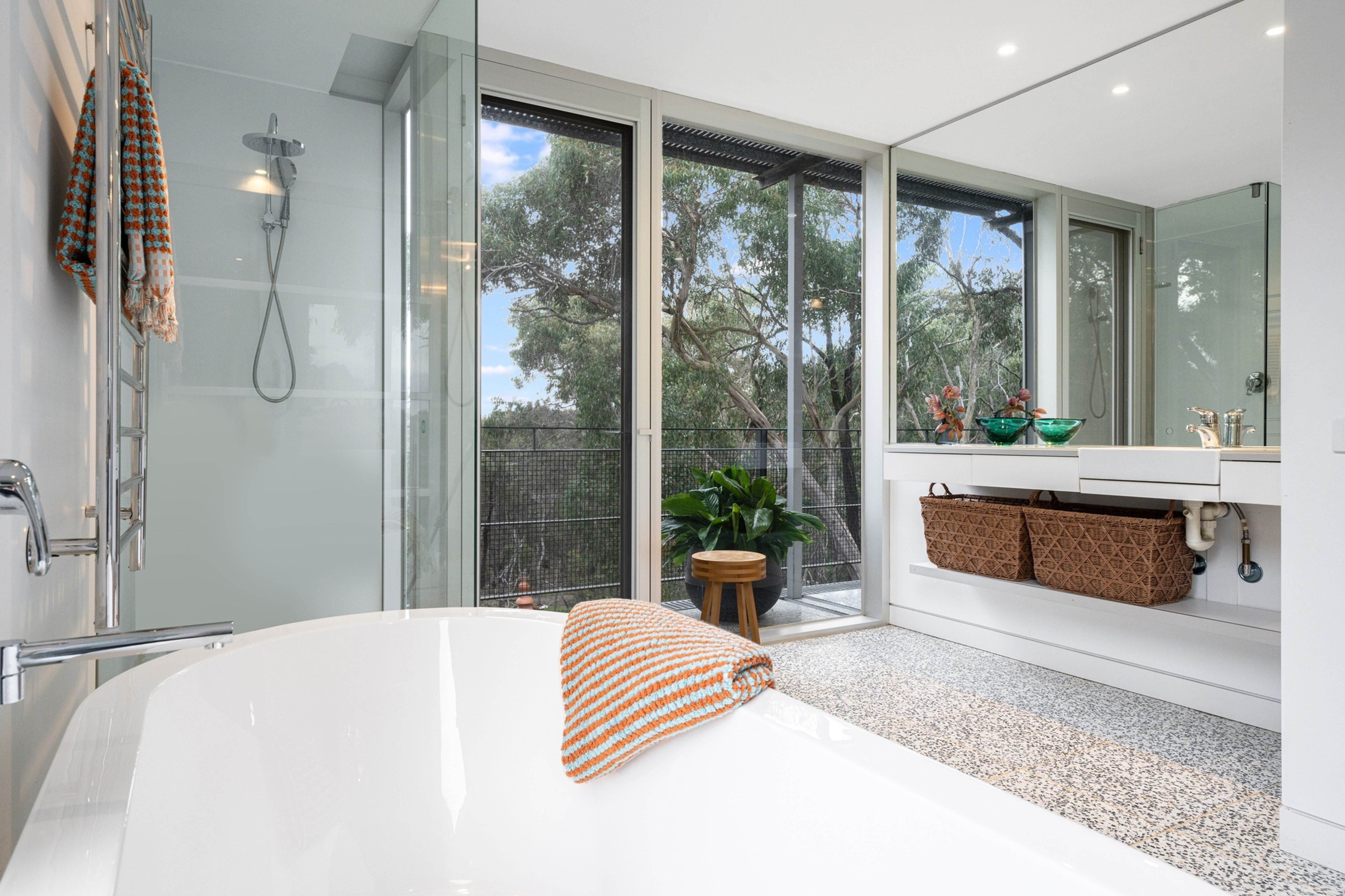 Architecturally designed and built in 2006, this spacious home enjoys gorgeous natural light throughout, high ceilings, stylish terrazzo floors and a warm connection with the surrounding landscape through the floor-to-ceiling double-glazed windows.
