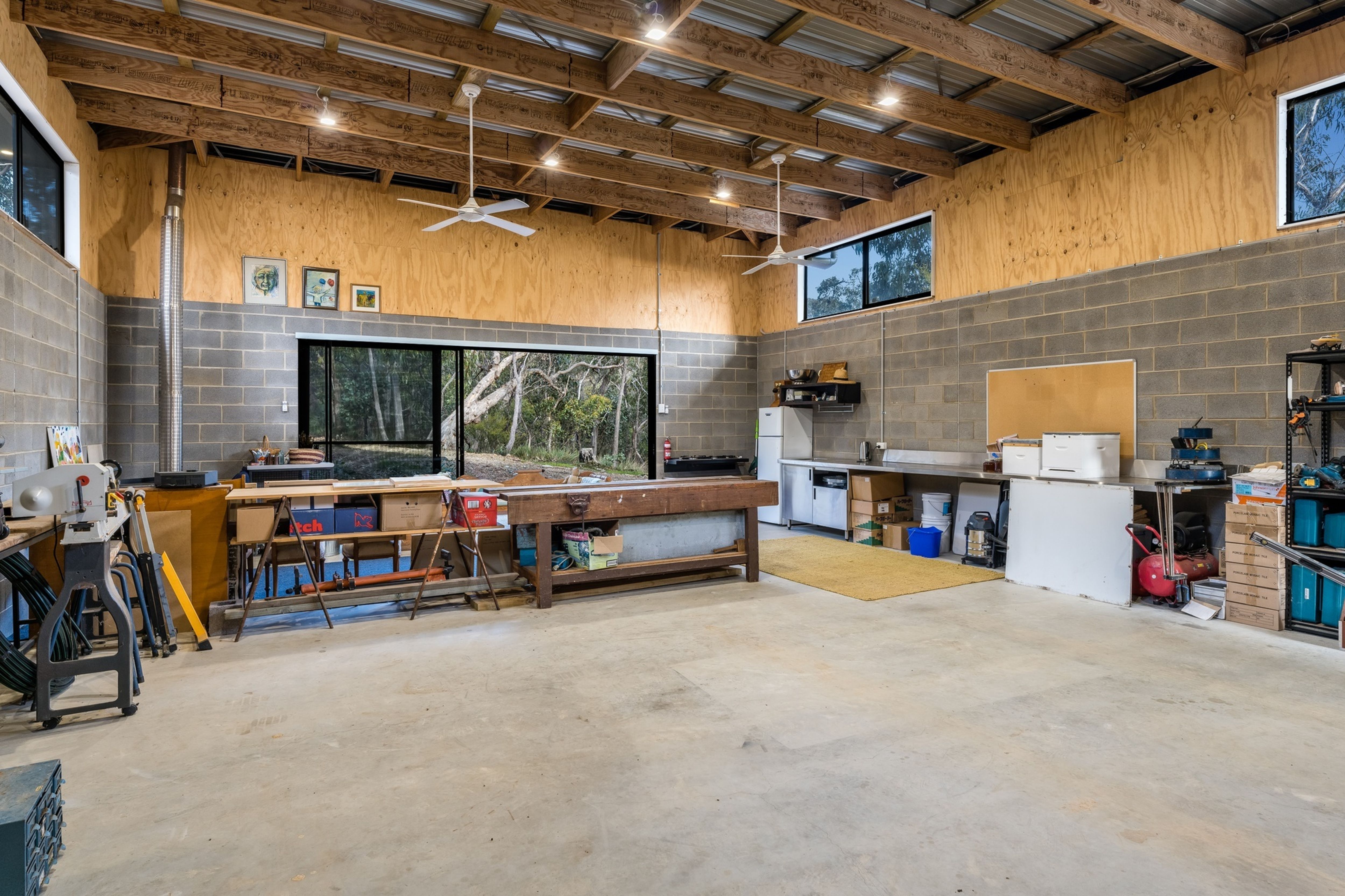 The property also enjoys the benefit of a separate 1 bedroom studio ideal for guests or as a teenagers retreat, a huge double lock-up remote garage with kitchenette, wood fire and workspace, a double carport, mower/tractor shed and an extraordinary viewing platform accessed off the main house.