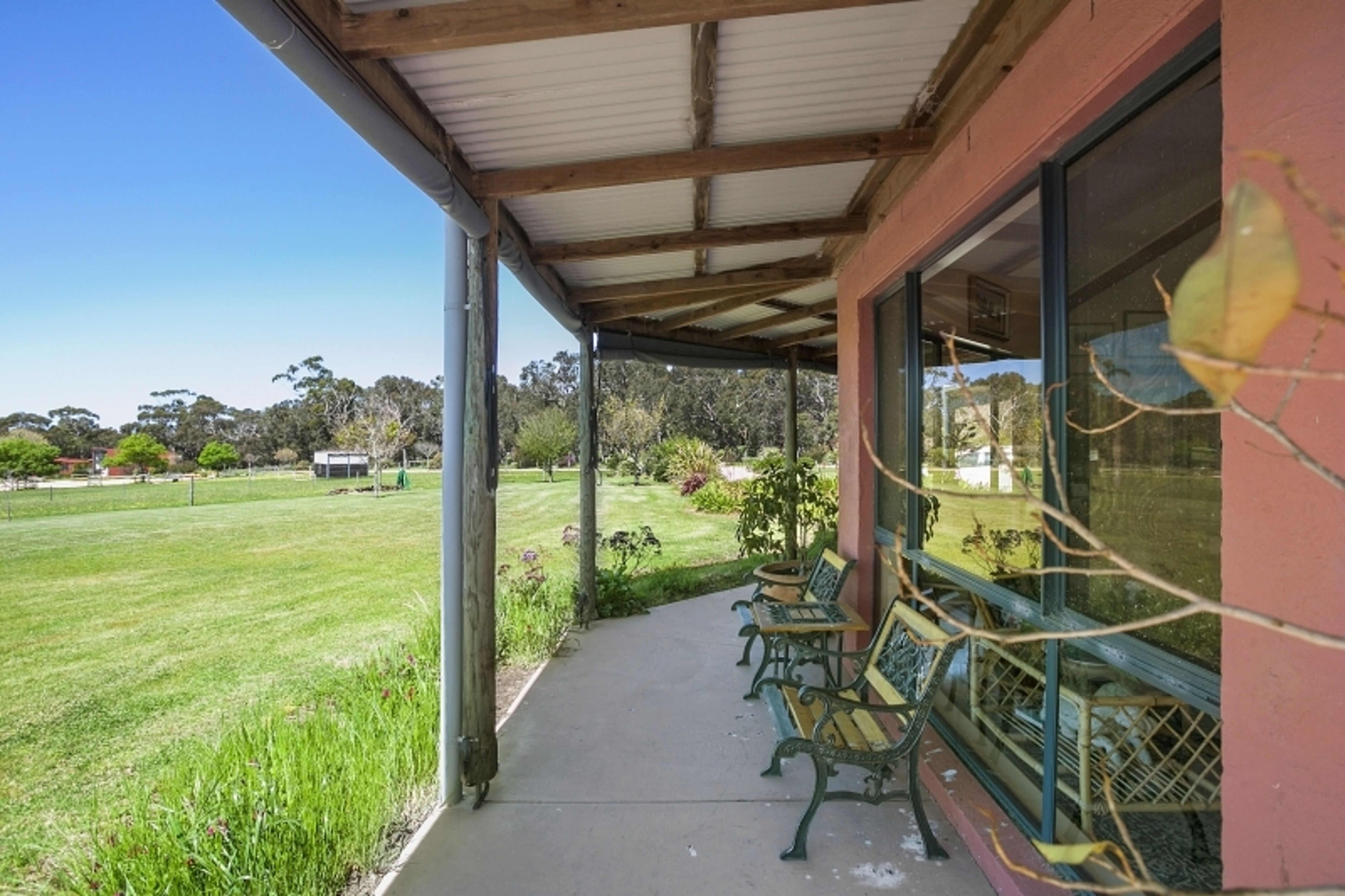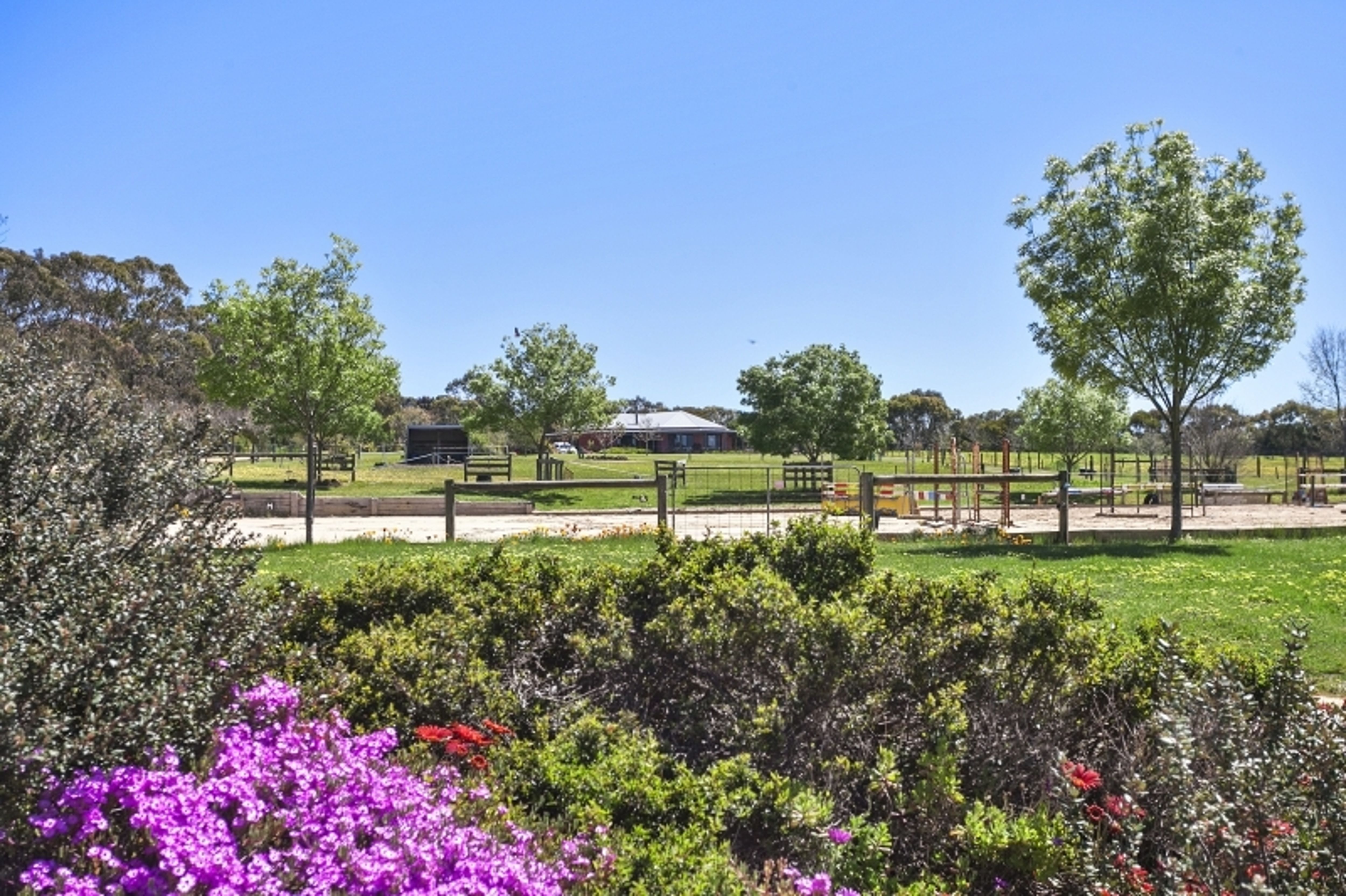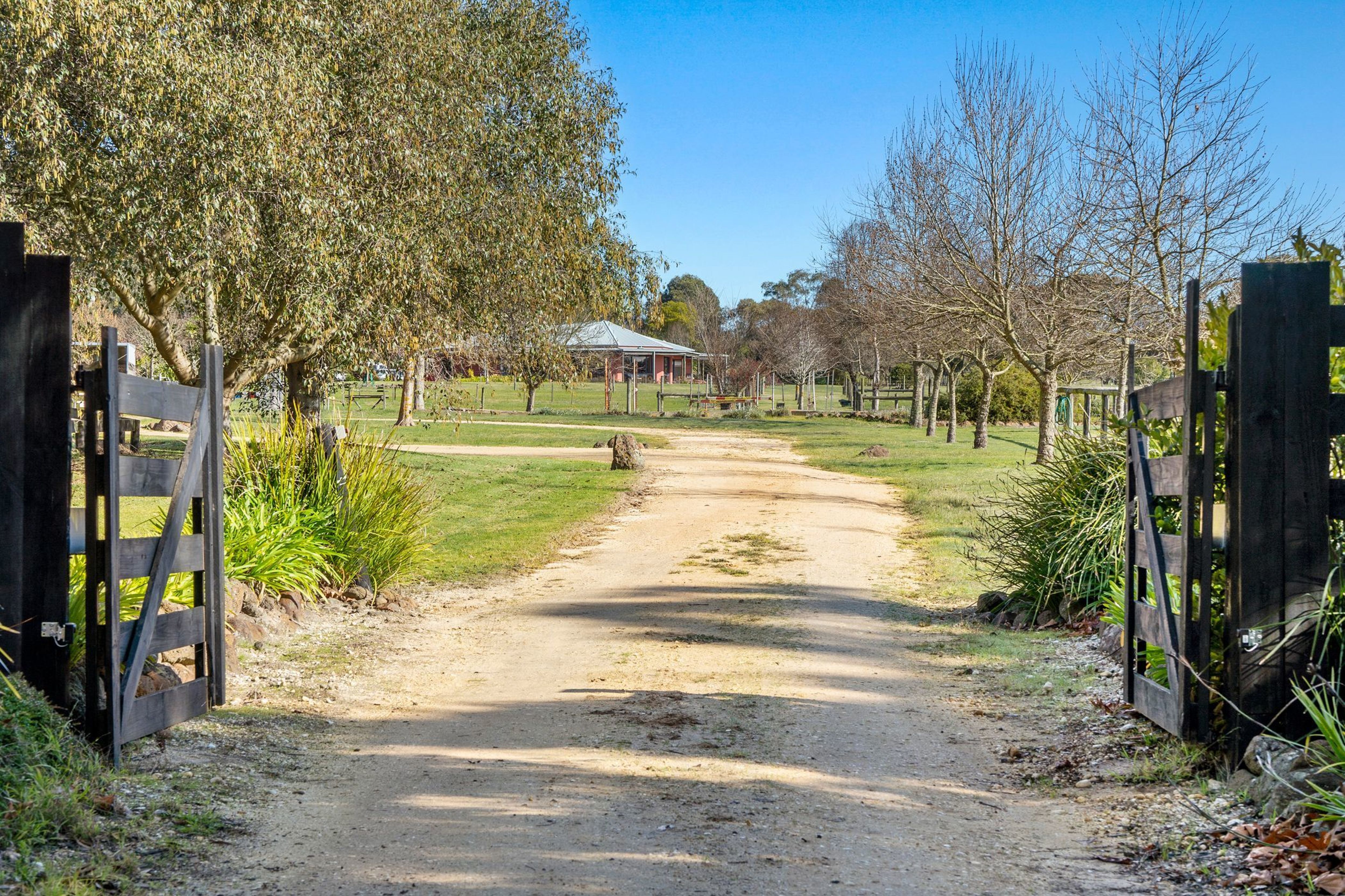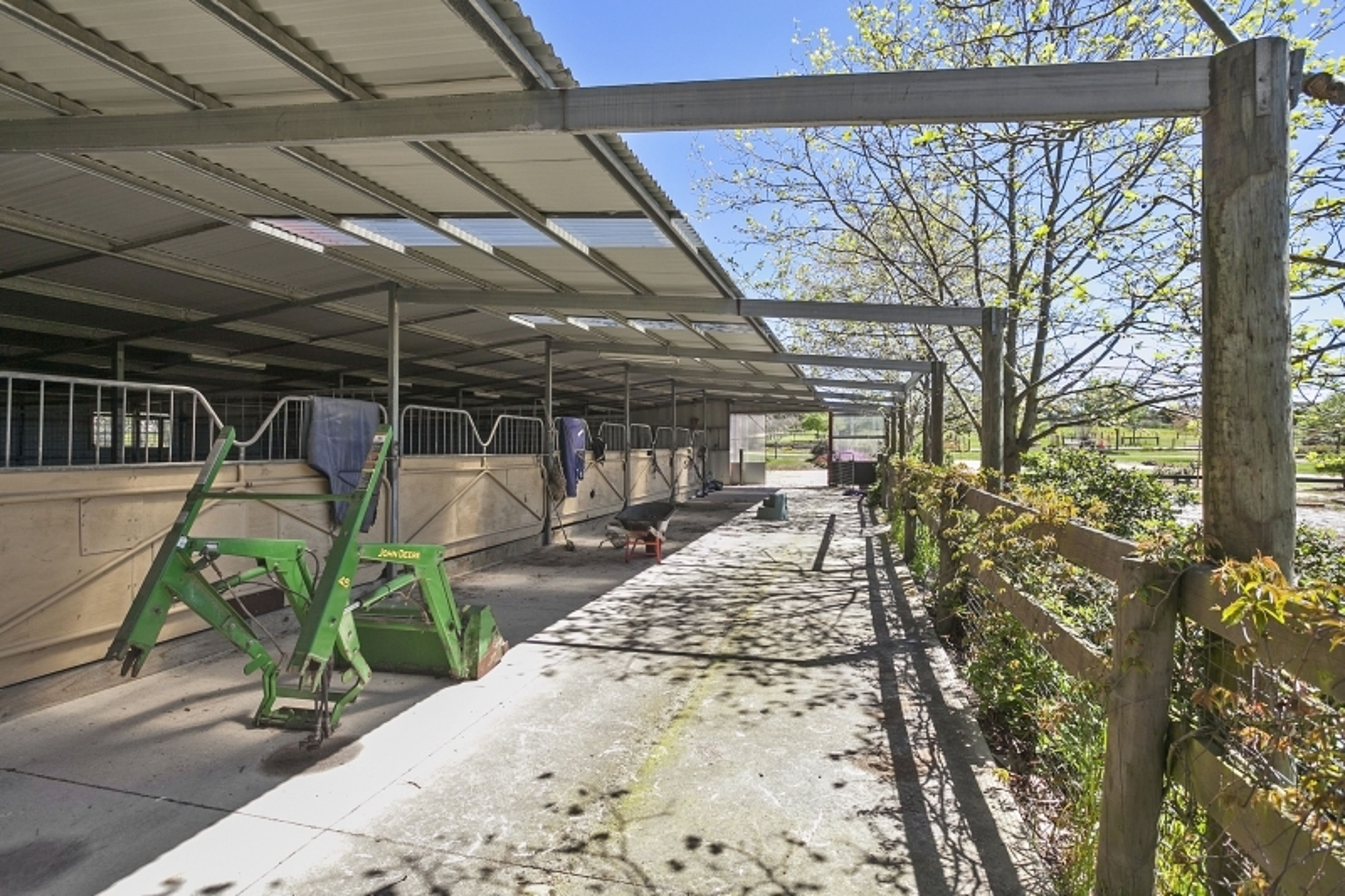 Benefiting from established shelter belts to the south and south-west, this property is well-protected and offers 2 large paddocks, 8 supplementary paddocks, arena, stables (6 bays + saddle area) plus an adjoining tack room, meals room with shower and bathroom facilities, machinery and float shed, 2x 22,730L water tanks and a granny flat. The property includes the provision of 2 bores for stock supply (one located near the stables and one located near the dam), a large dam which feeds the troughs on Lot 3 (the house block), 5 horse shelters, gas hot wash (bottled) and secure entry to the farm through the mains power automatic gates.