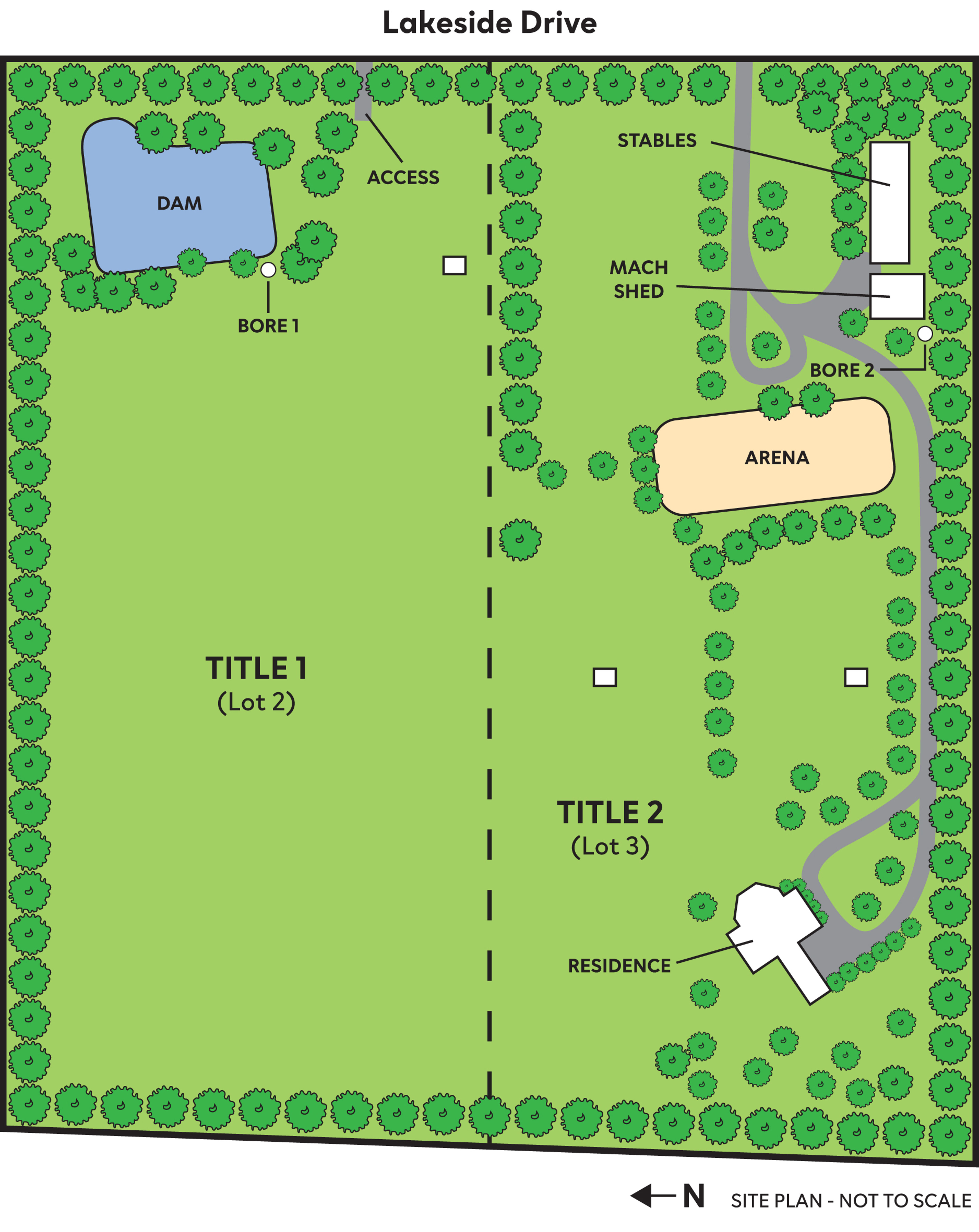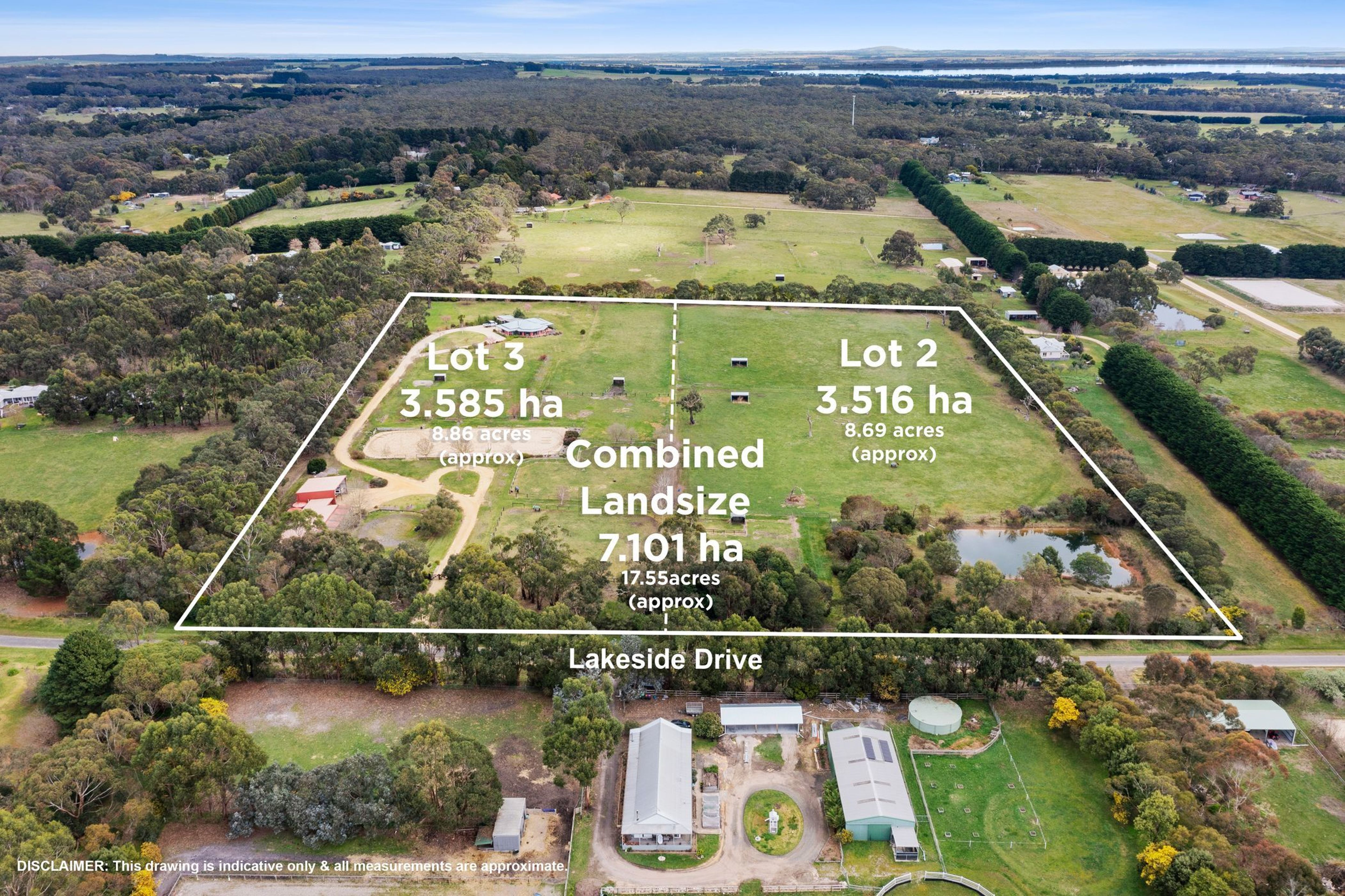 The property enjoys a unique and highly desirable composition, comprising 2 titles as depicted (Lot 2 land only = 3.516Ha / 8.69 acres approx ; Lot 3 house block = 3.585 Ha / 8.86 acres approx) with separate road access to both titles.