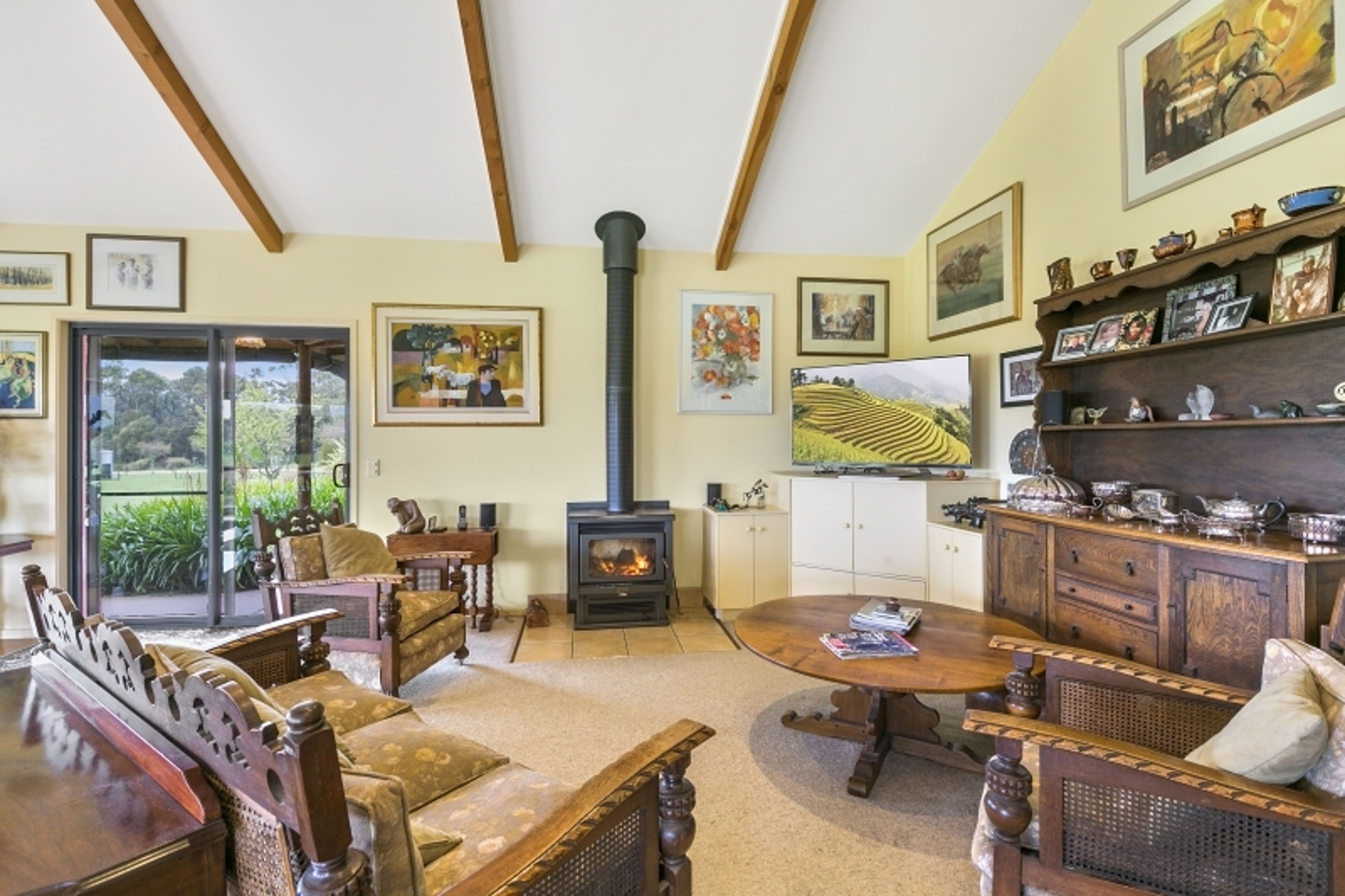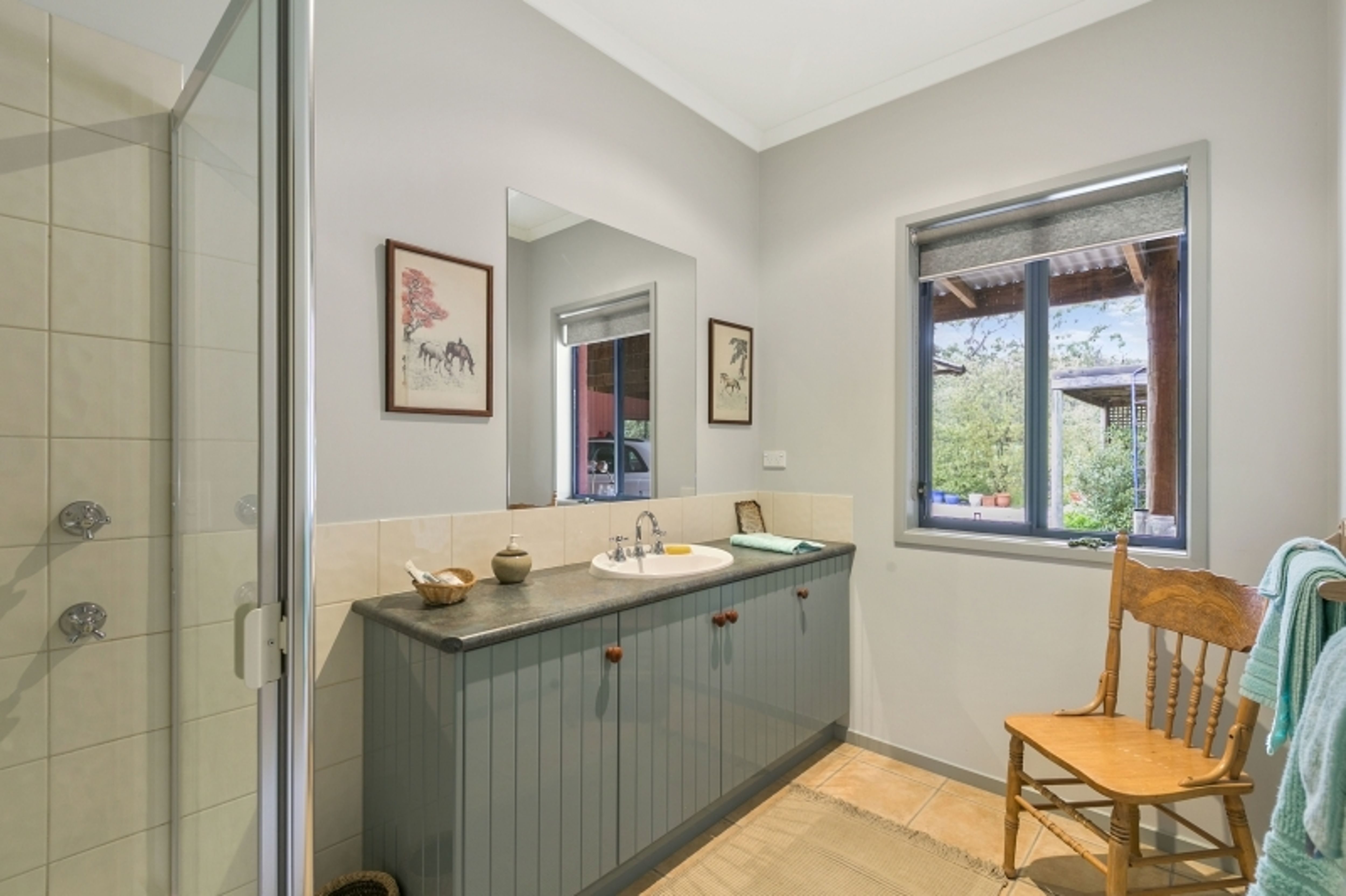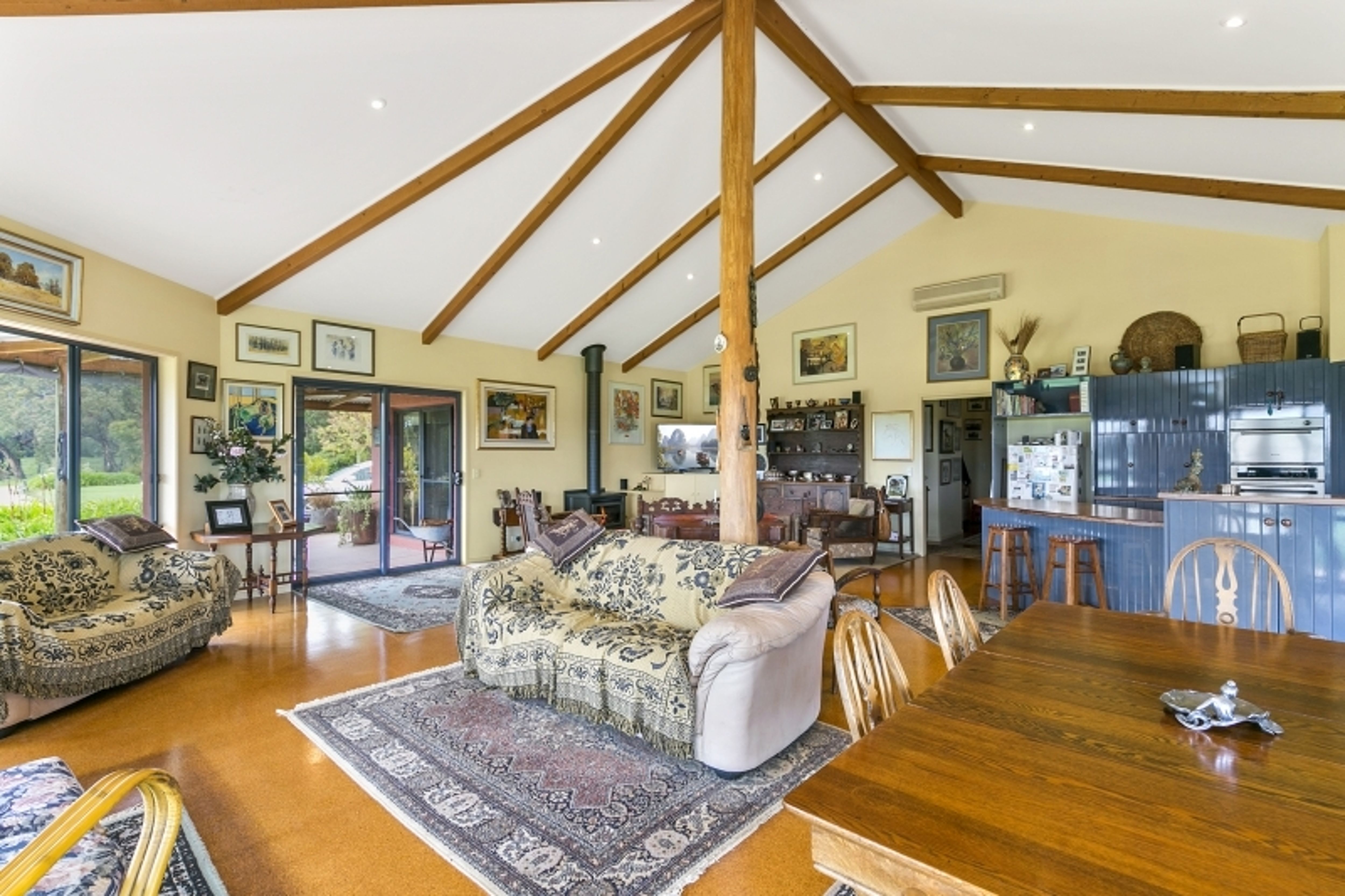 Featuring 3 bedrooms (master with WIR and ensuite, enjoying a warm northerly aspect with superb views of the property), 2 bathrooms, open plan kitchen/meals/lounge with cork flooring, Rinnai split system heating/cooling, wood fire (dual facing to support bedroom 3), gas cooktop, electric steam oven and Fisher & Paykel dishwasher, a separate laundry and good storage throughout. Adjoining the residence is a double carport for undercover parking plus a workshop/shed, expansive lawns and gardens, 3 veggie beds and lovely trees.