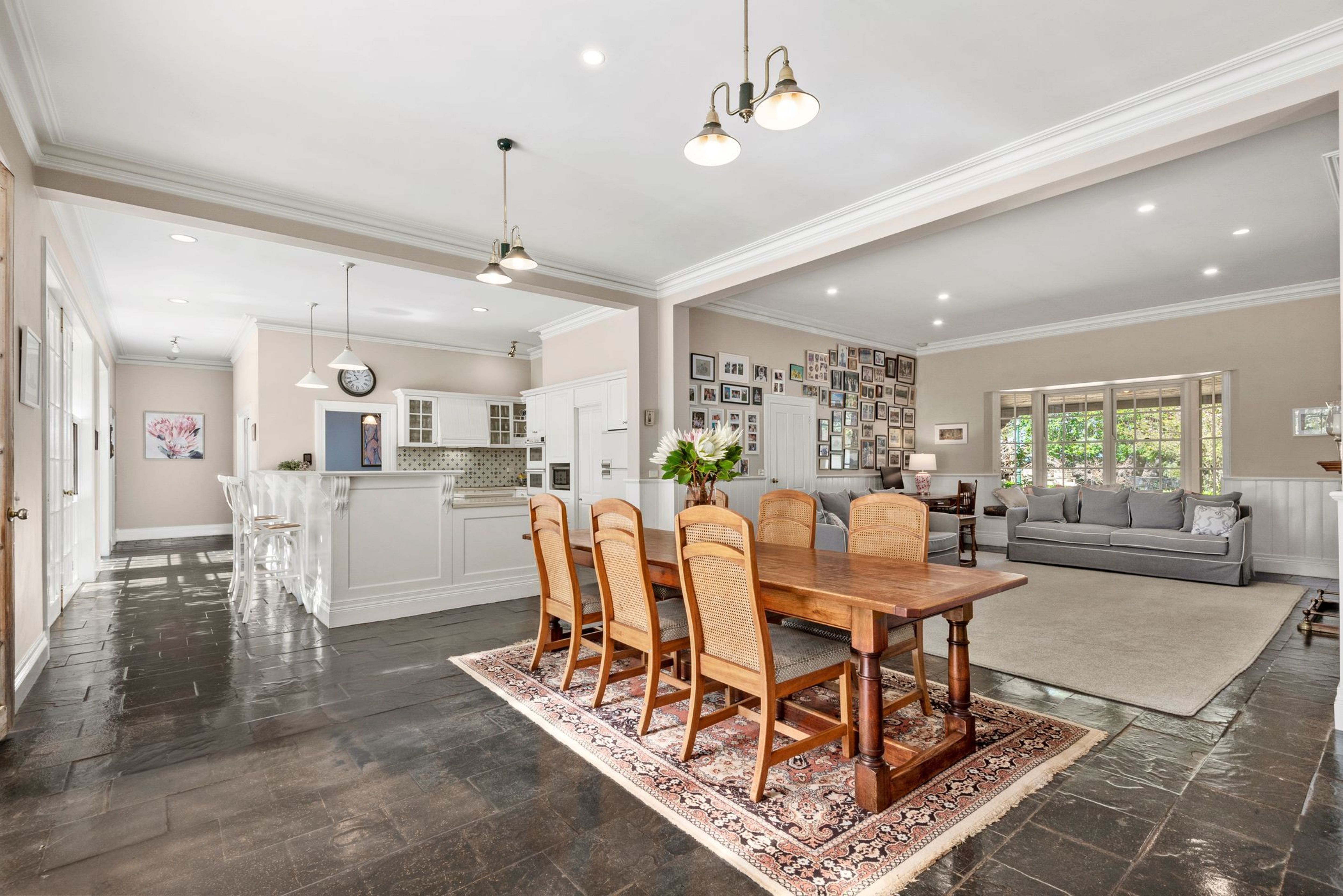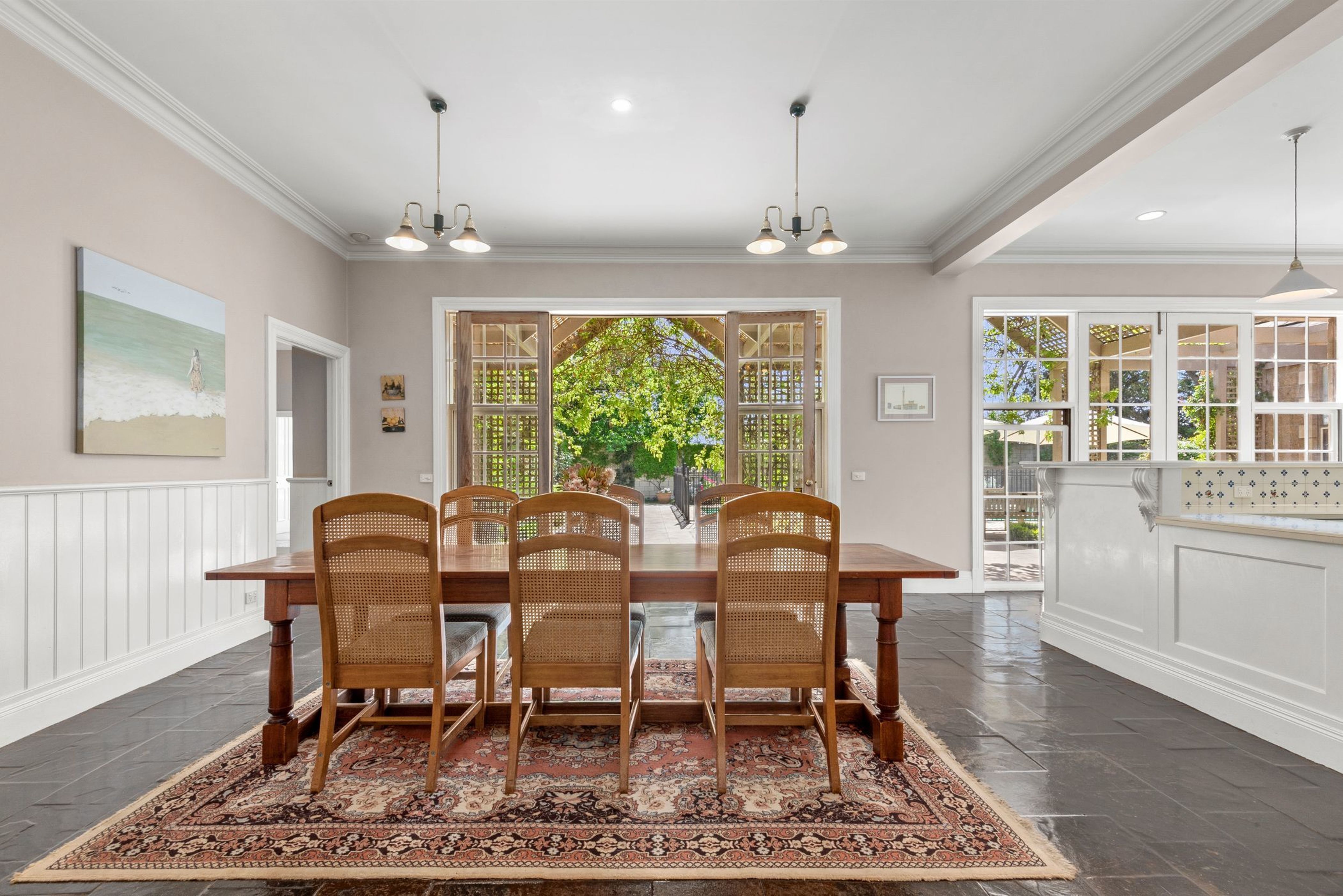 The home makes a grand statement with Boston ivy and Virginia creeper covering the double split blockwork, lending an "old world" feel to the home and setting the scene for what's to come. With the addition of timeless African slate floors throughout the home, 3.3m high ceilings and grand spaces throughout, this much-loved family home will suit a large family looking to stretch out and enjoy the Barrabool Hills lifestyle.