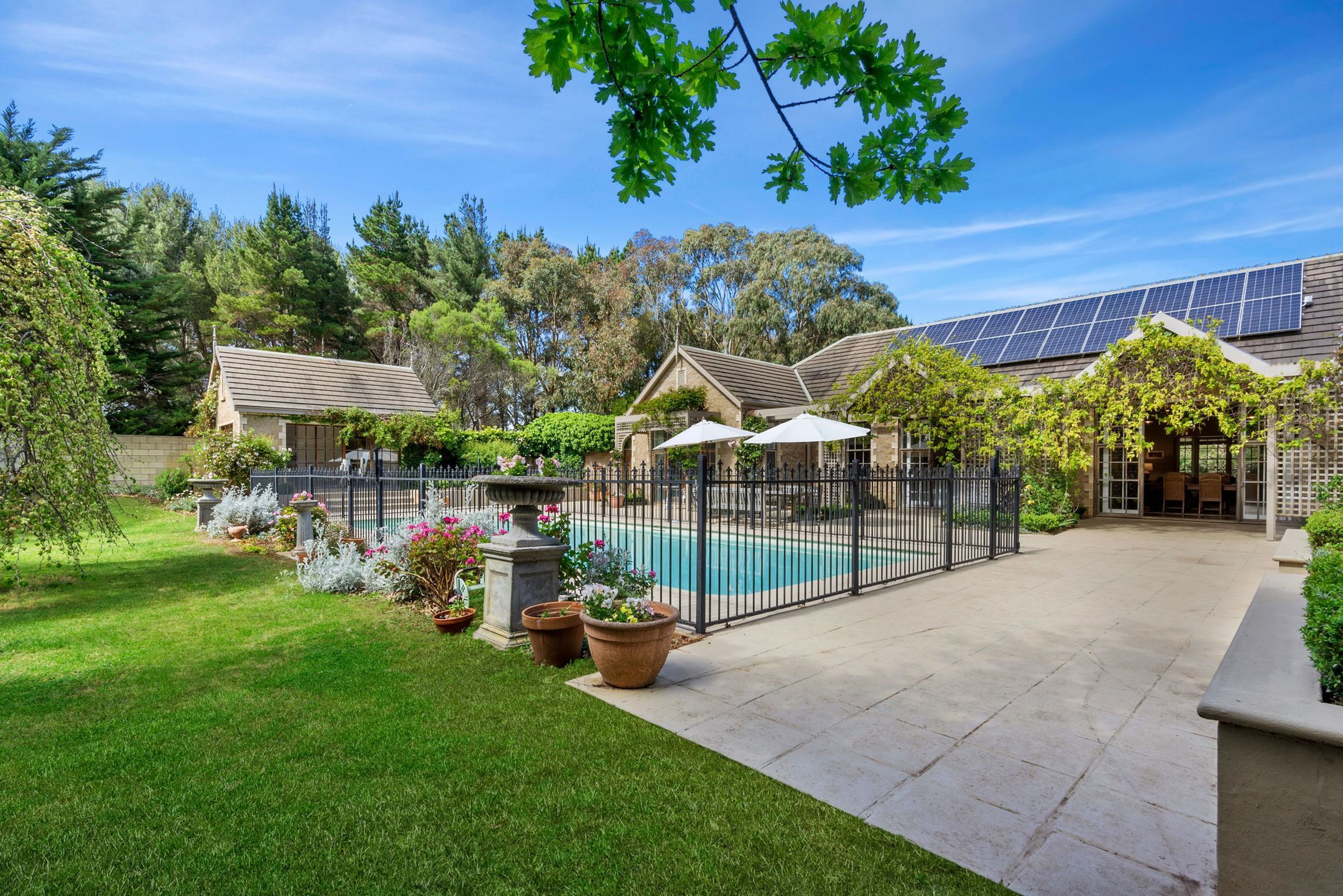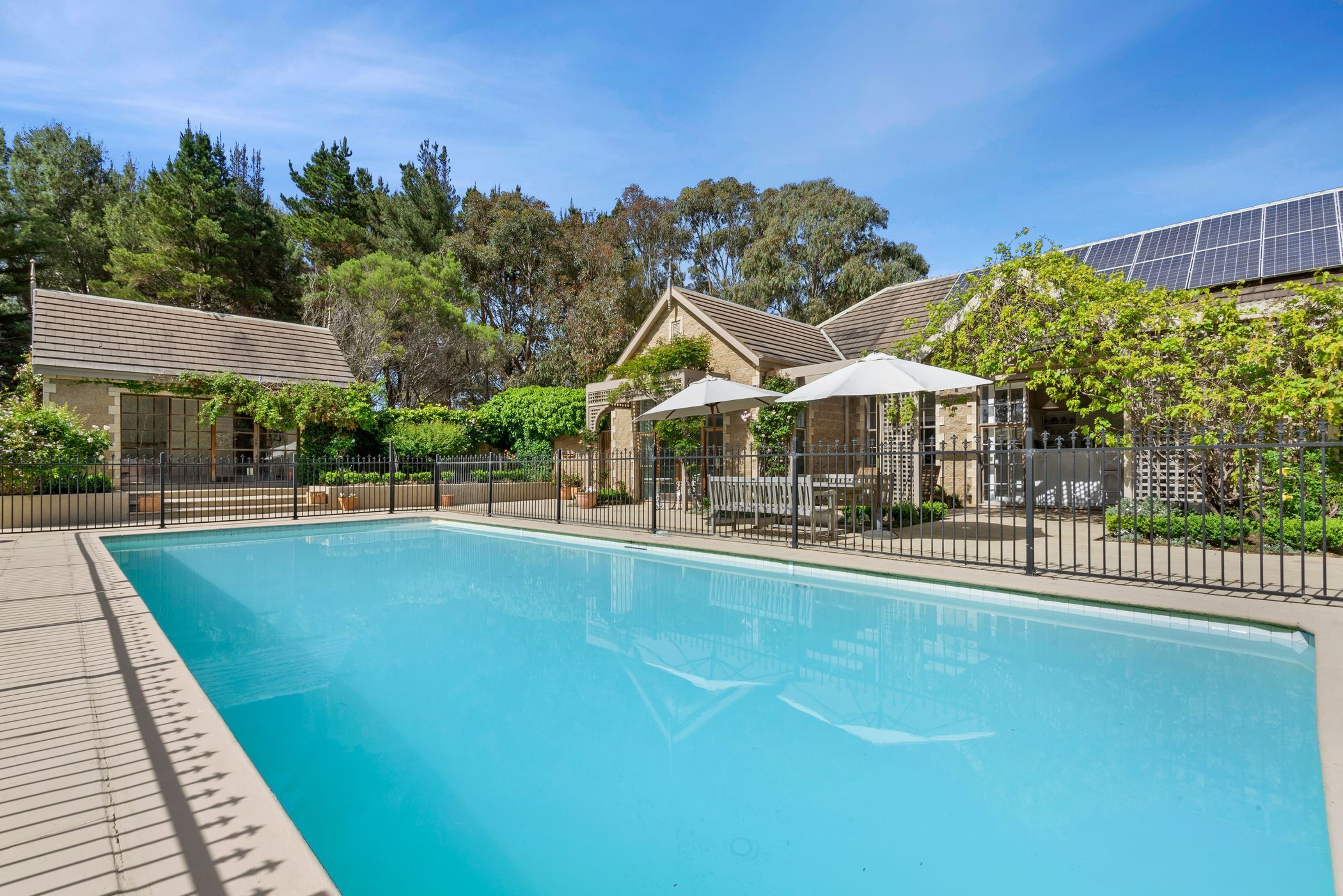 The in-ground 12.5m x 5.0m solar-heated pool is a showstopper, set perfectly in the middle of the walled garden courtyard, it's an entertainers delight and complimented by its own pool/spa house containing a spa, sauna, shower, sink and toilet.