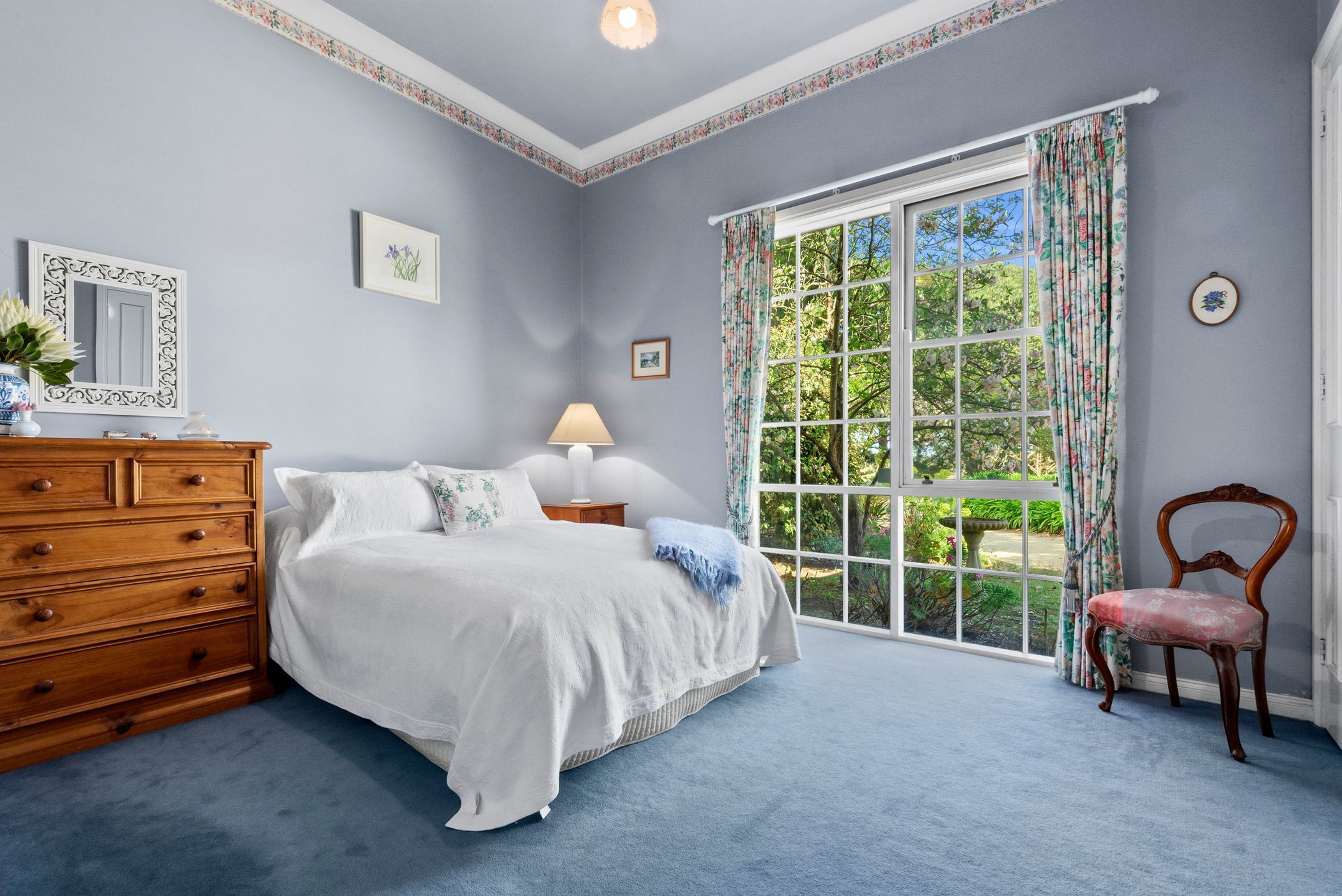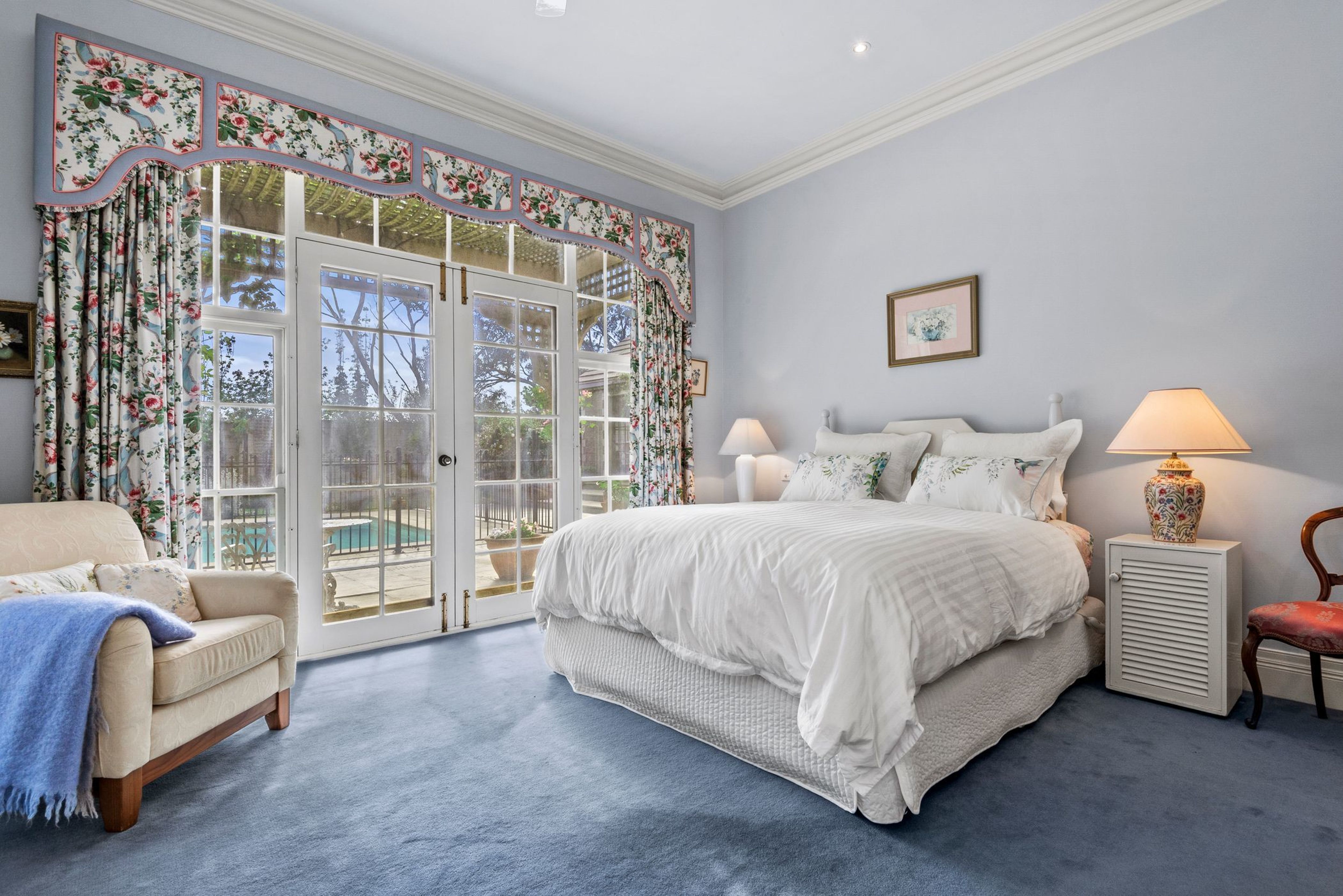 In the east wing, there is a formal lounge and dining room with a grand open fireplace enjoying views over the surrounding gardens. This leads to the master suite which overlooks the pool and gardens, enjoying a dressing room area, walk-in-robe, split system heating & cooling and a large ensuite. The spacious ensuite features a freestanding bath, large shower, double sink vanity and a separate powder room. With dual access doors to the ensuite leading to a 5th bedroom further along the hallway, this room has the option of becoming the perfect private study space or nursery.