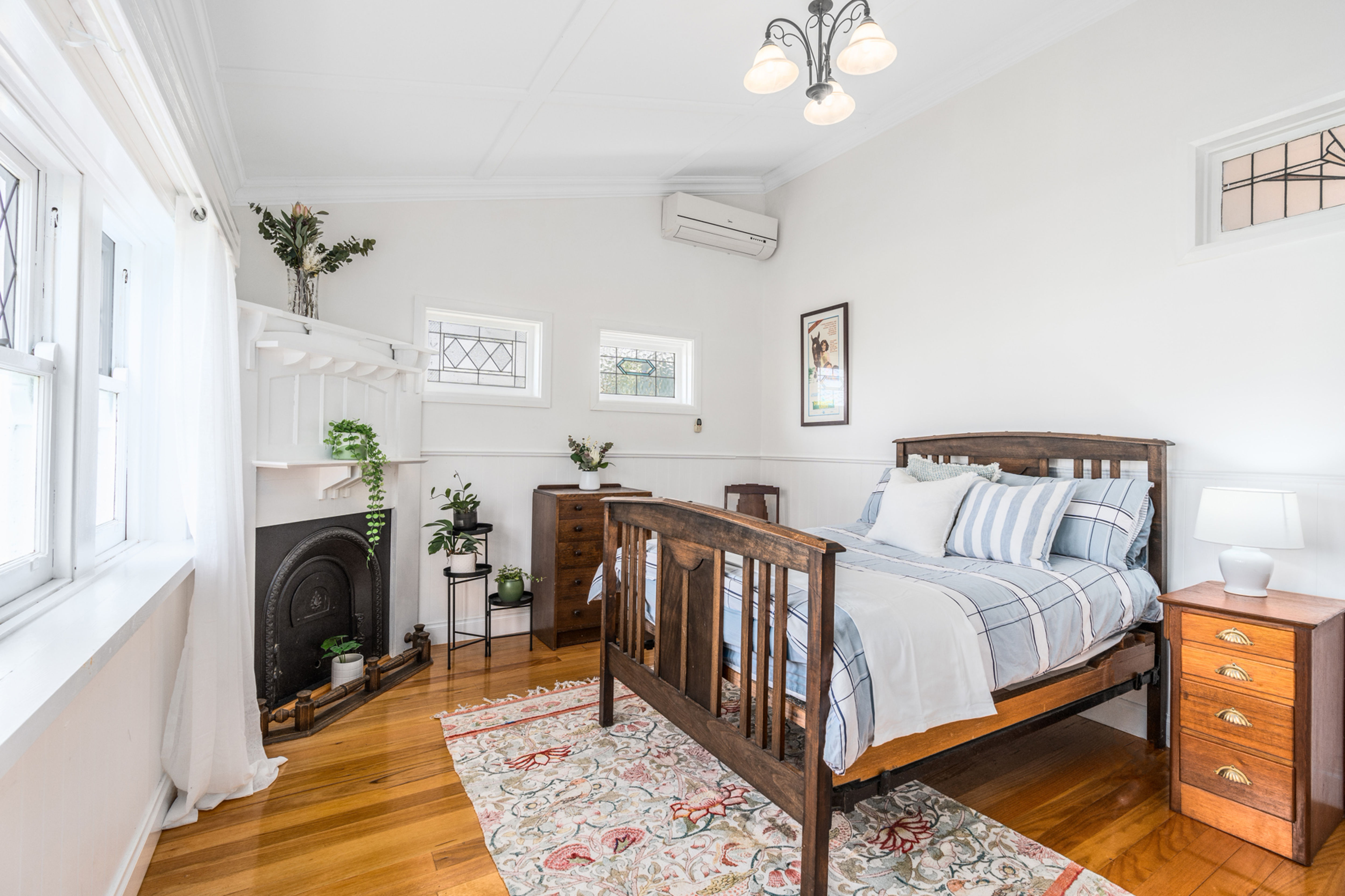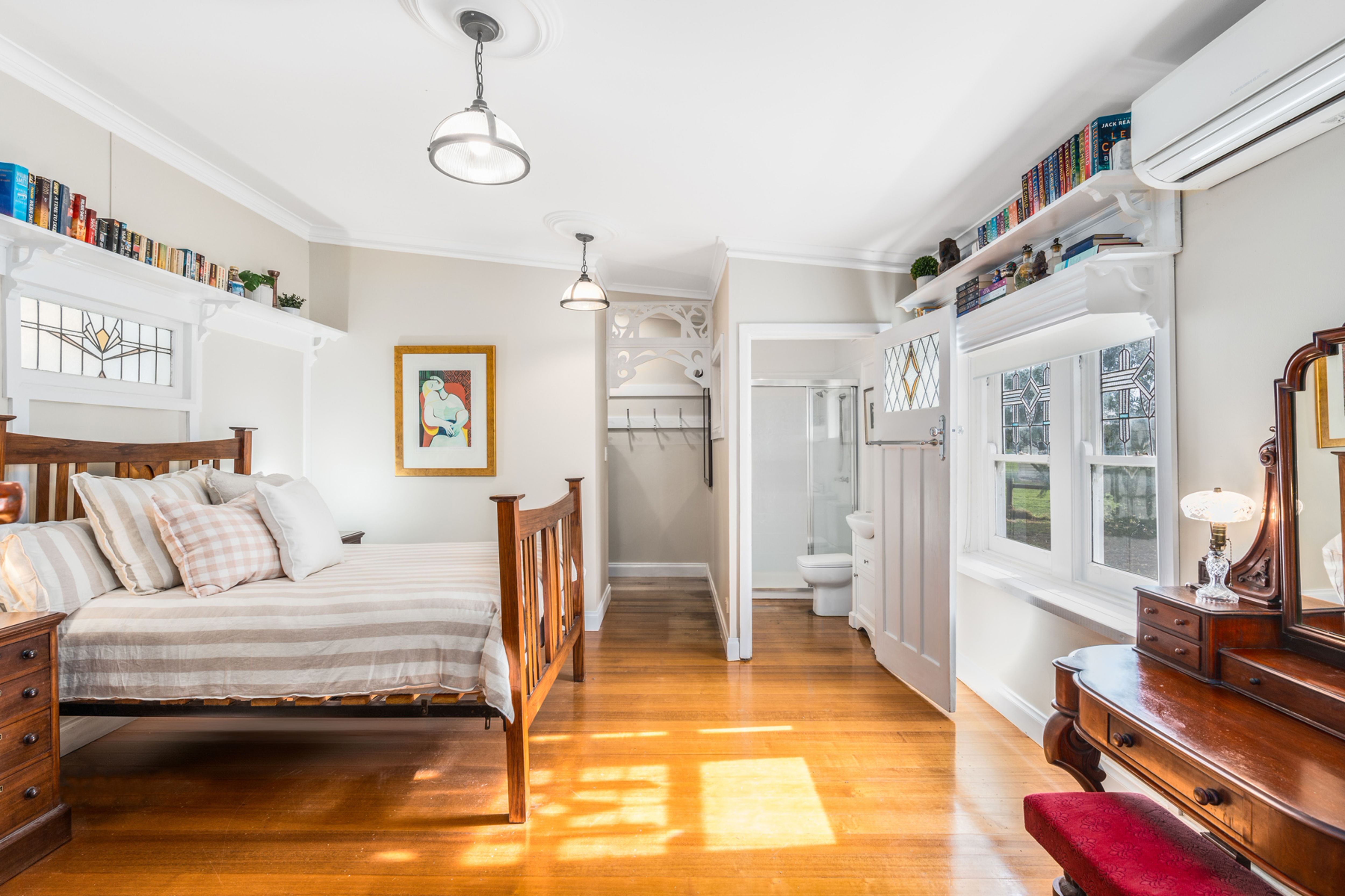 The five bedrooms are brimming with character, with details such as ornamental fireplaces and large windows that allow for abundant natural light. The master suite boasts a walk-in robe, ensuite and split system heating and cooling, with the remaining bedrooms serviced by a fully renovated family bathroom with a shower, toilet and adjoining laundry, while the 3rd bathroom highlights a stunning clawfoot tub and additional toilet.