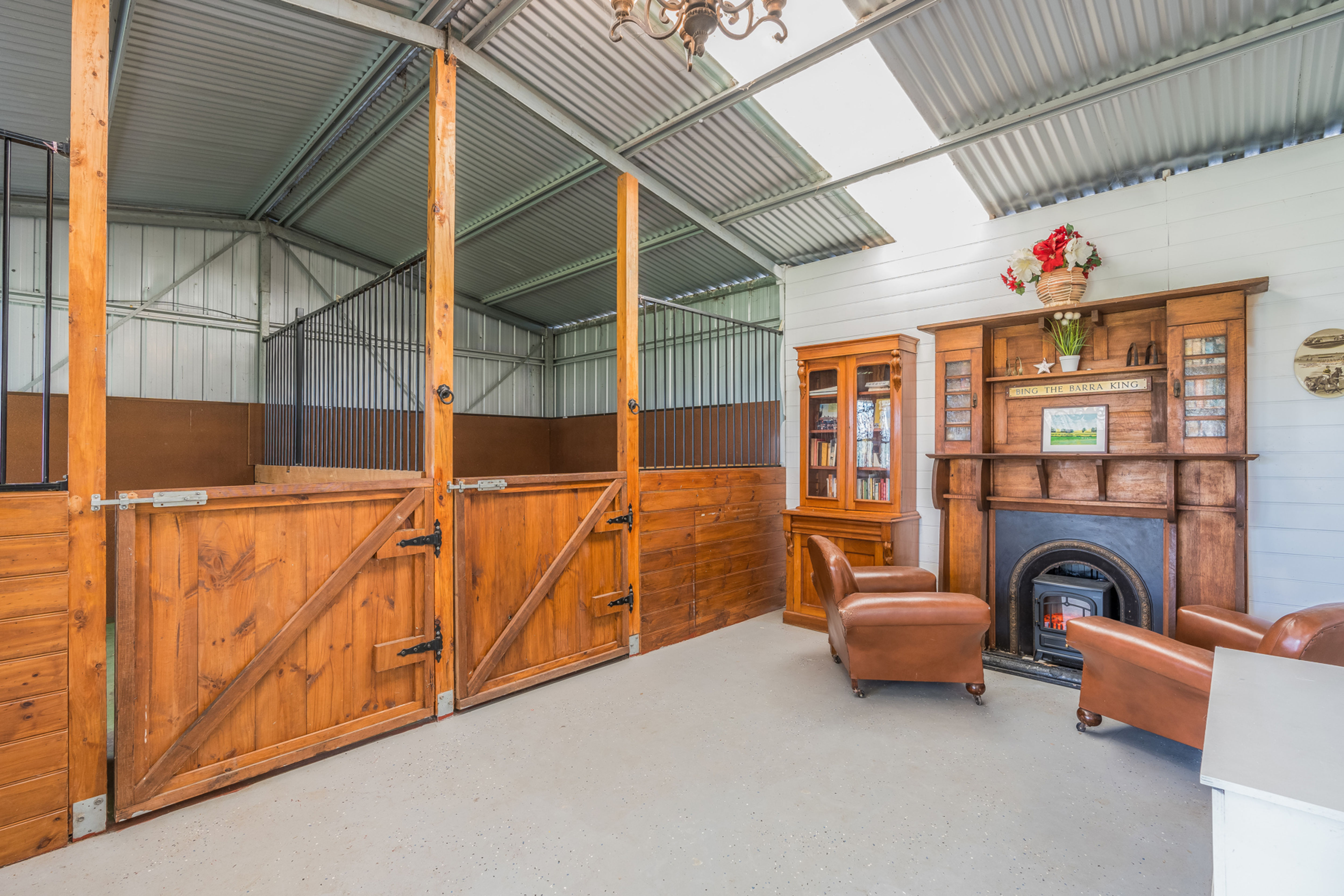 Beyond the main house, the property offers ample space for rural activities showcasing an array of shedding to suit all hobbies and farming pursuits. The first machinery shed offers two open bays (perfect for tractor, truck or float storage) and two fully enclosed bays, the second is a car lovers dream providing two separate double garages plus a workshop and office, the third offers another double garage (perfect for car restoration or conversion to additional stables) with an adjoining kitchenette and storage area. Separate to this is an entertainers garden bar or home office space with period features and an open fire.