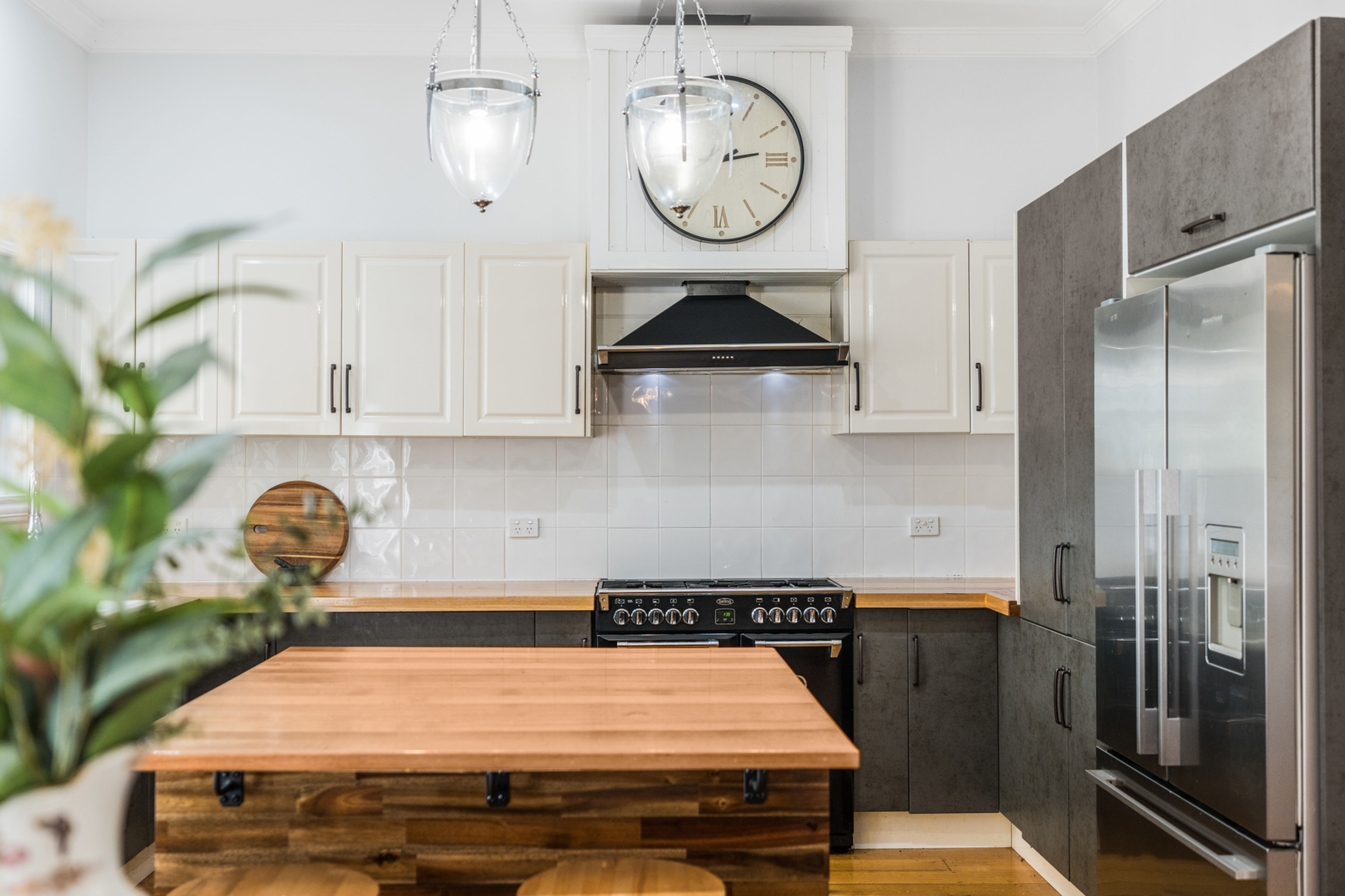 The heart of the home is its inviting open-plan kitchen and living area, where modern amenities meet timeless elegance. The kitchen is well-appointed with a country style Belling gas cooktop and electric oven, Westinghouse dishwasher, plenty of bench space and an adjoining meal prep area and mudroom separate entry. The adjoining meals area offers a seamless flow for everyday family living, along with the sunken dining room with an electric fireplace providing a cozy setting for more formal gatherings.