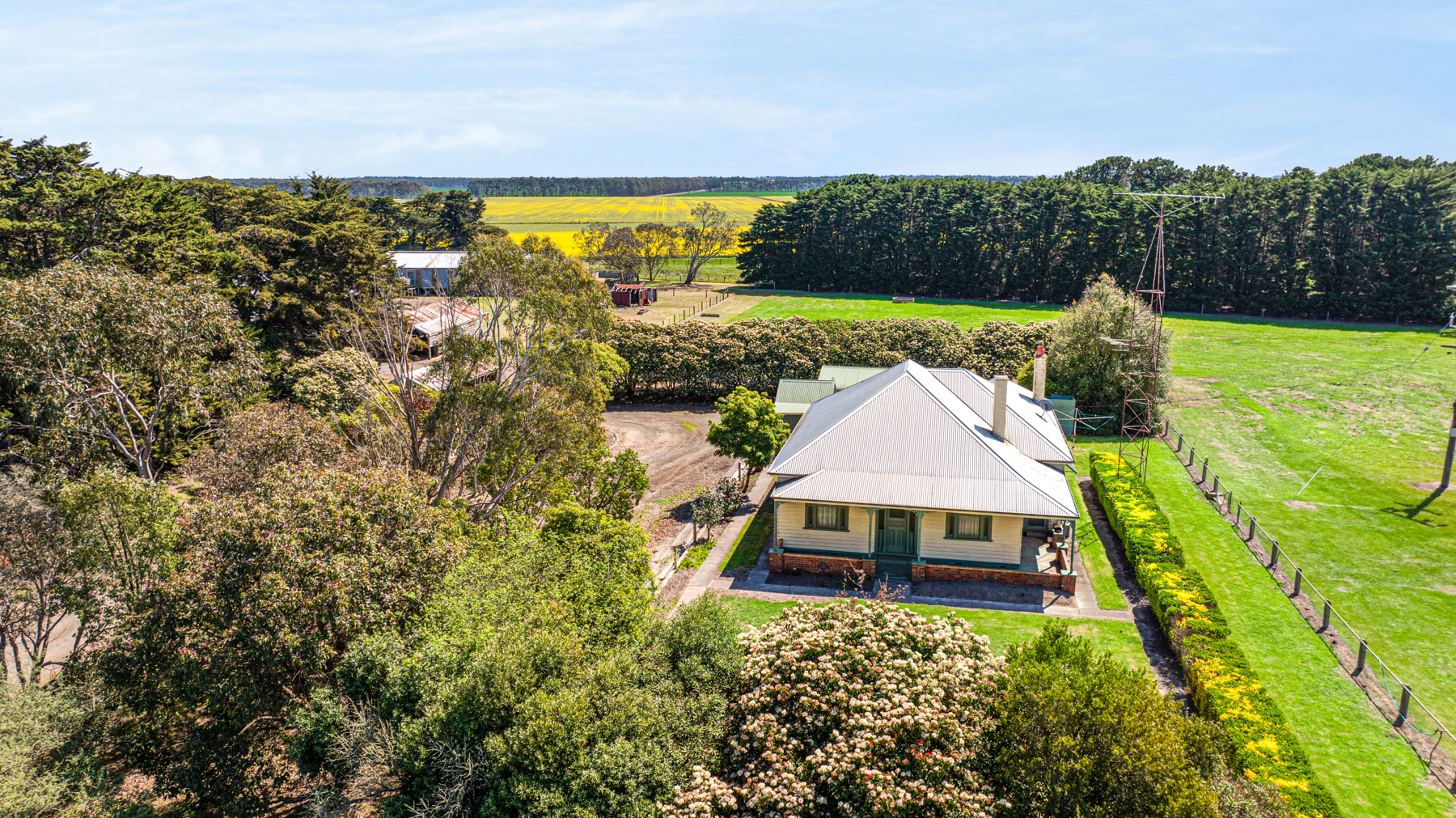 The original weatherboard home was relocated from Birregurra c1928 and offers 4 bedrooms, 1 bathroom, multiple living spaces, mud room, kitchen space, double garage and storage shed. Exuding charm and character throughout, this spacious family home will benefit from a modern refresh and would work well as a farm manager's residence or country weekender.