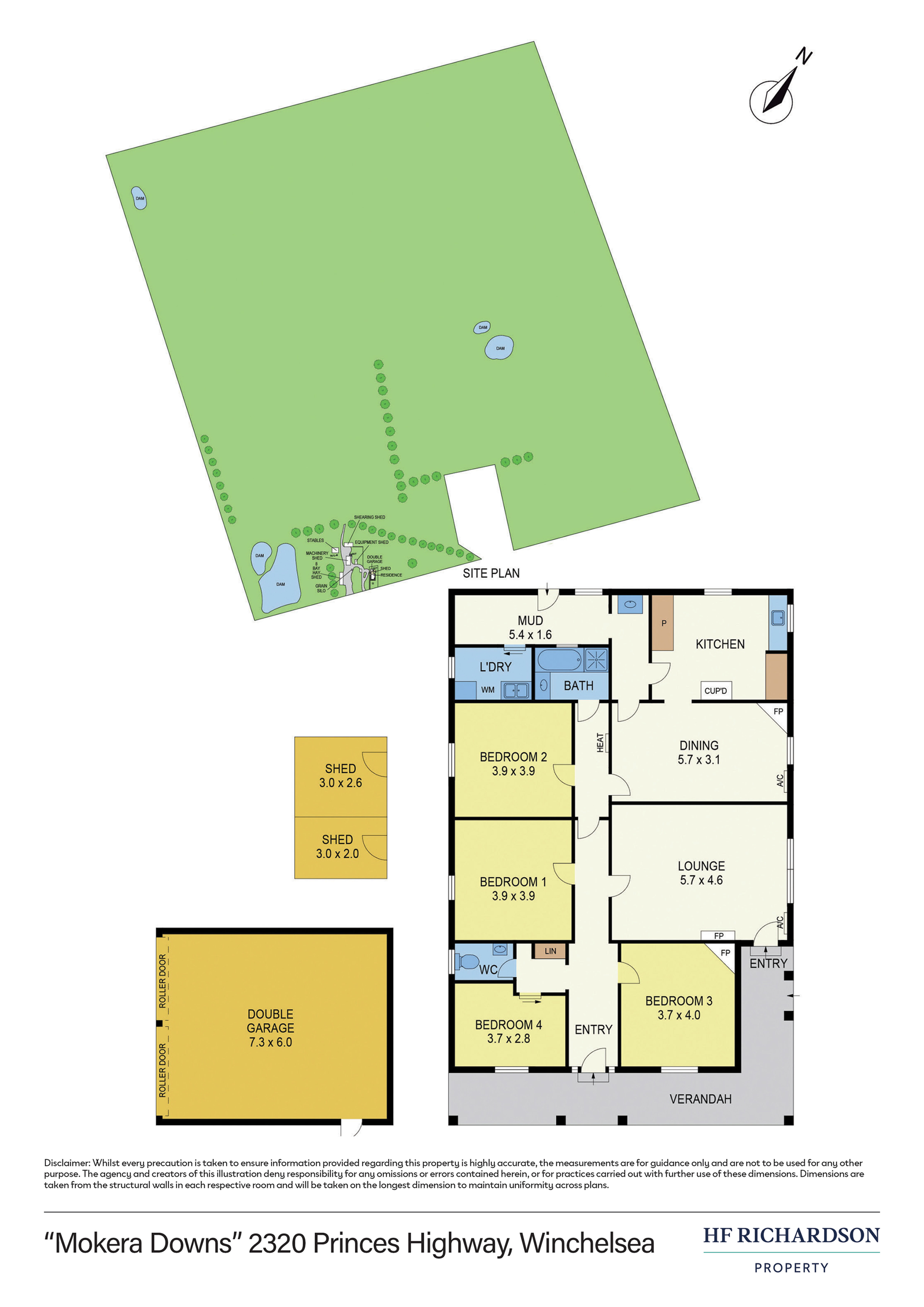 Externally, the main farmyard enjoys a separate access off the Princes Highway and features an array of impressive buildings including an 8-bay hay shed, fully enclosed large machinery shed, a quality 3-stand shearing shed (Knuckeys built c1975), stables, grain silo, equipment shed and wood shed. Structurally the property comprises 5 main paddocks, 2 holding paddocks closer to the house, 1 highly-regarded large dam (benefiting from the highway's water catchment) and 3 supplementary paddock dams.