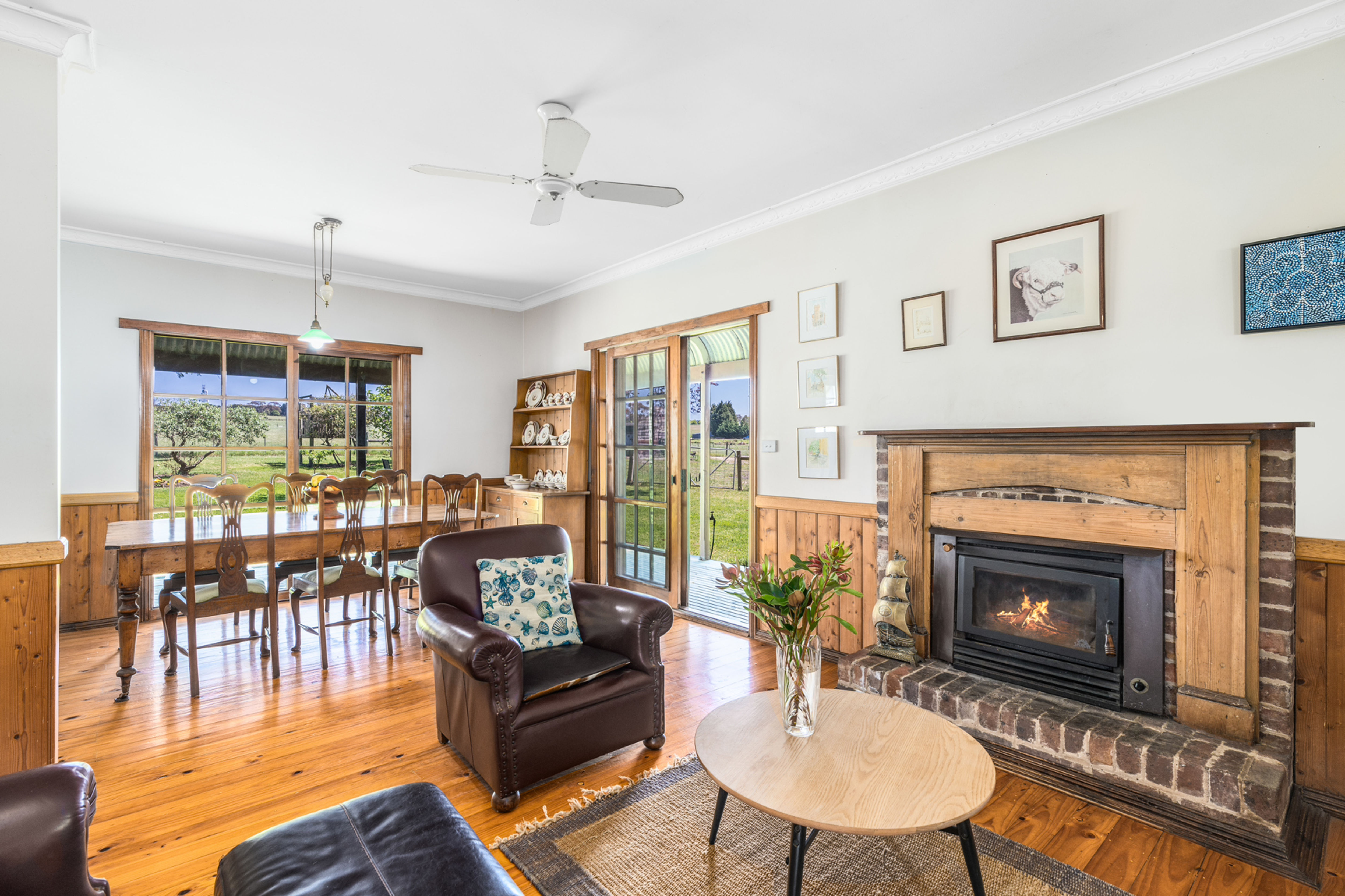 The first of two homes on the property is a well-maintained brick residence offering 3 spacious bedrooms, 2 bathrooms (ensuite to master), kitchen with electric oven and dishwasher, while the comfortable lounge and dining room is complete with a wood fireplace, perfect for cozy winter evenings and the spacious family room includes a split system ensuring all year-round comfort. There is a 4-bay machinery shed, hay shed and approx. 46,000 litres of tank water to service the house adding to the convenience of rural living.