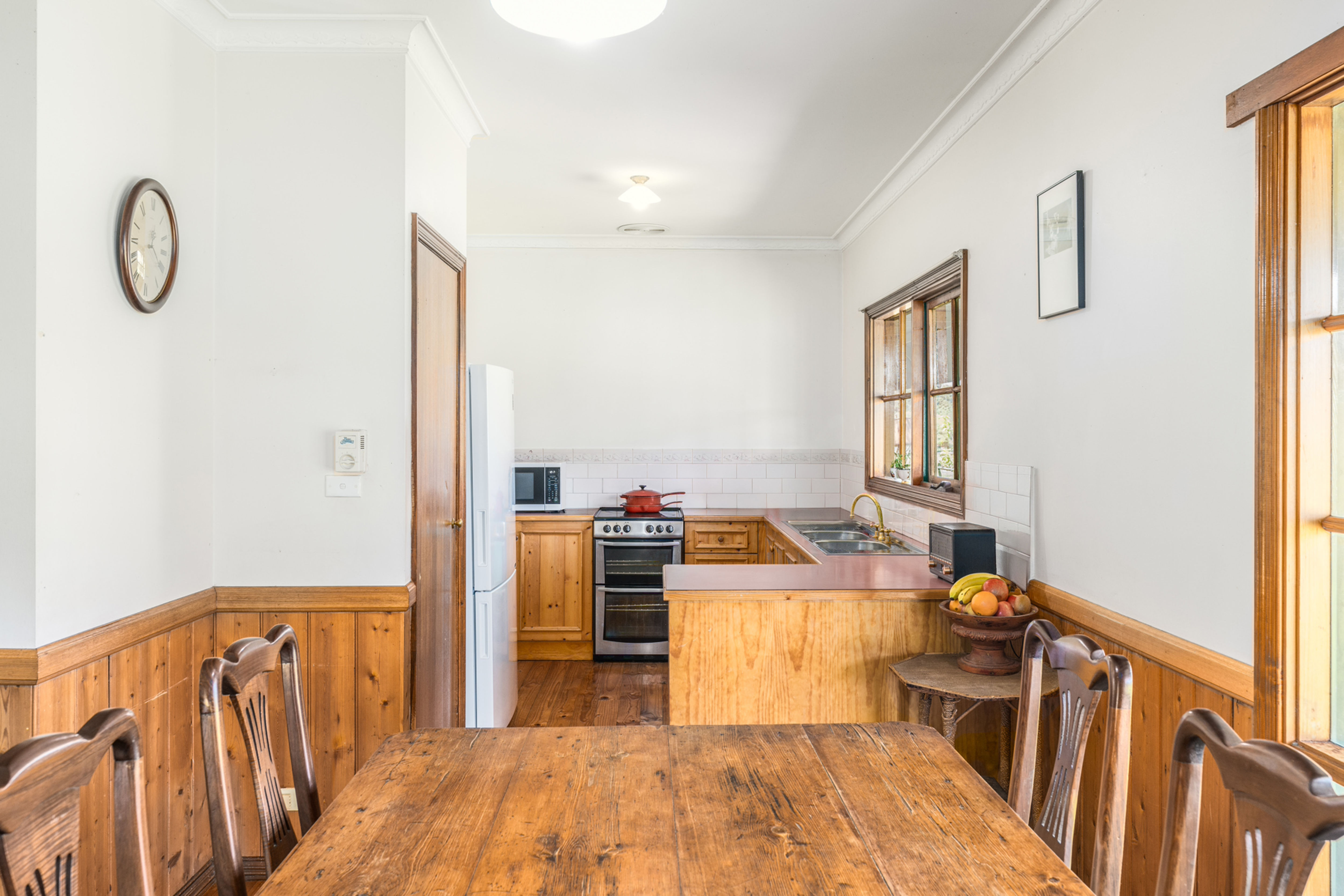 The second dwelling, a charming weatherboard home, features 3 bedrooms, 1 bathroom, open plan kitchen / dining / living with wood fire, laundry and a large veranda, making it ideal for additional family members, rental potential or as a cellar door for the vineyard. The surrounding area includes a large veggie garden, chook pen, garden shed and a workshop with 3-bay machinery shed, offering the perfect blend of functionality and country living.