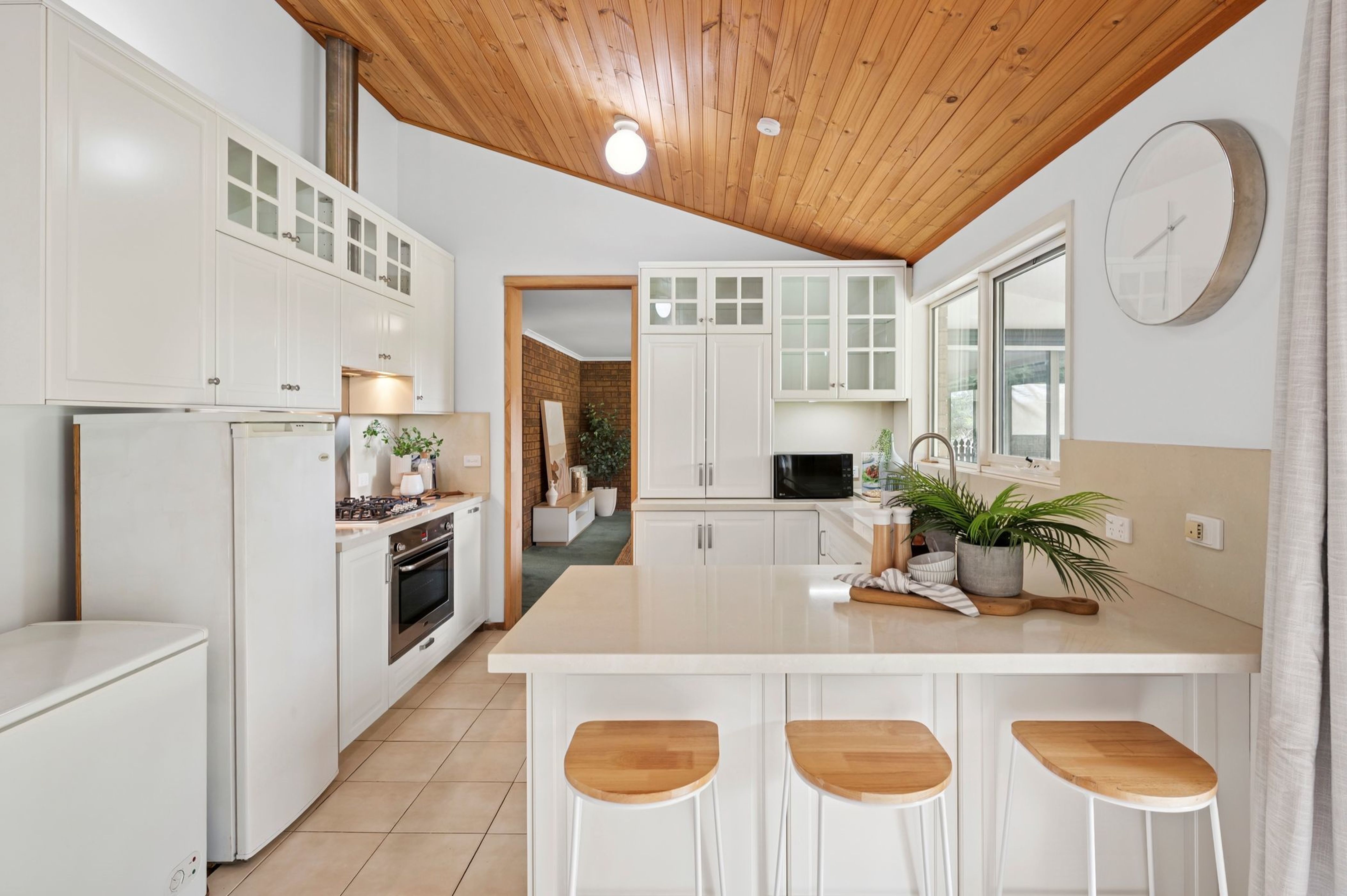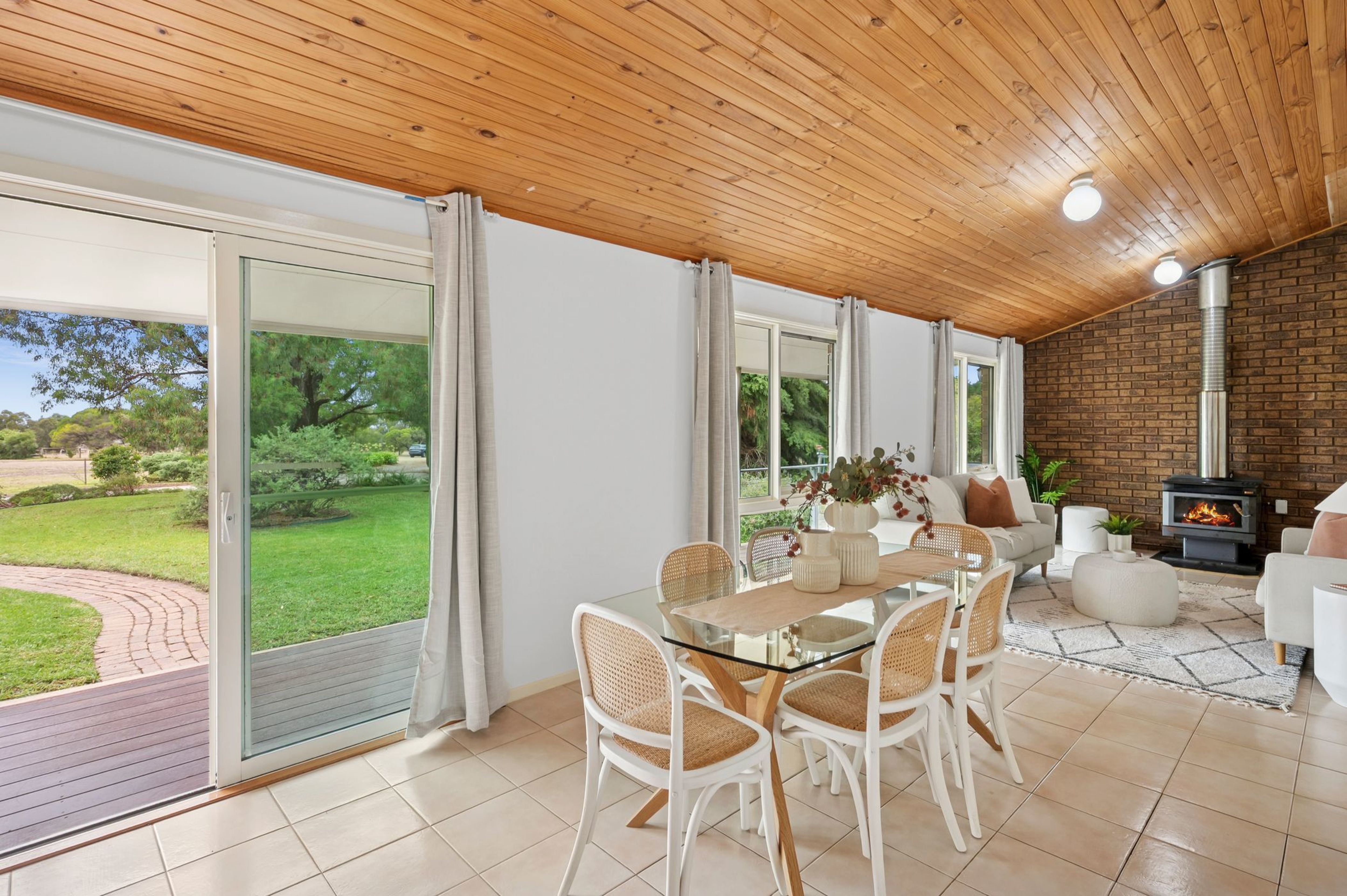 - Living Spaces: Open plan living and dining area with wood fire (providing hydronic heating) and a raked timber ceiling complements the north orientation, plus a second lounge room is the perfect spot for family movie nights