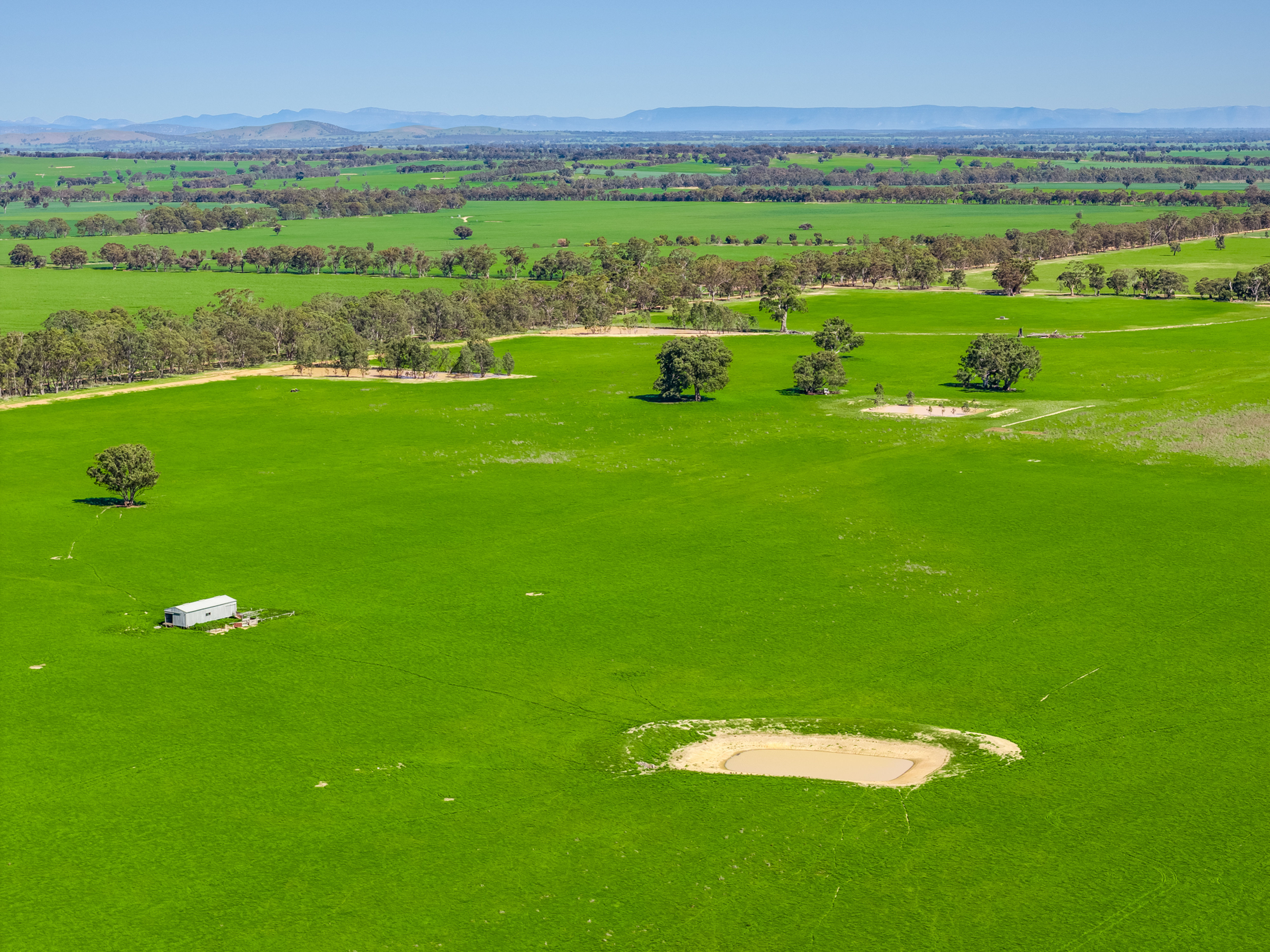 Six dams, sheep yards, two-stand wool shed and town water connected.