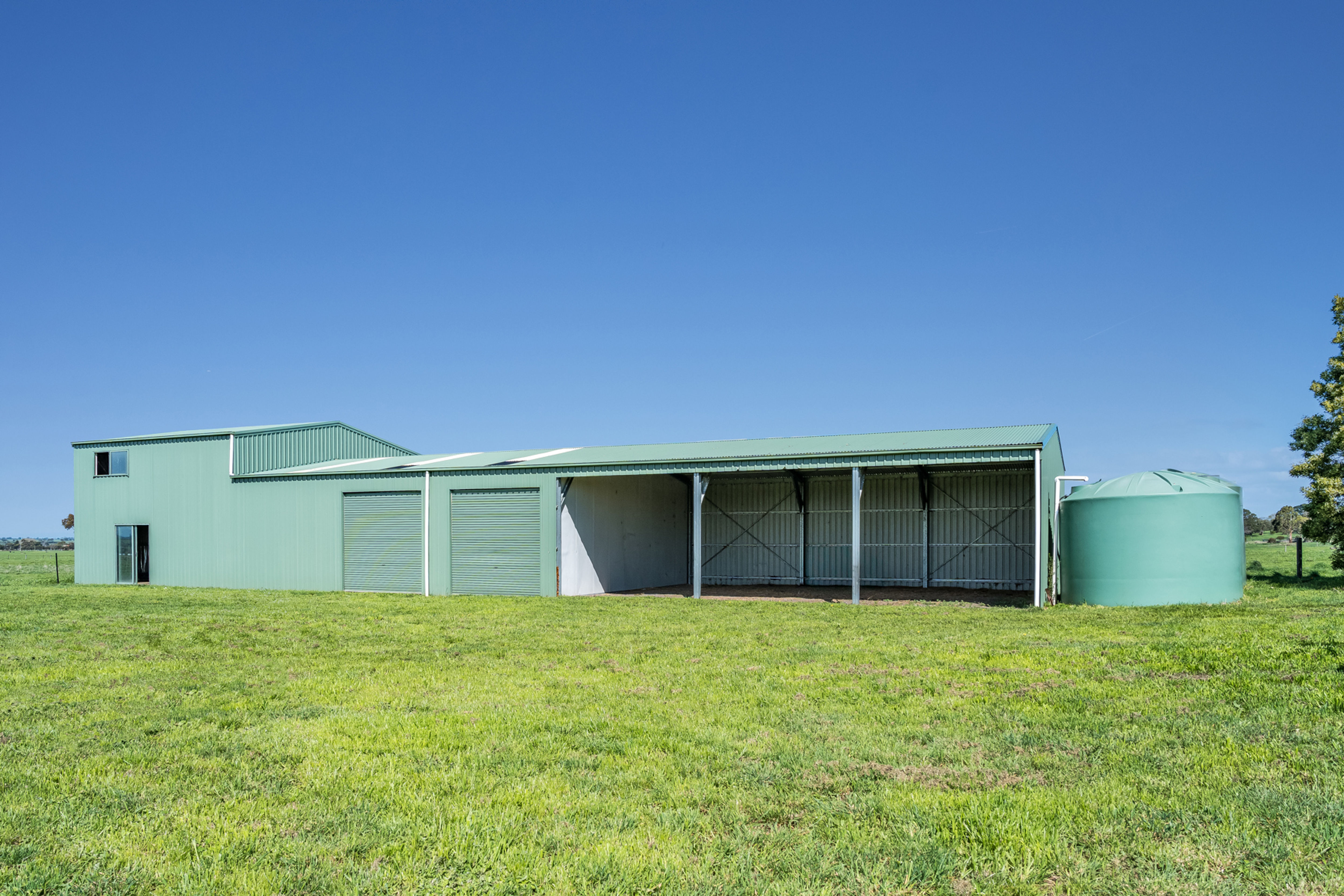 Infrastructure includes a high-quality 32m x 9m shed, part open-fronted for hay or machinery storage, with the remainder fully enclosed (2 roller doors), featuring a concrete floor and mezzanine area, ideal for a workshop or future development.