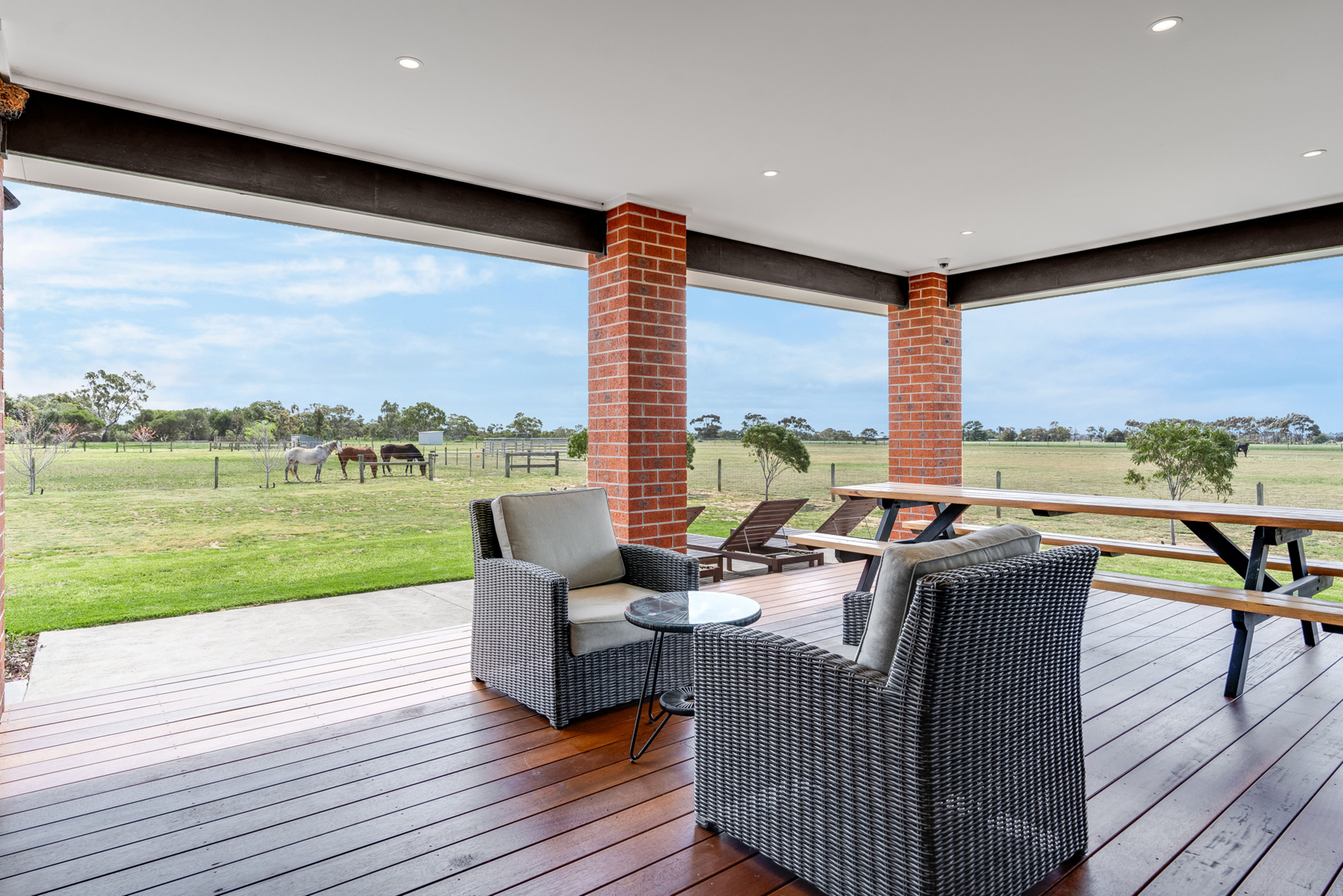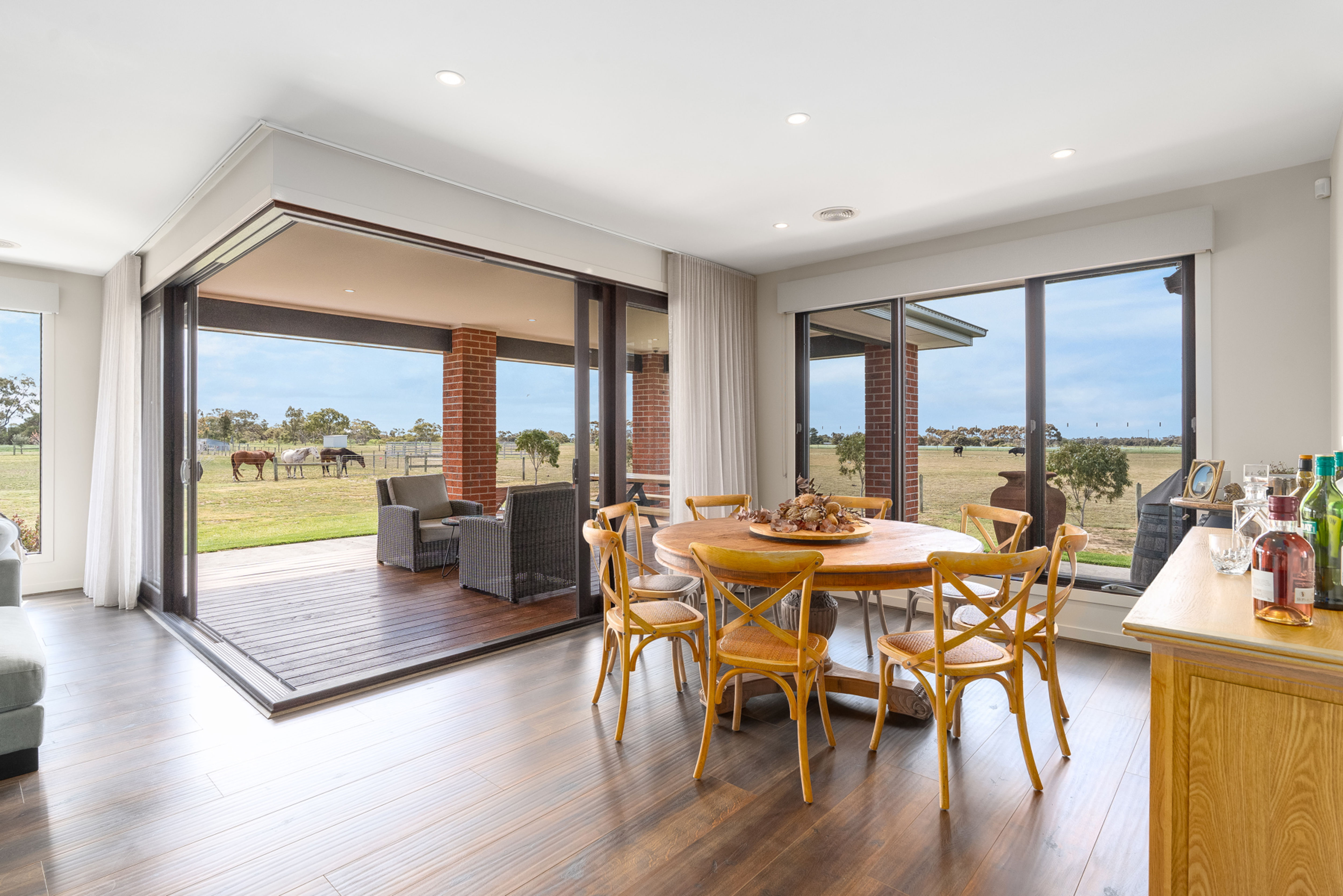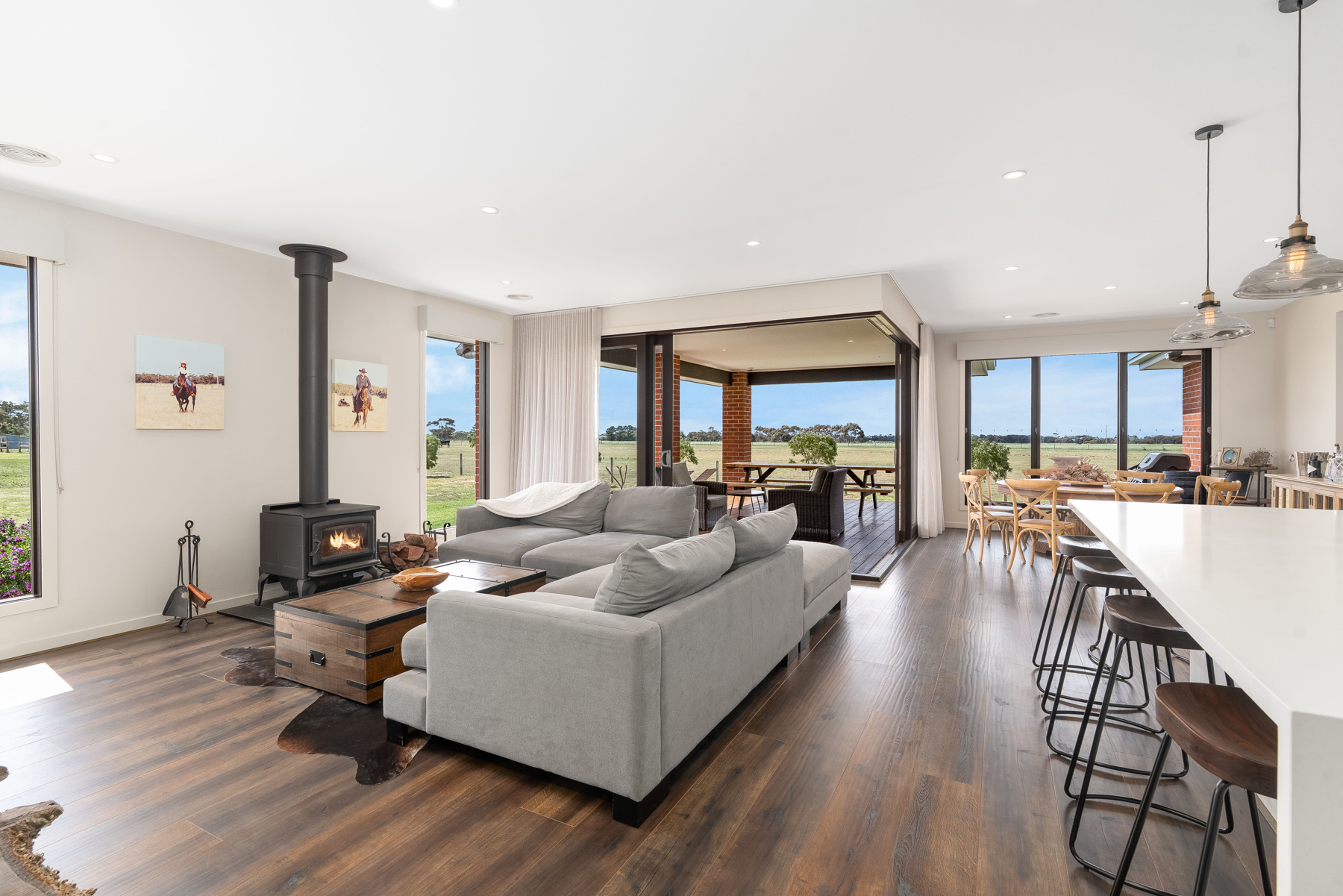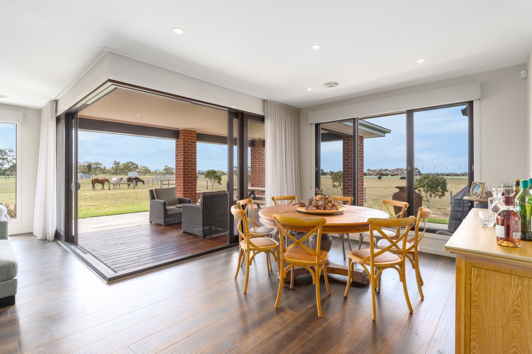 The heart of the home is the large open plan kitchen, meals and lounge area which enjoys a sunlit northern orientation, cosy wood fire for winter evenings, an adjoining undercover deck for entertaining and views over the surrounding paddocks. The chef's kitchen is stylishly appointed featuring Smeg appliances (gas stovetop, dual ovens) and a large butler's pantry with copious built-in-storage.
