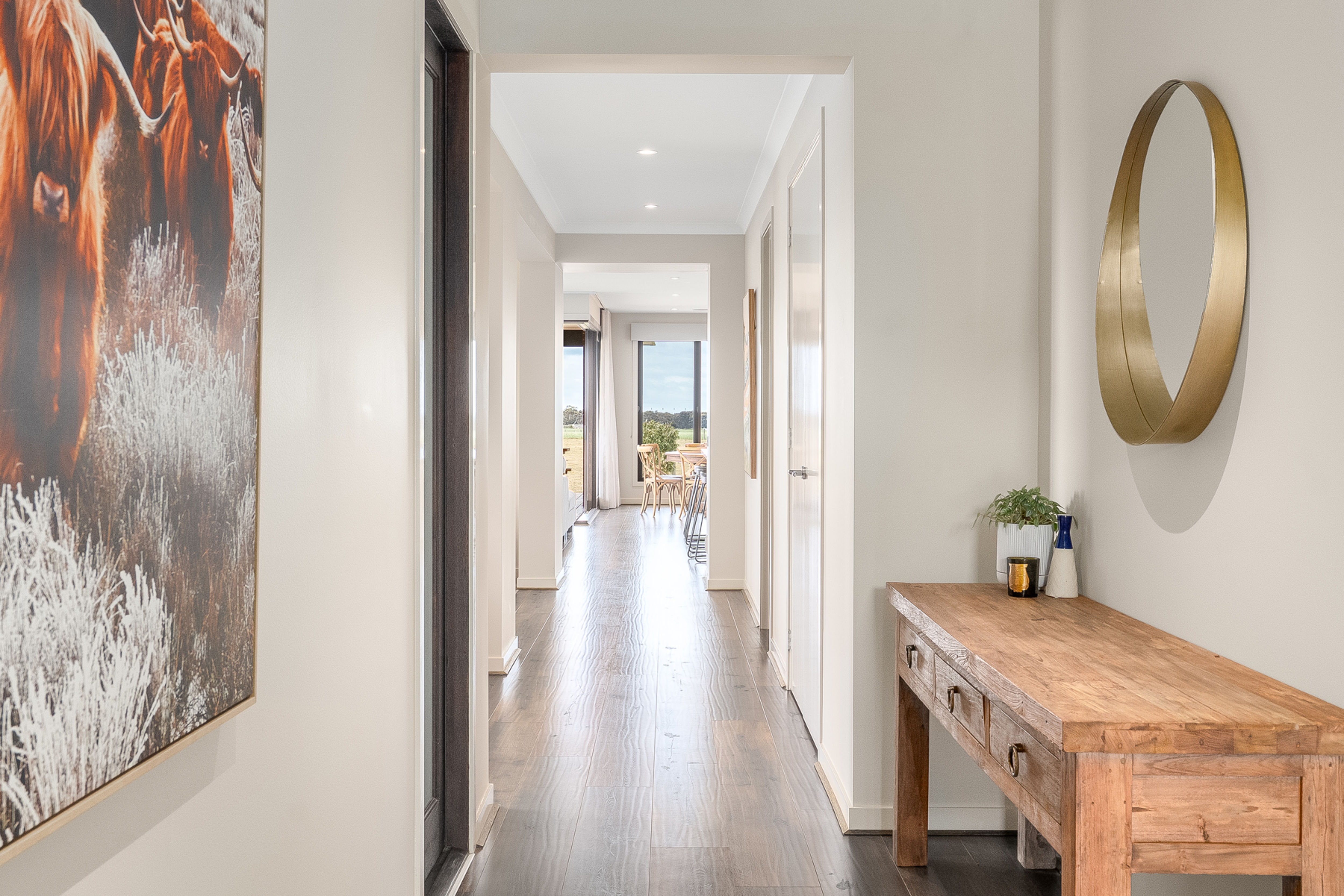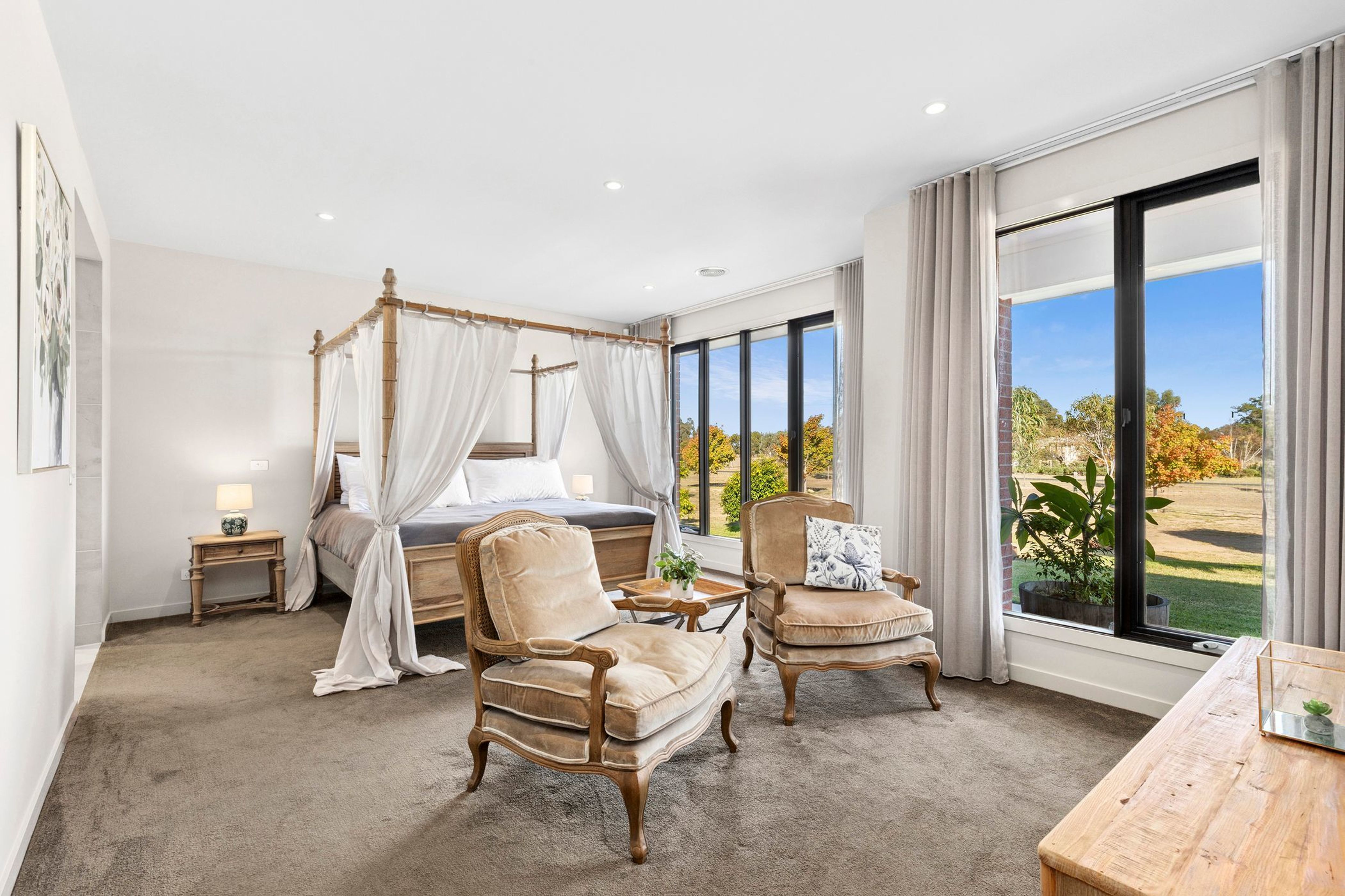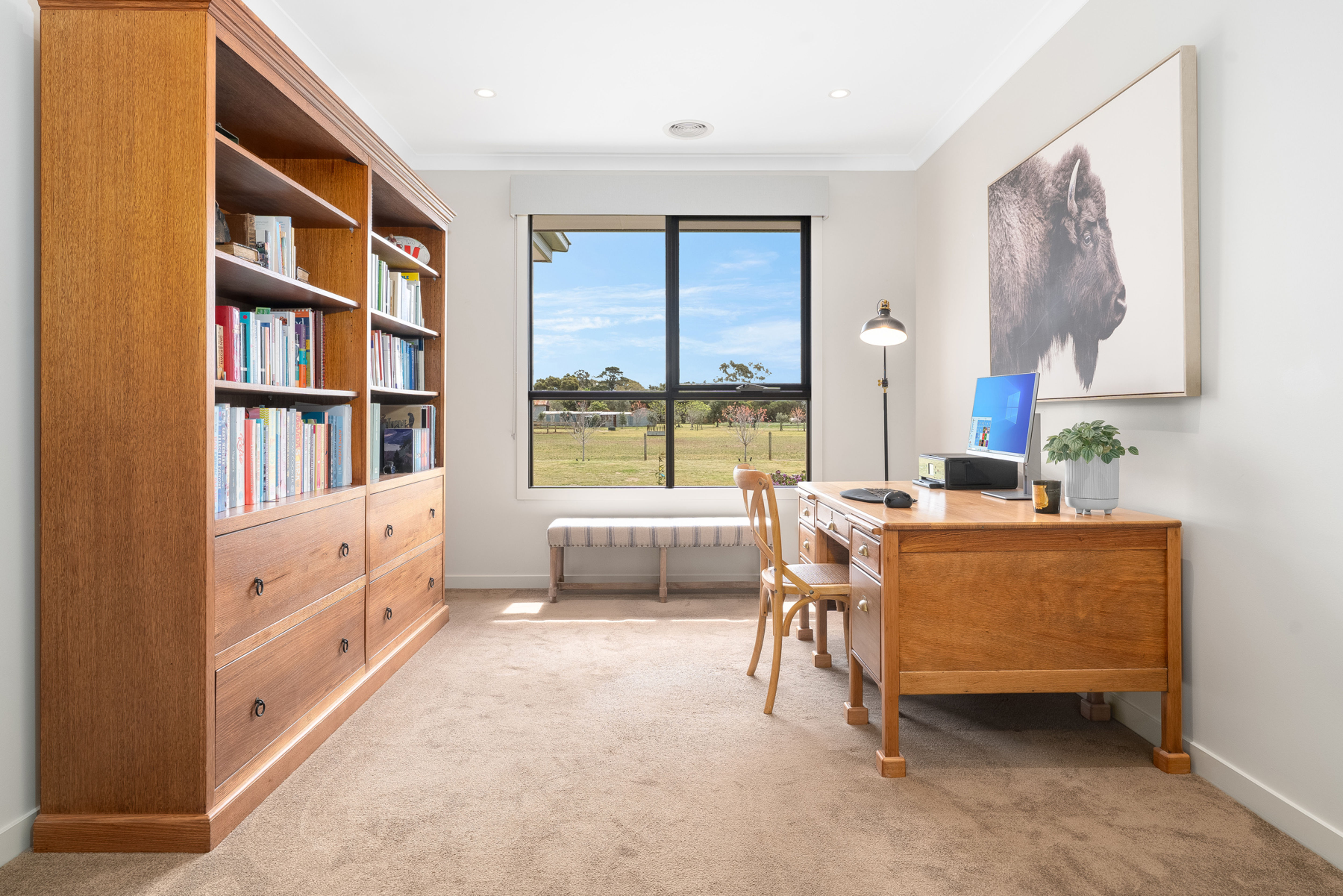 The heart of the home is the large open plan kitchen, meals and lounge area which enjoys a sunlit northern orientation, cosy wood fire for winter evenings, an adjoining undercover deck for entertaining and views over the surrounding paddocks. The chef's kitchen is stylishly appointed featuring Smeg appliances (gas stovetop, dual ovens) and a large butler's pantry with copious built-in-storage.