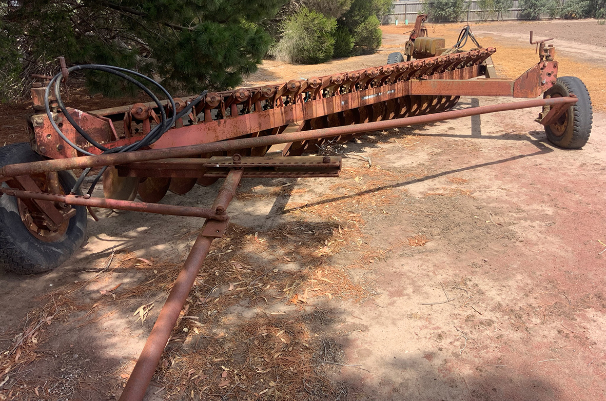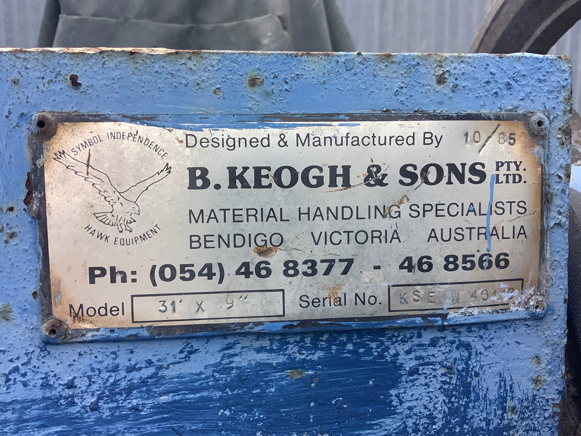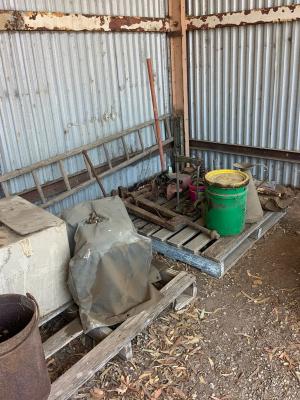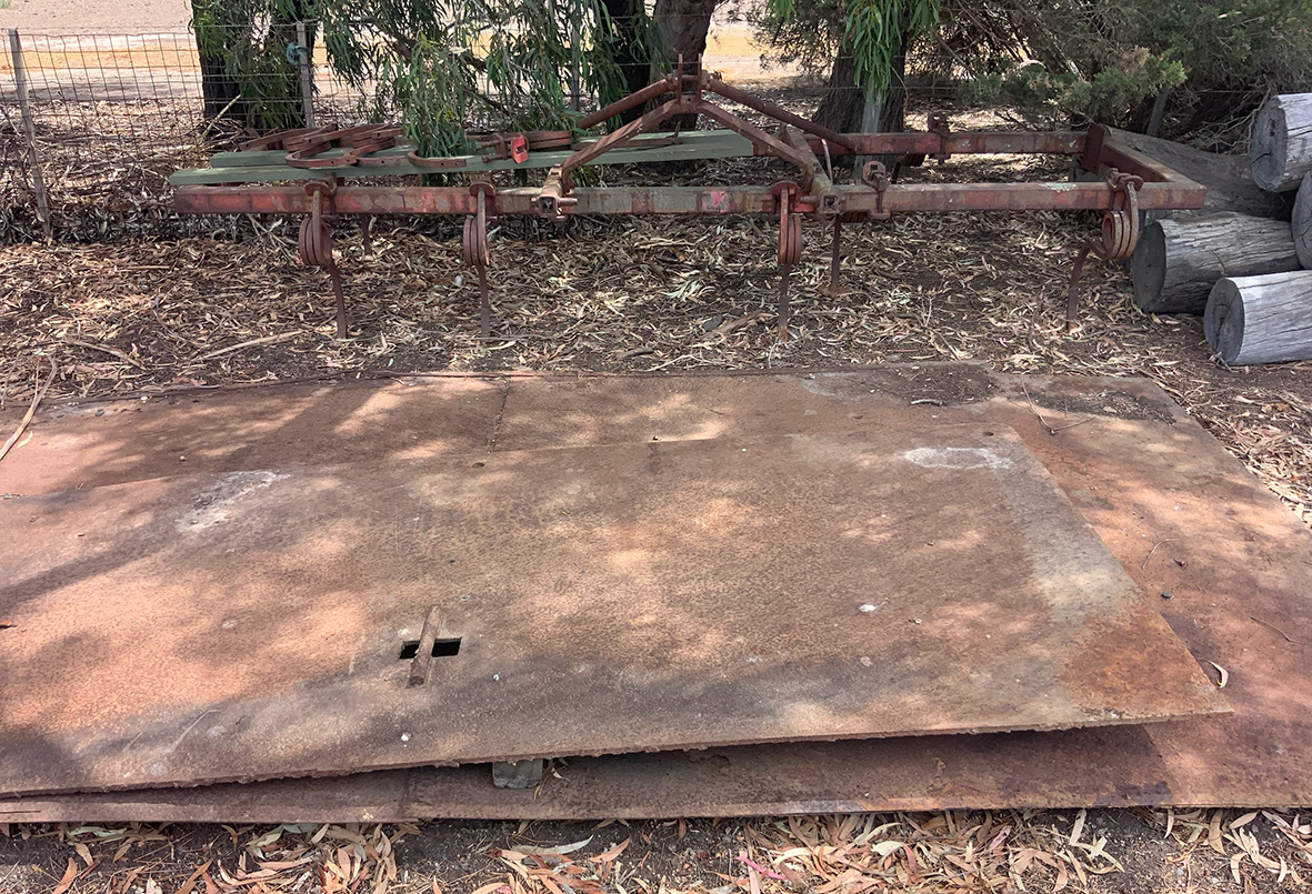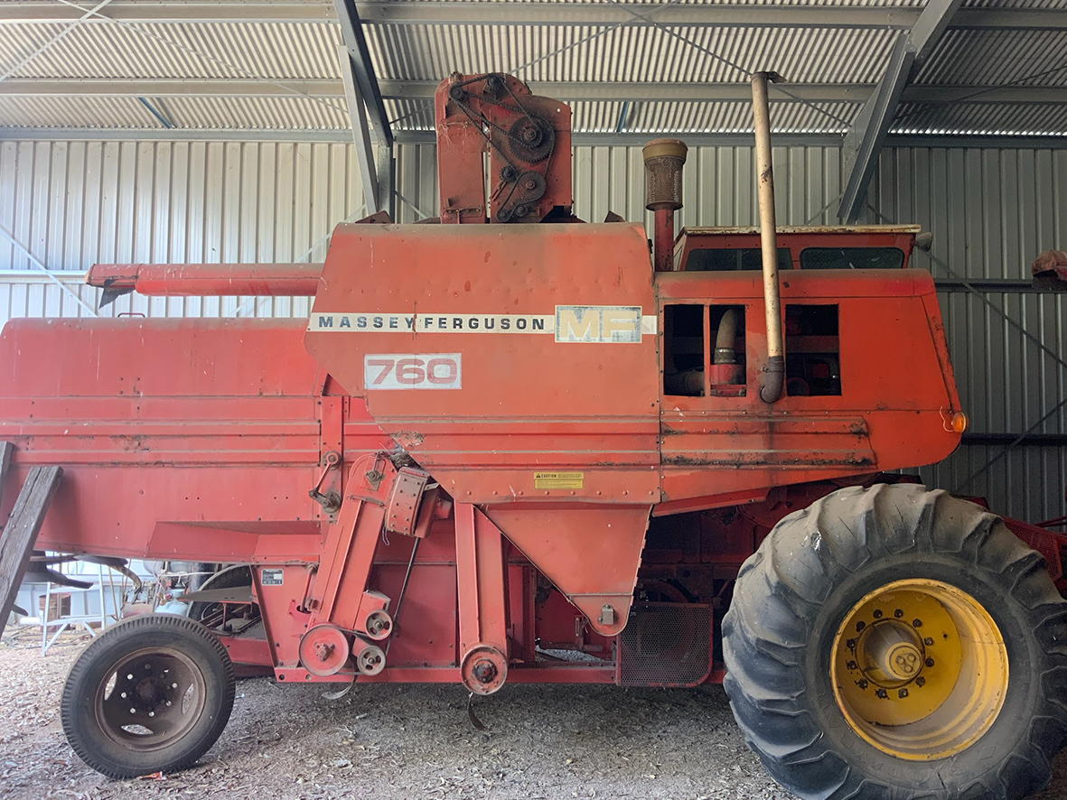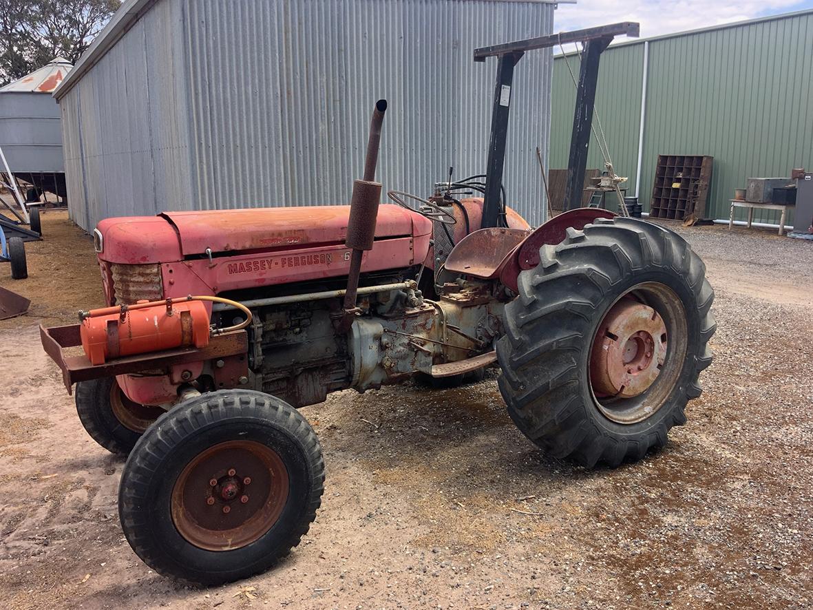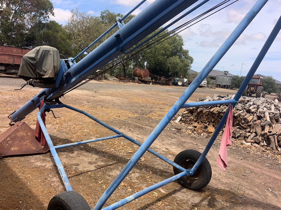 Massey Ferguson 9130 self-propelled spray unit with crop dividers, 375 hours (AS NEW); Agridry Predator 20 (AS NEW); Grainline GMP 836V 8inch auger (AS NEW); Keogh & Sons 9inch auger; 4inch pencil auger; Perten grain analyser (GWO); Massey Ferguson 760 header with 18ft rice front (GWO); Massey Ferguson 760 header with Hannaford; Massey Ferguson 24ft header, open front, back reel; Massey Ferguson Grey & Gold 35 tractor; Massey Ferguson 1135 tractor; Massey Ferguson 35 petrol tractor; Massey Ferguson 65 tractor; Ford 4000 tractor with FEL working); Ford truck with grain bin (working order); Ford truck D1212 with crane; old Ford truck; Massey Ferguson 128 small square baler; Massey Ferguson 56 combine; Massey Ferguson disc plough, 20 discs; John Shearer disc plough; John Shearer scarifier; Connor Shea super seeder with discs with baker points; 200 litre spray unit on trailer with 40ft boom; 500 litre spray tank and pump; 400 litre Silvan spray unit; Keogh field bin, approx 30 tonne; 2 old field bins; 13ft steel roller; 7ft grader blade; 5ft slasher; 3 hay rakes; steel water tank on trailer; APV Metarex all weather slug and snail bait or seed spreader; drain cleaner; Nuttall Herberts lathe; old dodge car; gantry; 2x Howard rotary hoes; 2x safes with combination locks; pot belly wooden heater; 13ft steel pipe; steel cabinet; carry all; old wooden rollers; antique farm implements for garden ornaments; quantity of steel; gates; wire; coffin troughs.