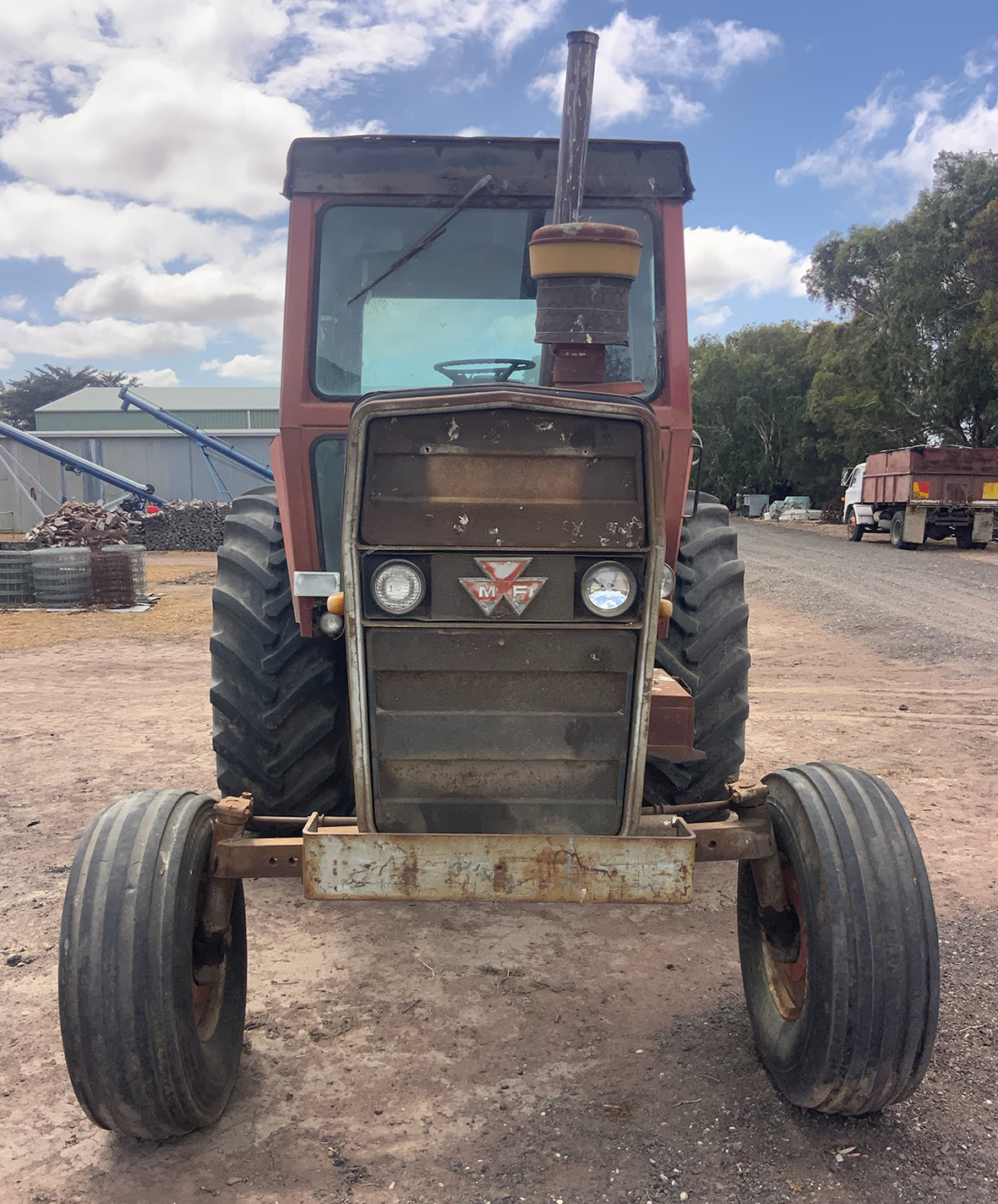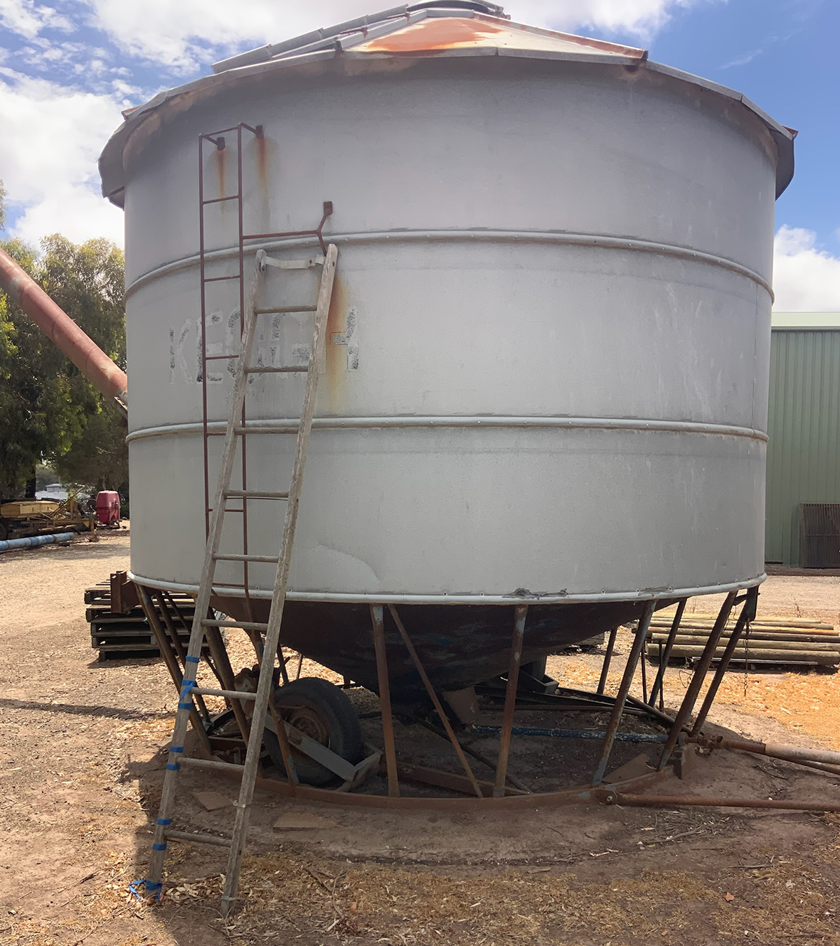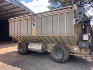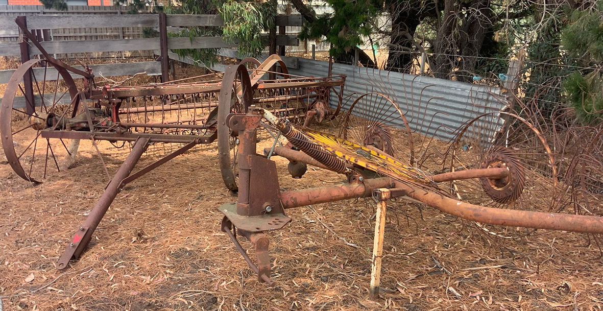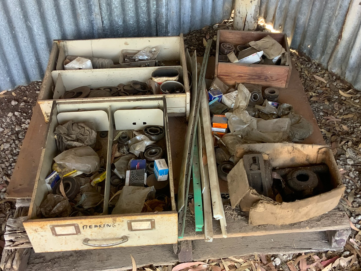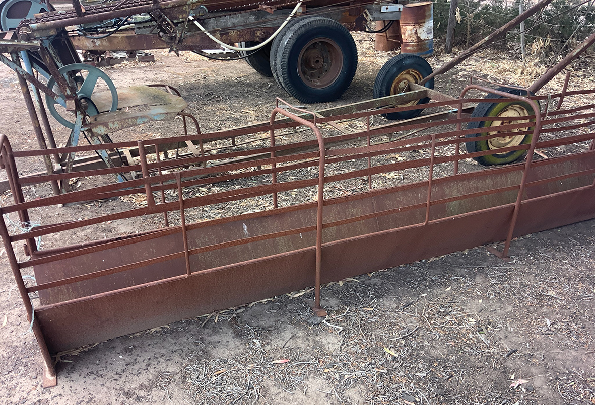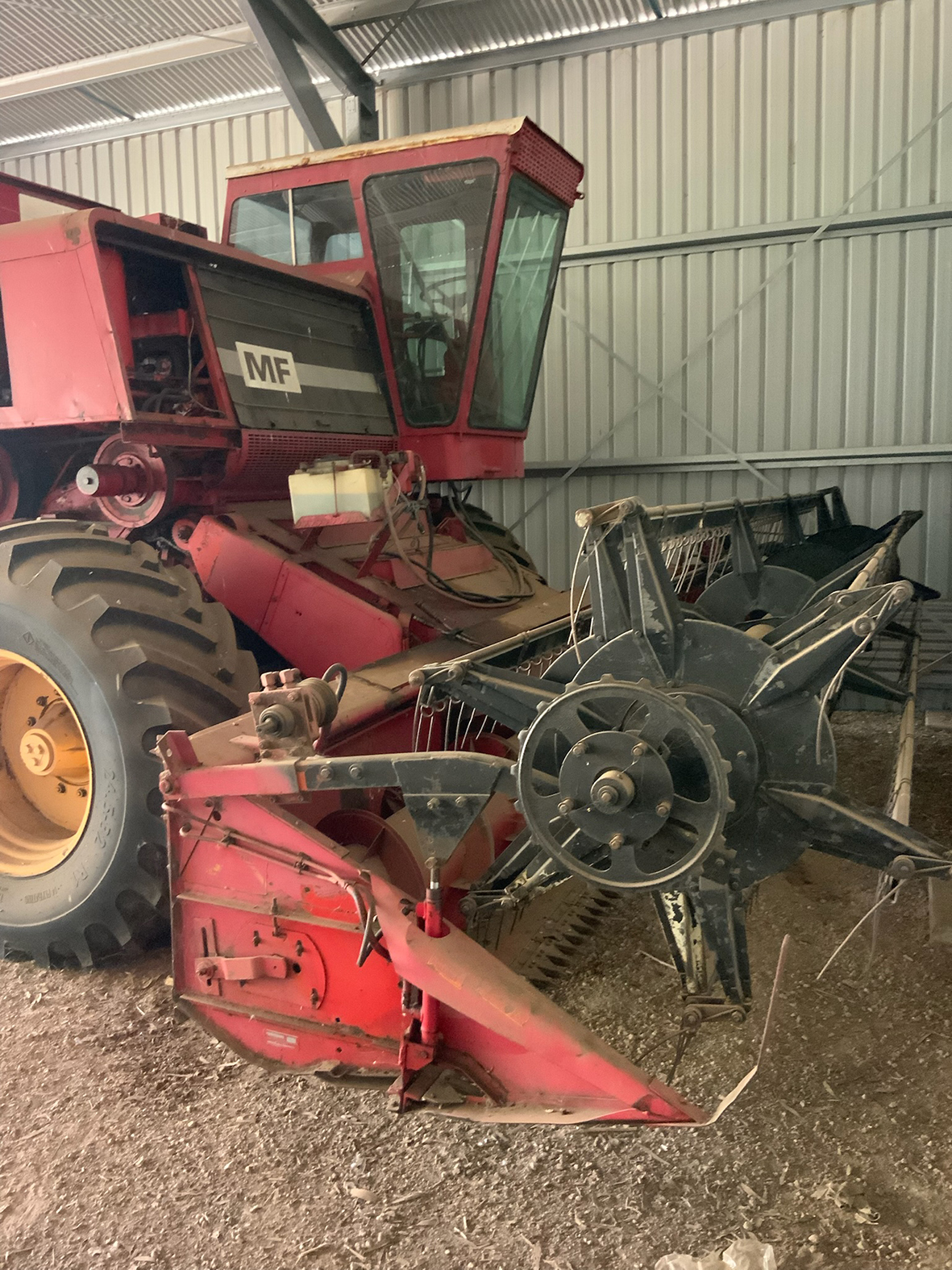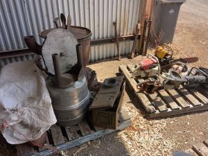 Massey Ferguson 9130 self-propelled spray unit with crop dividers, 375 hours (AS NEW); Agridry Predator 20 (AS NEW); Grainline GMP 836V 8inch auger (AS NEW); Keogh & Sons 9inch auger; 4inch pencil auger; Perten grain analyser (GWO); Massey Ferguson 760 header with 18ft rice front (GWO); Massey Ferguson 760 header with Hannaford; Massey Ferguson 24ft header, open front, back reel; Massey Ferguson Grey & Gold 35 tractor; Massey Ferguson 1135 tractor; Massey Ferguson 35 petrol tractor; Massey Ferguson 65 tractor; Ford 4000 tractor with FEL working); Ford truck with grain bin (working order); Ford truck D1212 with crane; old Ford truck; Massey Ferguson 128 small square baler; Massey Ferguson 56 combine; Massey Ferguson disc plough, 20 discs; John Shearer disc plough; John Shearer scarifier; Connor Shea super seeder with discs with baker points; 200 litre spray unit on trailer with 40ft boom; 500 litre spray tank and pump; 400 litre Silvan spray unit; Keogh field bin, approx 30 tonne; 2 old field bins; 13ft steel roller; 7ft grader blade; 5ft slasher; 3 hay rakes; steel water tank on trailer; APV Metarex all weather slug and snail bait or seed spreader; drain cleaner; Nuttall Herberts lathe; old dodge car; gantry; 2x Howard rotary hoes; 2x safes with combination locks; pot belly wooden heater; 13ft steel pipe; steel cabinet; carry all; old wooden rollers; antique farm implements for garden ornaments; quantity of steel; gates; wire; coffin troughs.