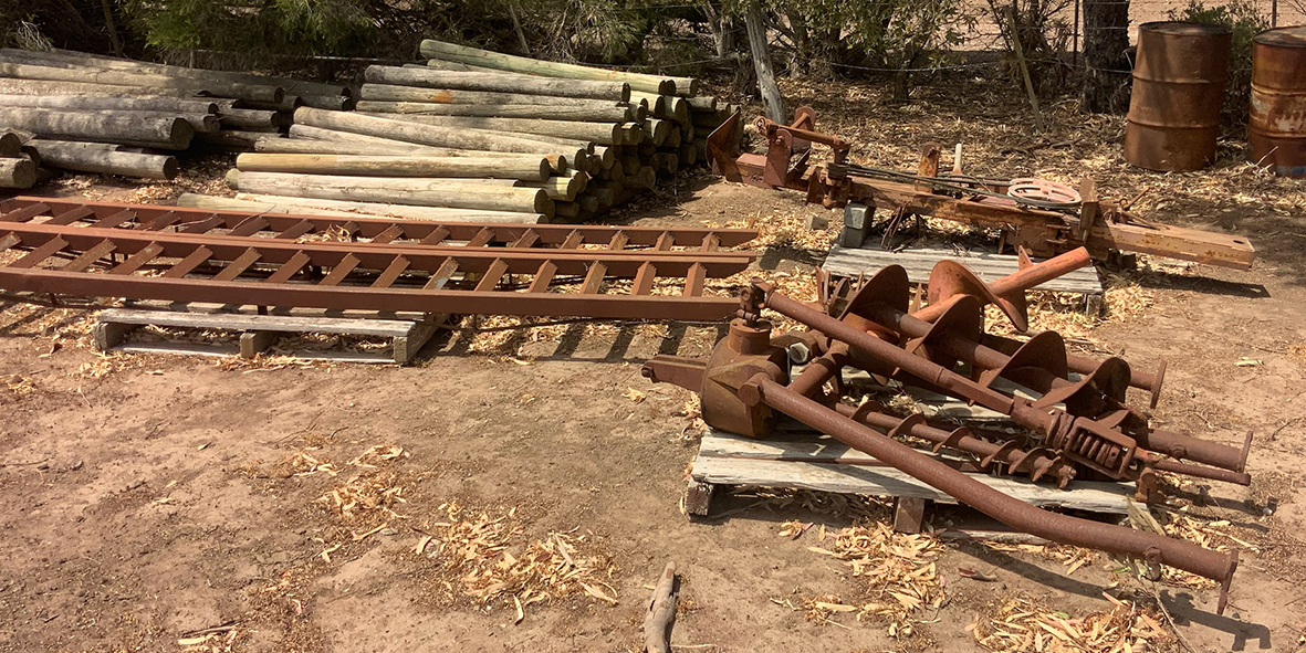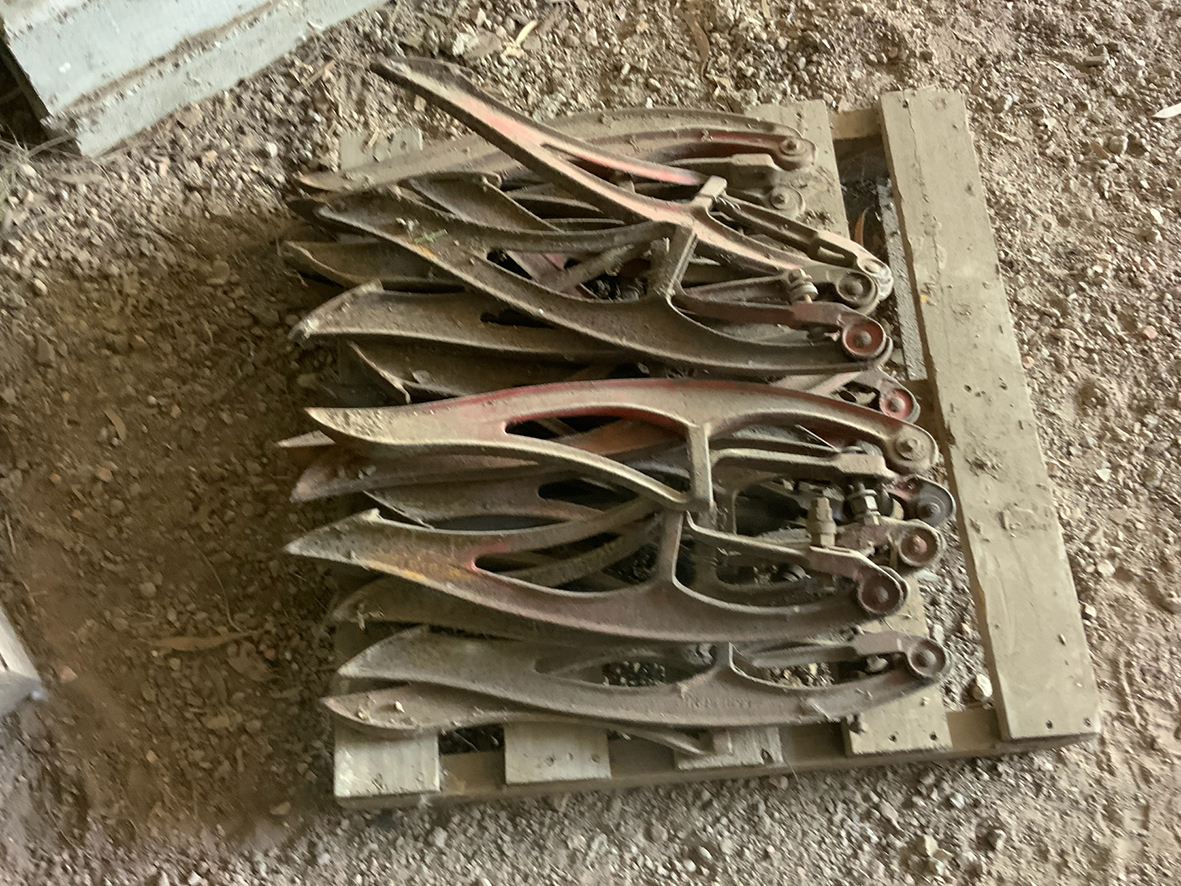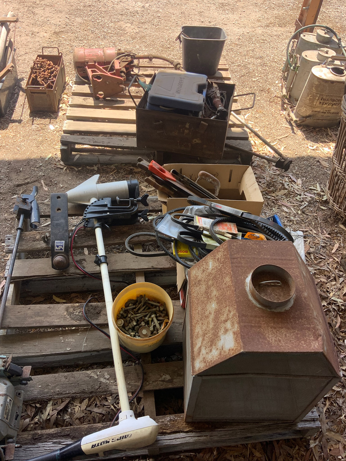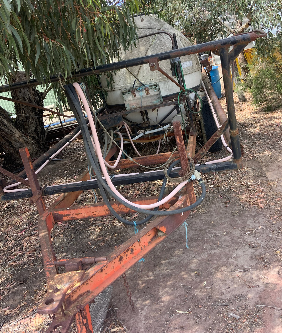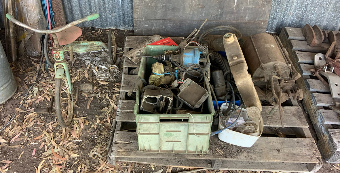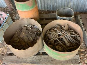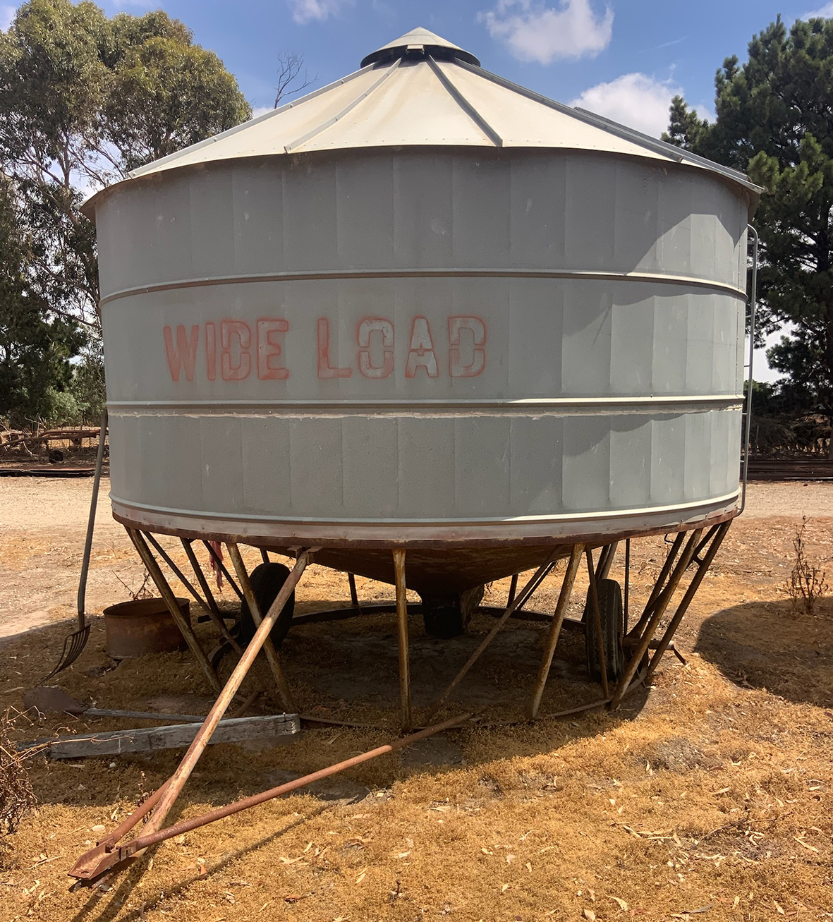Massey Ferguson 9130 self-propelled spray unit with crop dividers, 375 hours (AS NEW); Agridry Predator 20 (AS NEW); Grainline GMP 836V 8inch auger (AS NEW); Keogh & Sons 9inch auger; 4inch pencil auger; Perten grain analyser (GWO); Massey Ferguson 760 header with 18ft rice front (GWO); Massey Ferguson 760 header with Hannaford; Massey Ferguson 24ft header, open front, back reel; Massey Ferguson Grey & Gold 35 tractor; Massey Ferguson 1135 tractor; Massey Ferguson 35 petrol tractor; Massey Ferguson 65 tractor; Ford 4000 tractor with FEL working); Ford truck with grain bin (working order); Ford truck D1212 with crane; old Ford truck; Massey Ferguson 128 small square baler; Massey Ferguson 56 combine; Massey Ferguson disc plough, 20 discs; John Shearer disc plough; John Shearer scarifier; Connor Shea super seeder with discs with baker points; 200 litre spray unit on trailer with 40ft boom; 500 litre spray tank and pump; 400 litre Silvan spray unit; Keogh field bin, approx 30 tonne; 2 old field bins; 13ft steel roller; 7ft grader blade; 5ft slasher; 3 hay rakes; steel water tank on trailer; APV Metarex all weather slug and snail bait or seed spreader; drain cleaner; Nuttall Herberts lathe; old dodge car; gantry; 2x Howard rotary hoes; 2x safes with combination locks; pot belly wooden heater; 13ft steel pipe; steel cabinet; carry all; old wooden rollers; antique farm implements for garden ornaments; quantity of steel; gates; wire; coffin troughs.