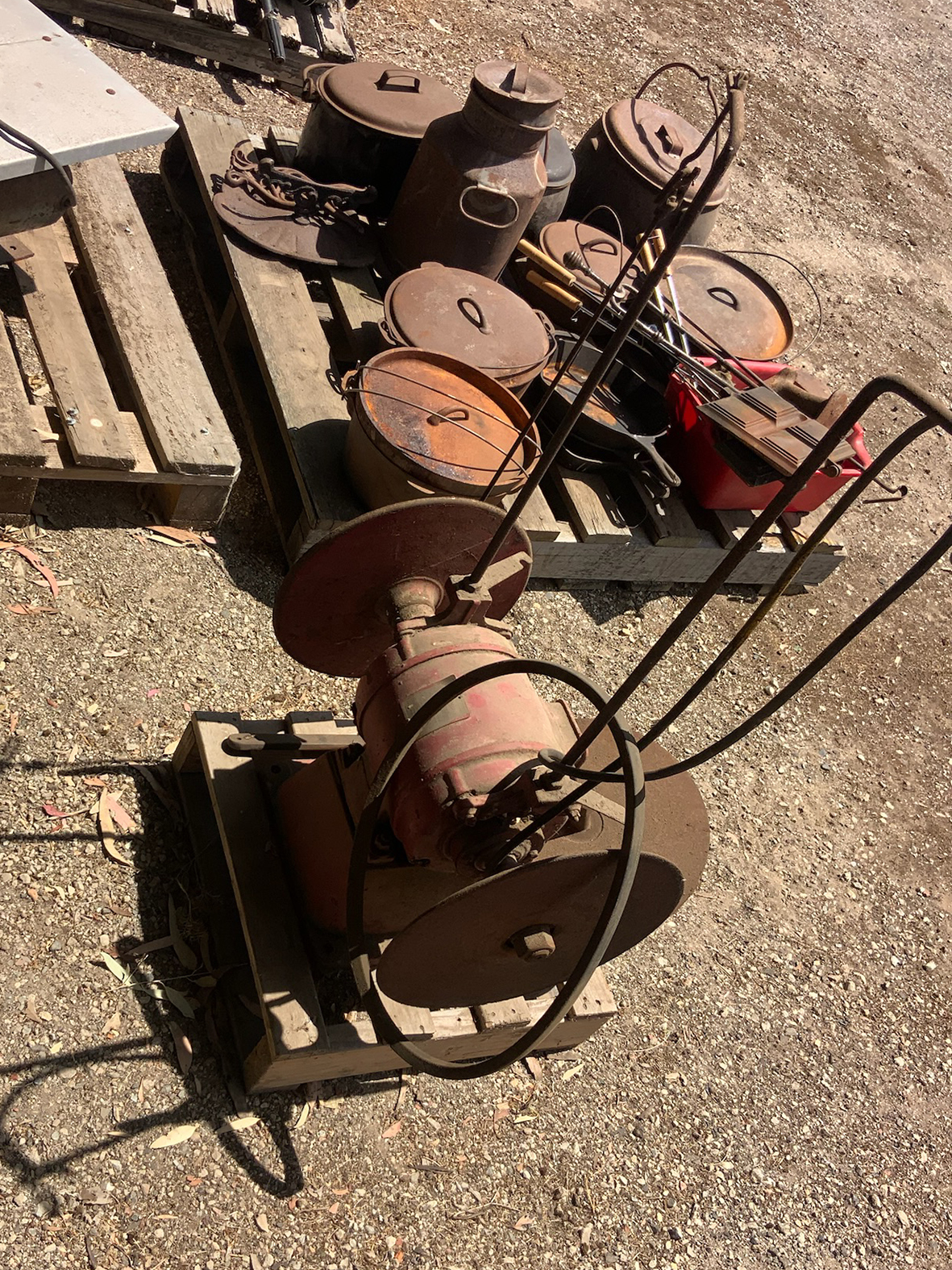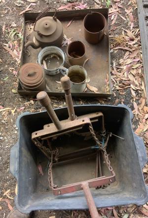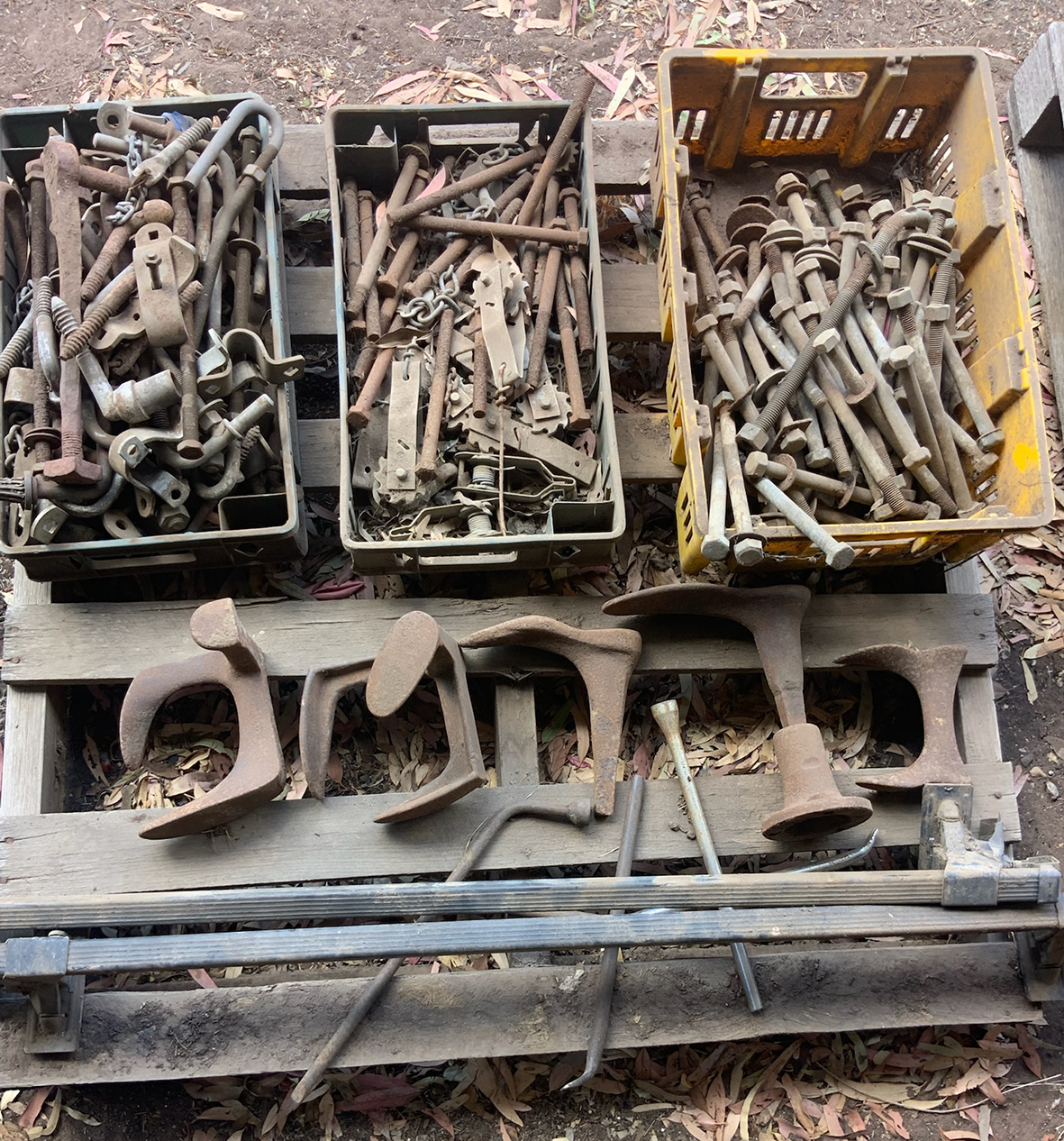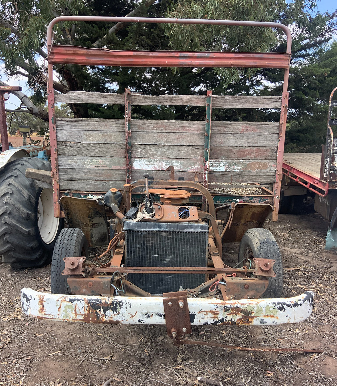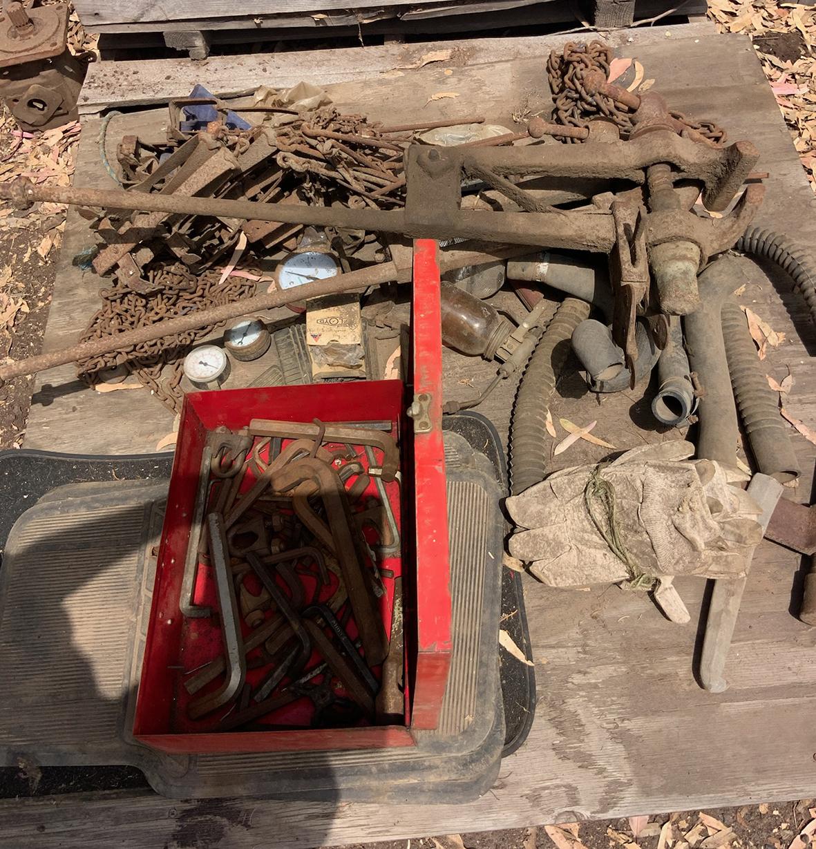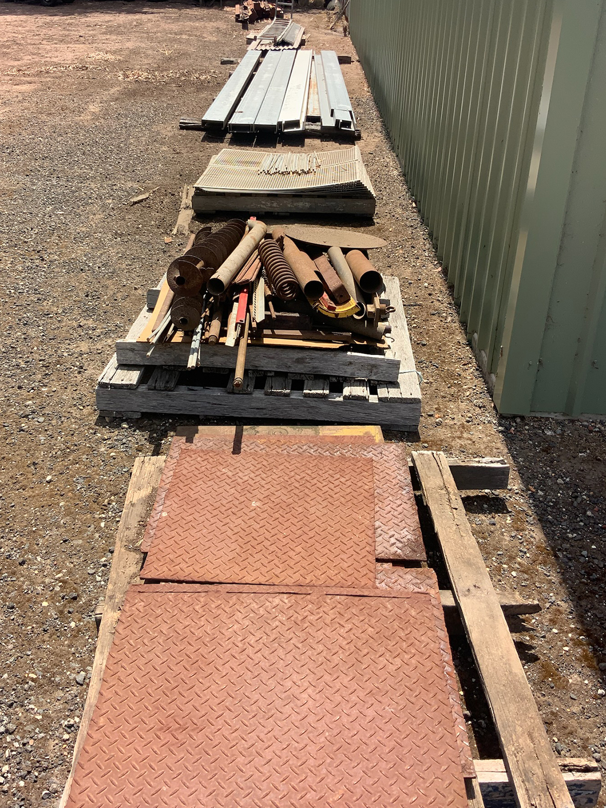 Massey Ferguson 9130 self-propelled spray unit with crop dividers, 375 hours (AS NEW); Agridry Predator 20 (AS NEW); Grainline GMP 836V 8inch auger (AS NEW); Keogh & Sons 9inch auger; 4inch pencil auger; Perten grain analyser (GWO); Massey Ferguson 760 header with 18ft rice front (GWO); Massey Ferguson 760 header with Hannaford; Massey Ferguson 24ft header, open front, back reel; Massey Ferguson Grey & Gold 35 tractor; Massey Ferguson 1135 tractor; Massey Ferguson 35 petrol tractor; Massey Ferguson 65 tractor; Ford 4000 tractor with FEL working); Ford truck with grain bin (working order); Ford truck D1212 with crane; old Ford truck; Massey Ferguson 128 small square baler; Massey Ferguson 56 combine; Massey Ferguson disc plough, 20 discs; John Shearer disc plough; John Shearer scarifier; Connor Shea super seeder with discs with baker points; 200 litre spray unit on trailer with 40ft boom; 500 litre spray tank and pump; 400 litre Silvan spray unit; Keogh field bin, approx 30 tonne; 2 old field bins; 13ft steel roller; 7ft grader blade; 5ft slasher; 3 hay rakes; steel water tank on trailer; APV Metarex all weather slug and snail bait or seed spreader; drain cleaner; Nuttall Herberts lathe; old dodge car; gantry; 2x Howard rotary hoes; 2x safes with combination locks; pot belly wooden heater; 13ft steel pipe; steel cabinet; carry all; old wooden rollers; antique farm implements for garden ornaments; quantity of steel; gates; wire; coffin troughs.