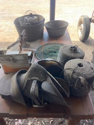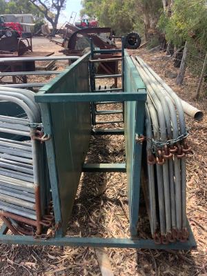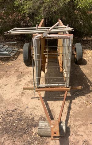 Lyco Maxitech 240 volt wool press (GWO); portable sheep yards; doubleended grinder; old scales with weights; wooded square wool table (VGO); 4x lamb marking cradles.