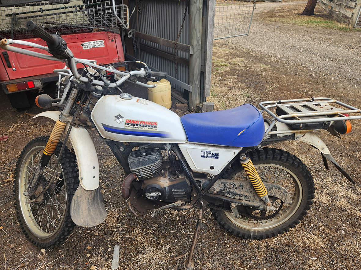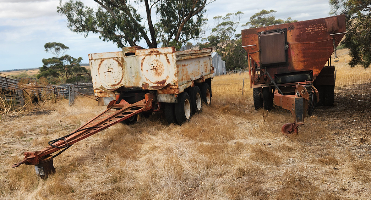 Tractor; Suzuki Ute 113,000km (1991 model); Suzuki 125 2-wheel Motorbike (goer), Toyota Dyna Truck (not going); McCormack-Deering 16 run combine;