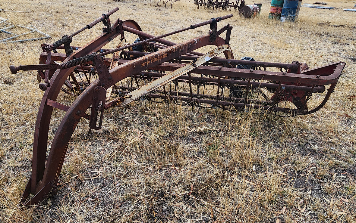 hay rake; DB Case 5ftx4ft slasher; NH H/Liner 68 baler; Massey Ferguson 532 3PL