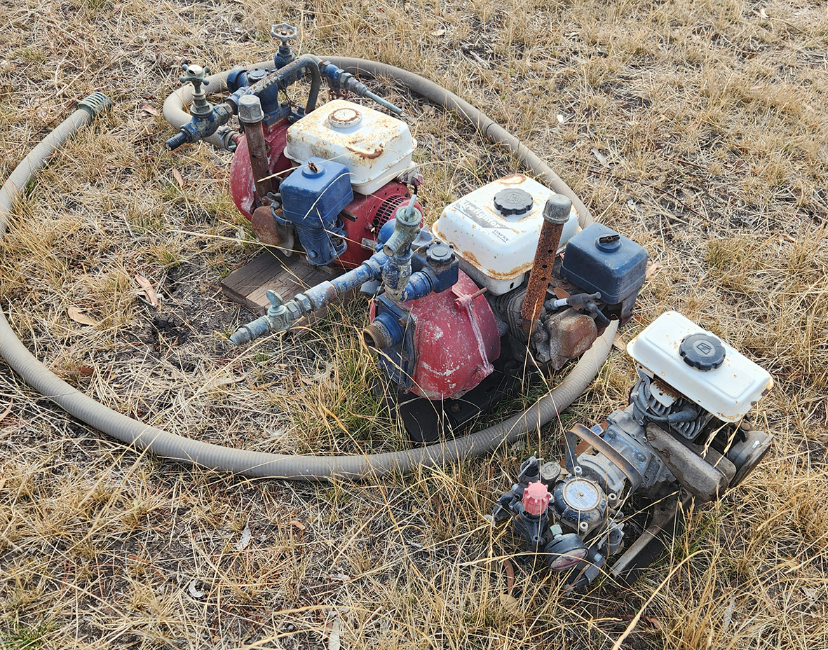 pumps; mill head and stand; manual cement mixer; OH fuel tank; 1000ltr fire