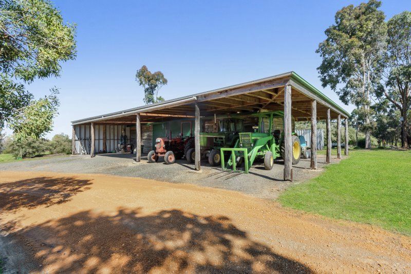 Shedding includes a redgum slab hut style machinery shed, complete with skillion providing ample storage for machinery and multiple vehicles. An alternate use could be for horse stables or indoor recreation. A separate large hay shed provides sufficient storage for 450 large square bales.