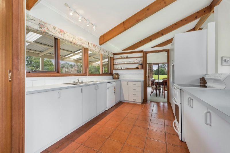 The immaculately maintained family home includes four bedrooms, two bathrooms, study, a spacious open living and dining area complete with external deck and a large office with separate entry. Water views looking across to Mt Moriac are stunning and the garden, orchard and sizable vegetable garden complete the country setting.