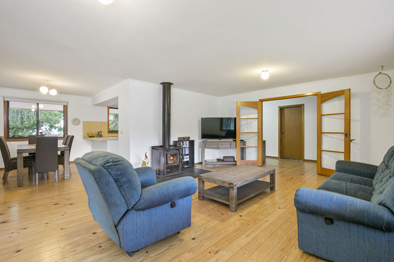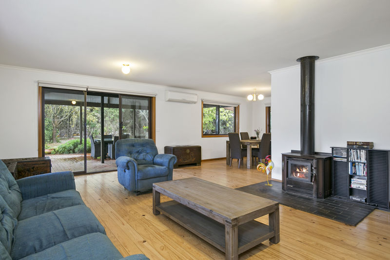 The three bedroom home with solar electricity is well-presented, and provides a mix of indoor and outdoor living areas. The lounge room features reverse cycle heating and cooling, timber floors and a wood fire creating a sense of warmth inside, while outside there are opportunities to entertain on the covered deck.