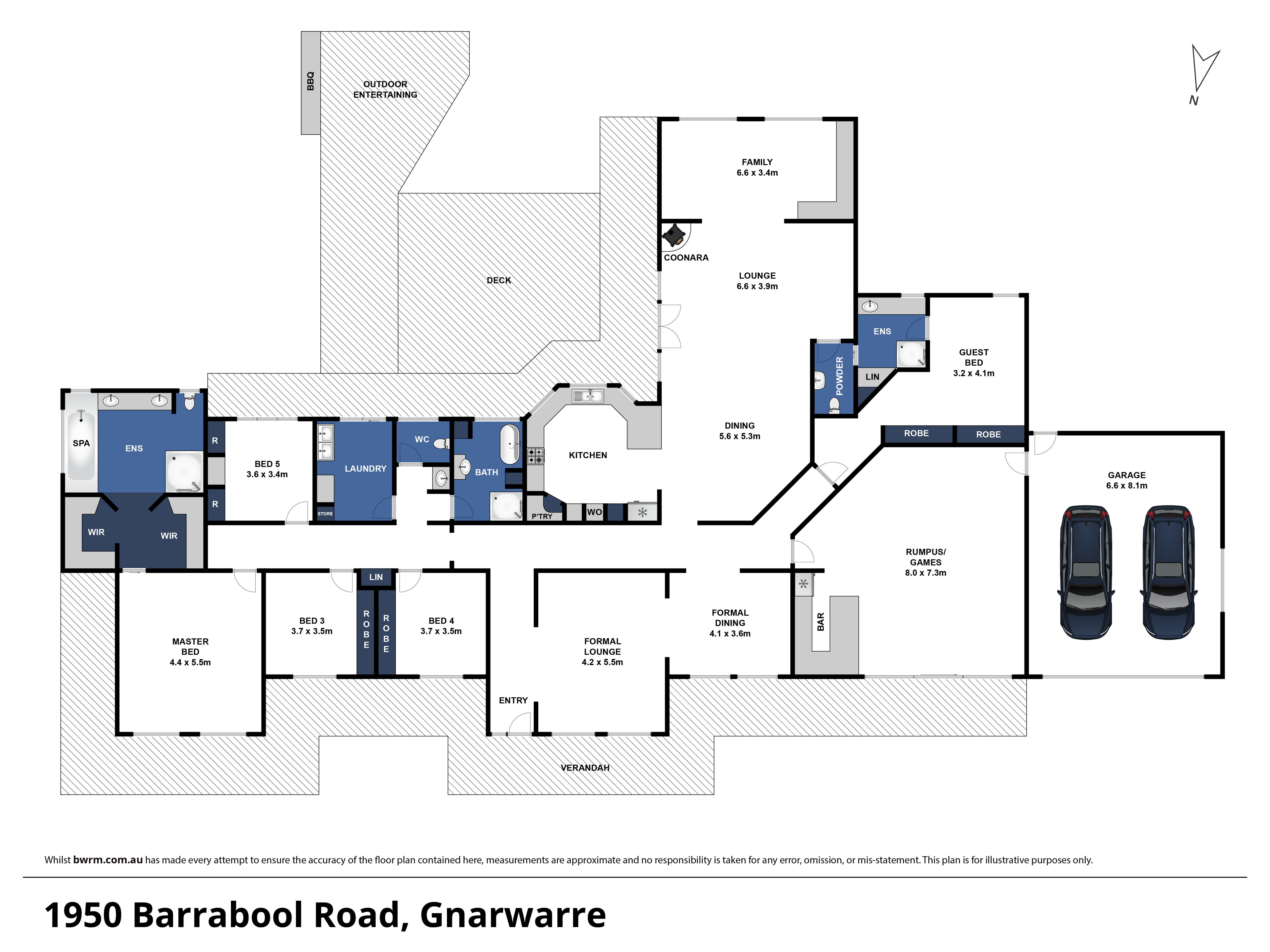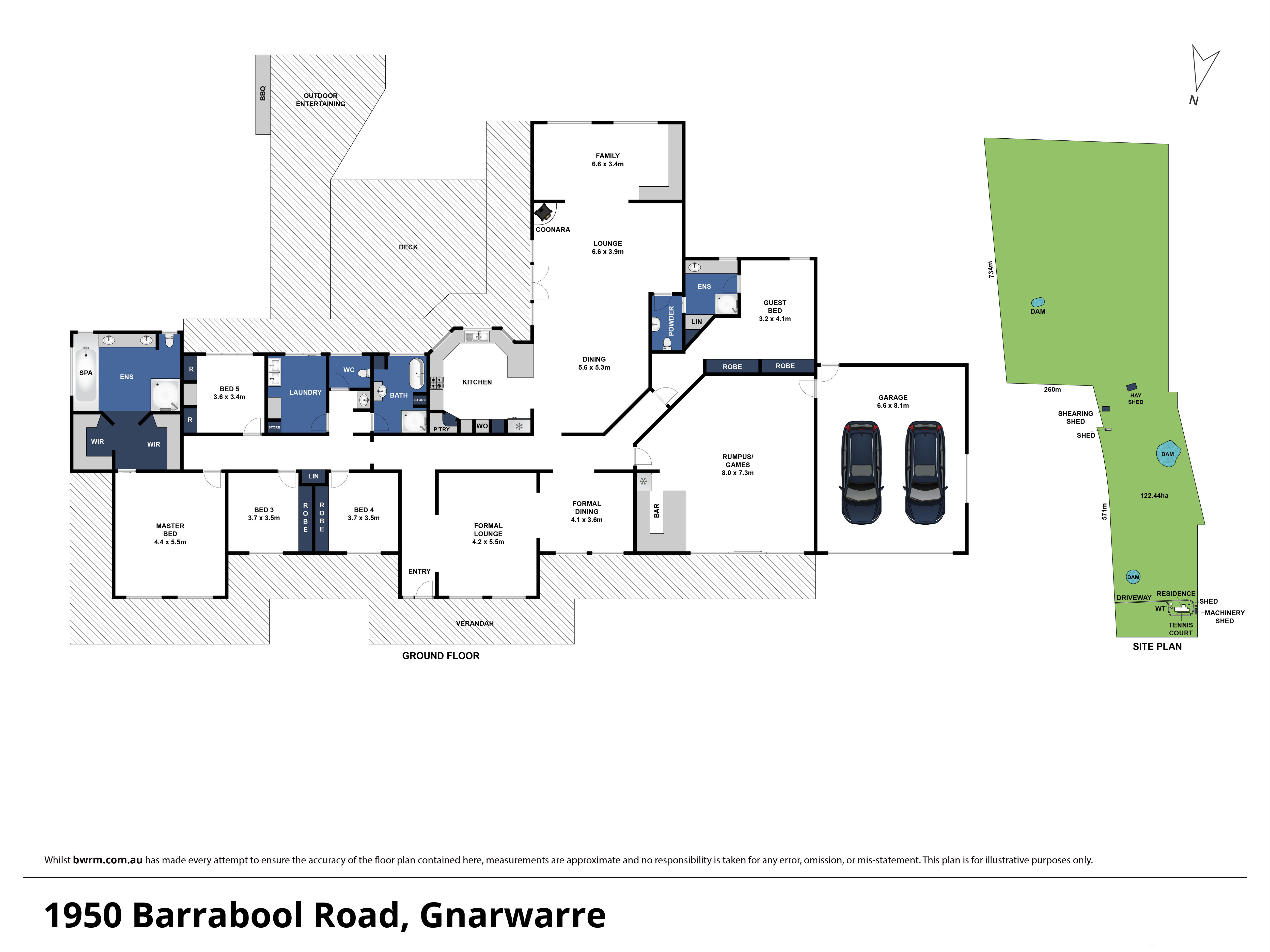 The substantial family residence features a large impressive and spacious open plan living/dining/kitchen with wood fire, formal lounge and dining, family room and rumpus room. There are 5 generous sized bedrooms including Master with walk-in-robe and spacious ensuite with spa bath, guest bedroom with ensuite, central bathroom, laundry and double remote garage. Outside there is a full size tennis court, bbq entertaining area and deck.