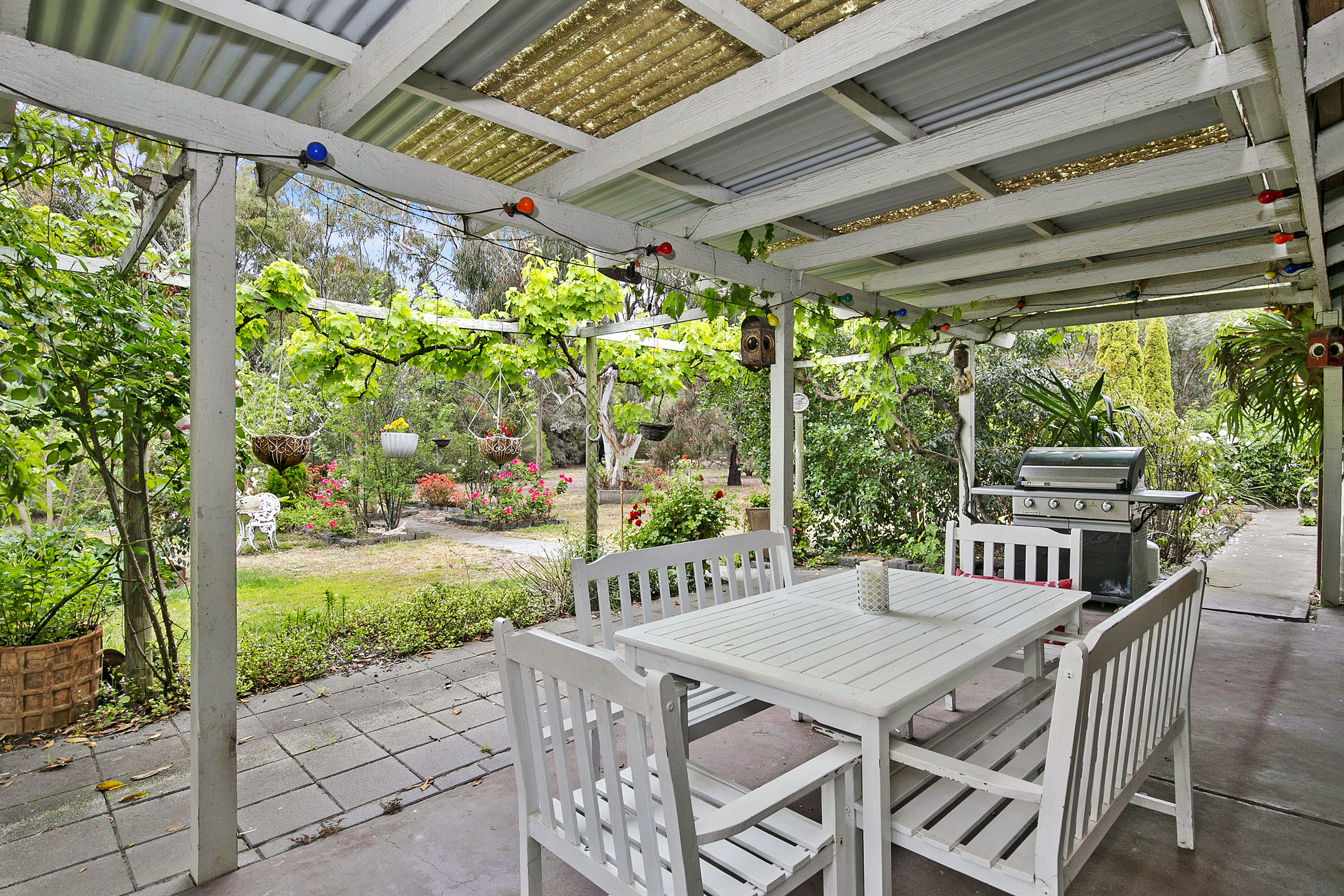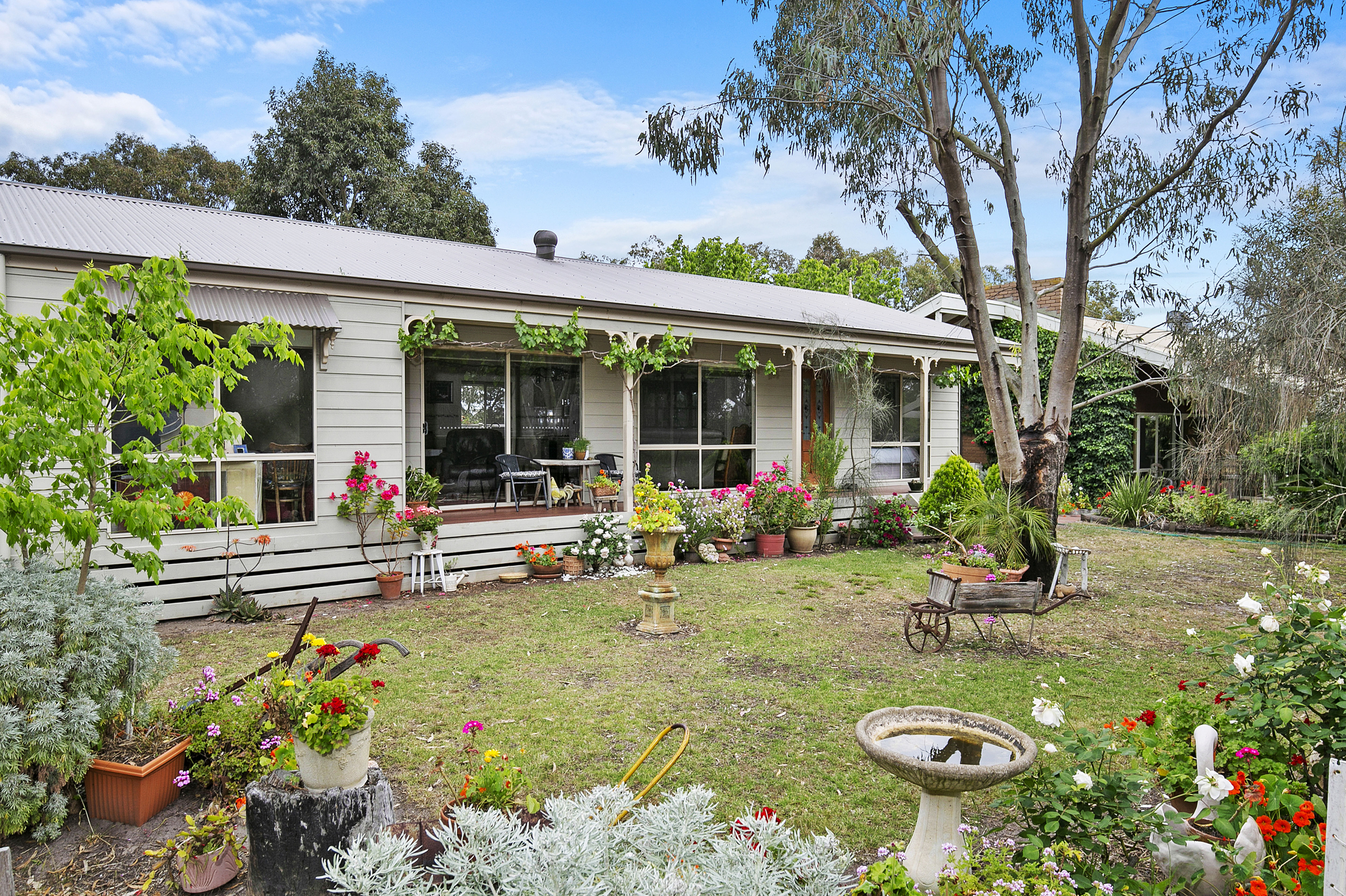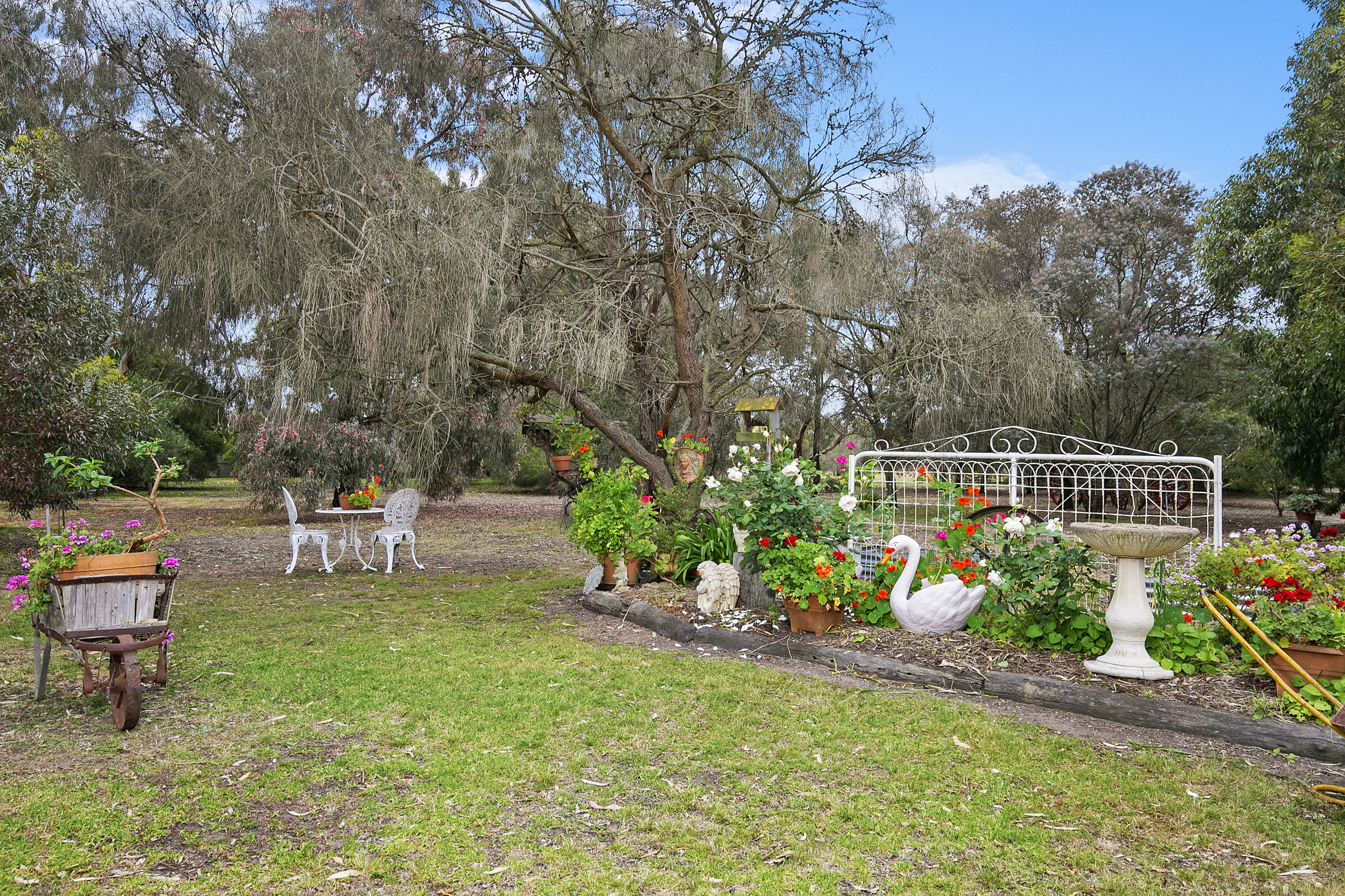 Surrounded by lovely manicured gardens the property is connected to town water, mains gas and is divided into four main paddocks with 24.5m x 9.9m machinery shed, horse stables, stock yards, chook shed and pigeon coup.