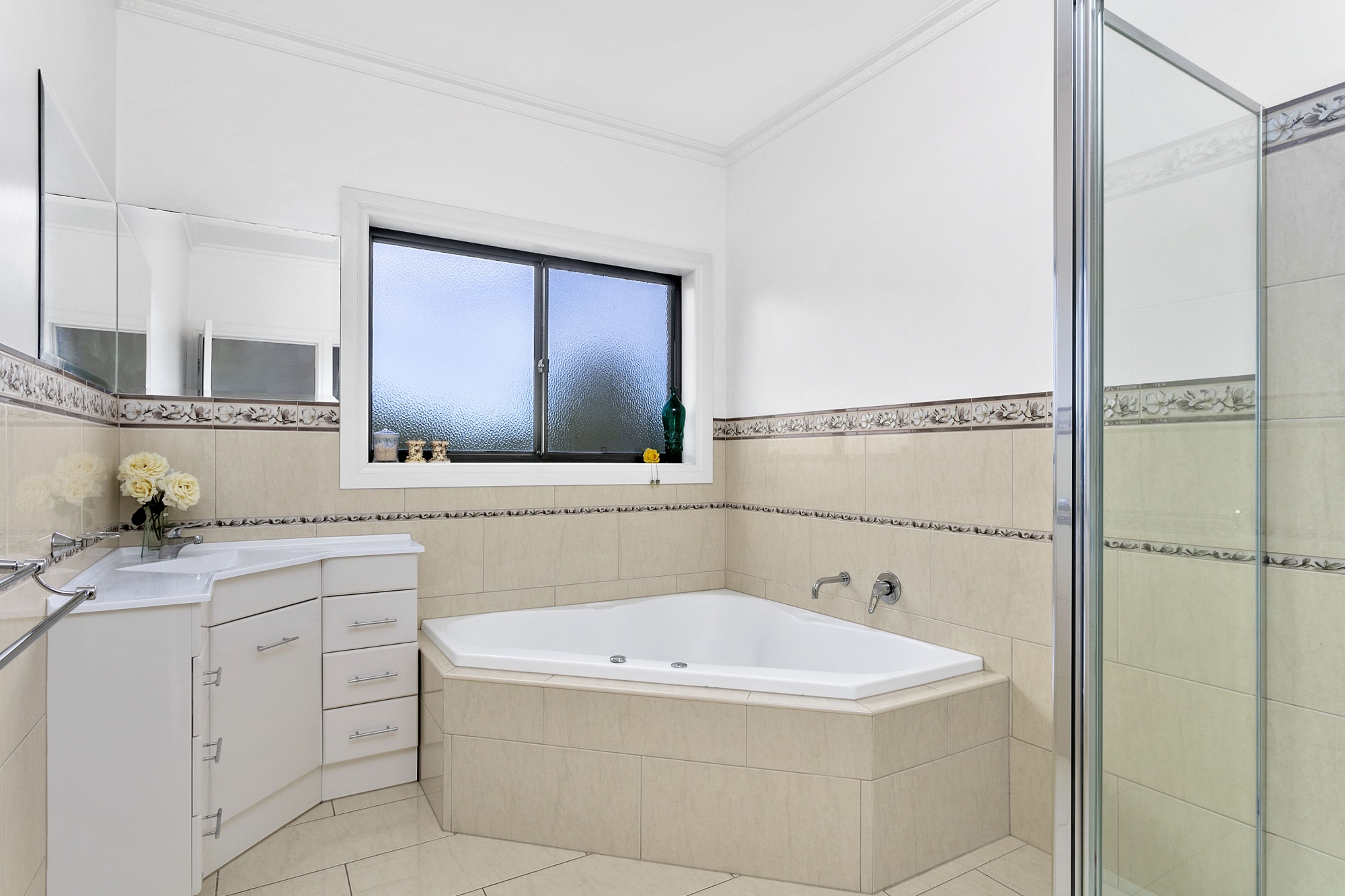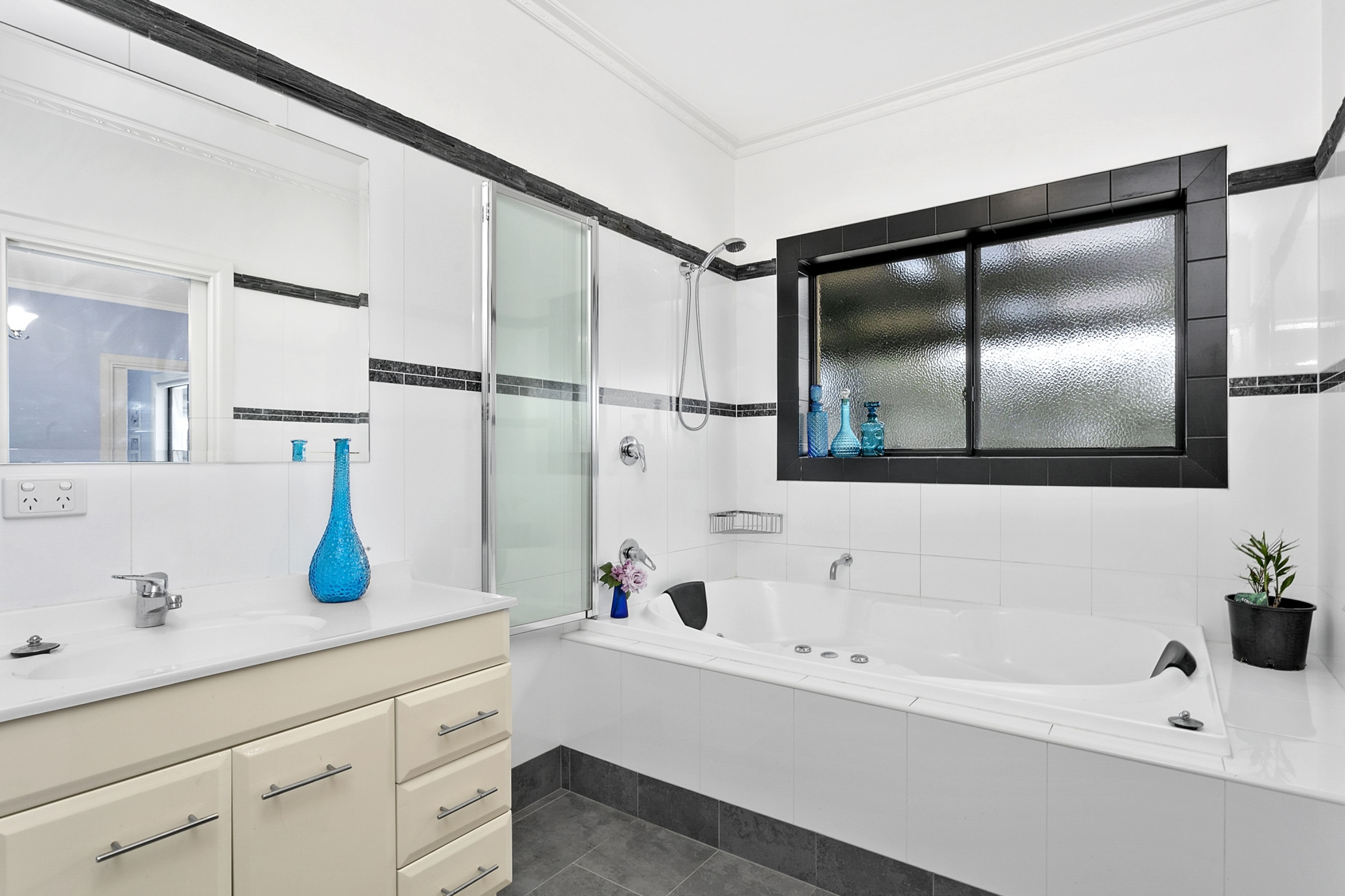 Formal living with stunning central stone fireplace also shares the open plan kitchen and meals area. Double glazing and split system heating and cooling ensure the home remains comfortable year round. The generous sized bedrooms have BIR, the master with WIR ensuite (spa) and separate toilet. The main bathroom also features a spa and separate toilet. A huge laundry also provides extensive storage space.