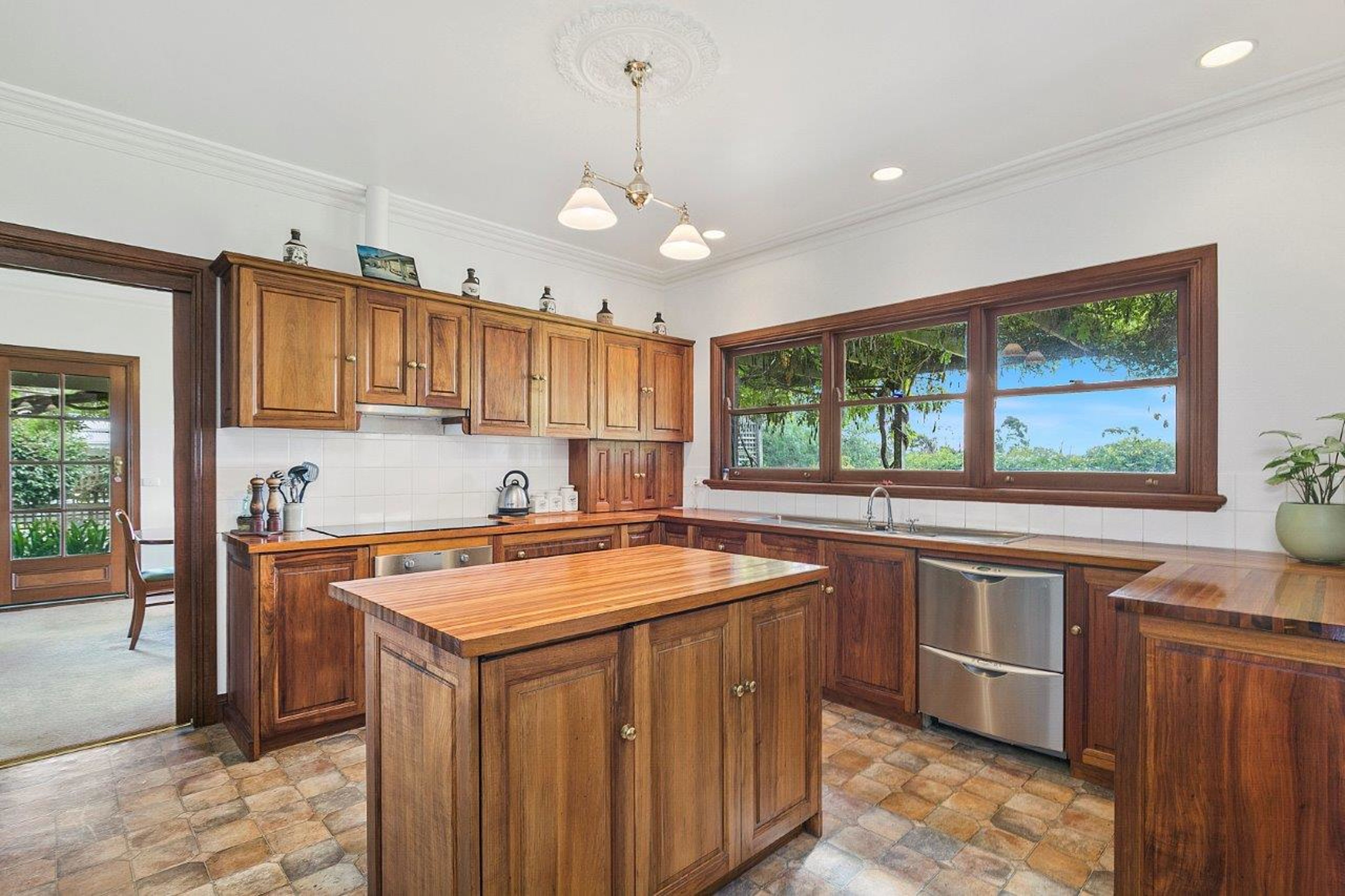 Blackwood timber country style kitchen, with quality appliances and walk-in pantry, adjoins a cosy family room with wood fire. Separate formal dining room, a formal lounge room with an open fire place allowing family members to enjoy their own space.