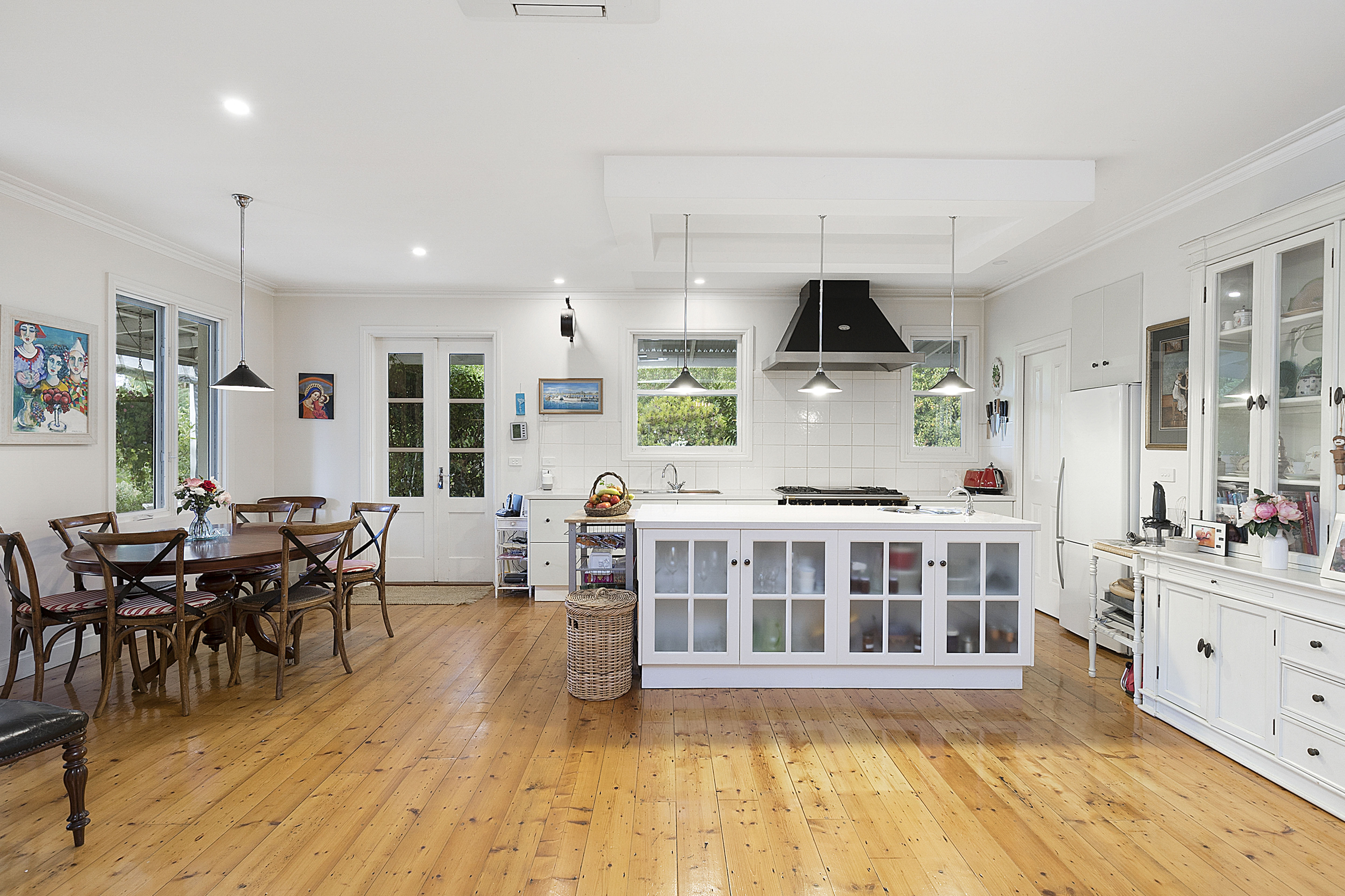 The modern architect designed, and custom-built home is the centre point of the property, surrounded by low maintenance gardens. Reclaimed Baltic pine floorboards flow elegantly throughout the open plan kitchen, dining and living areas creating a sense of charm that has been thoughtfully enhanced with neutral colour tones and exceptional quality fittings throughout, including double glazed windows and a centrepiece Lacanche 5 burner French range.