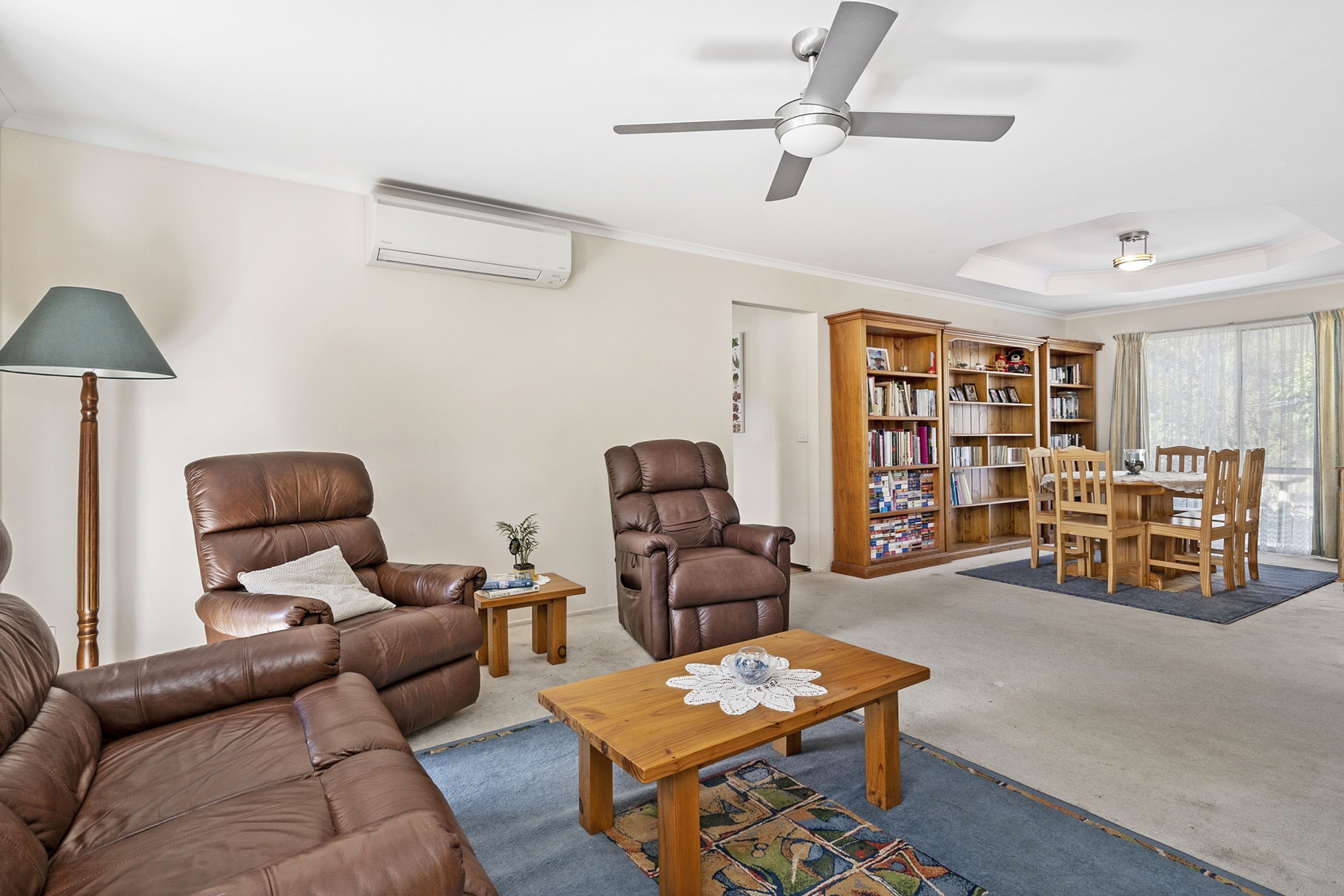 The brick veneer home with solar electricity comprises four bedrooms, master with walk in robe and ensuite, open plan living and dining with split system, kitchen with double oven, induction hot plates and dishwasher, formal lounge and dining also with split system, study, central bathroom and laundry.