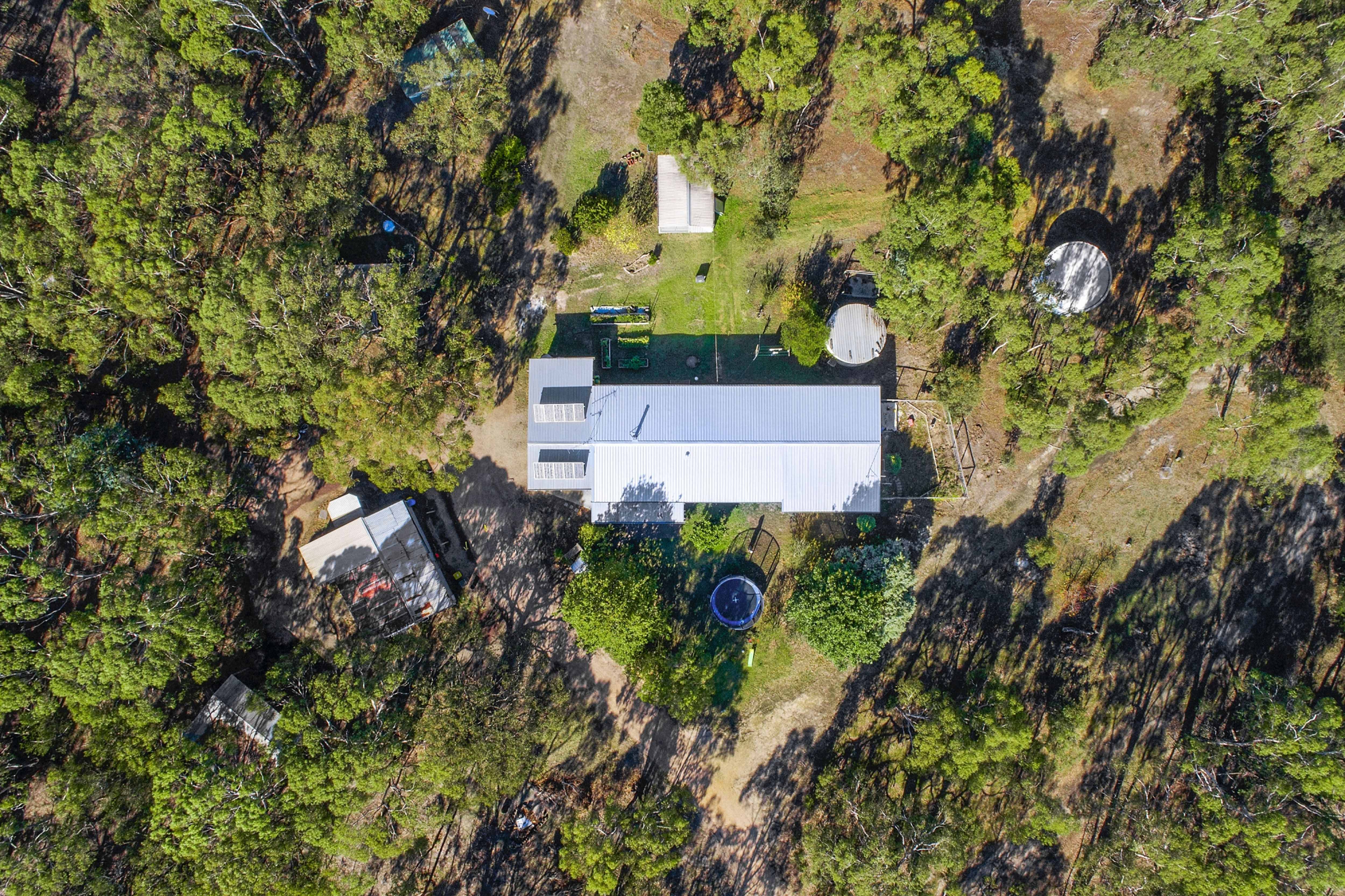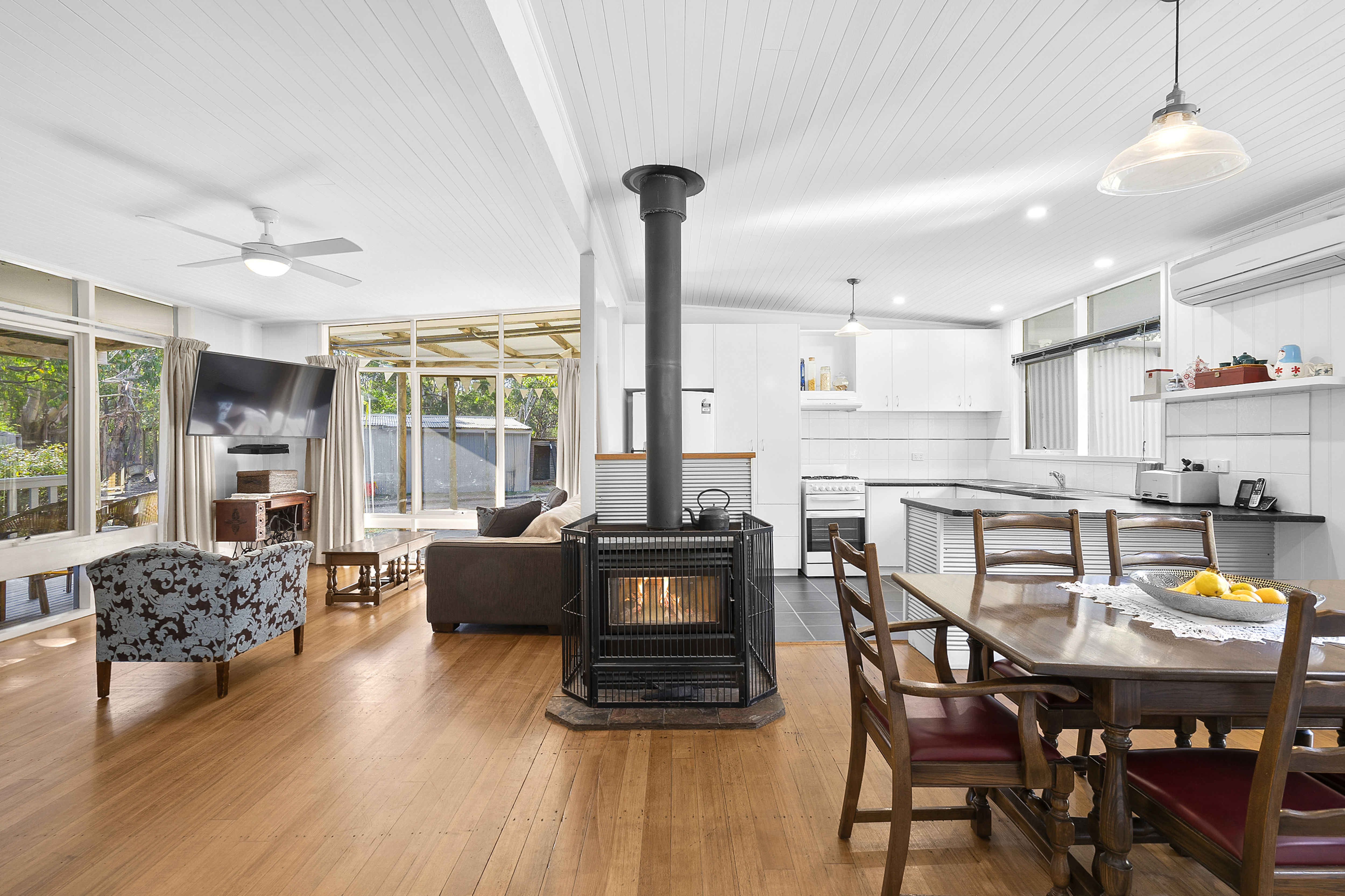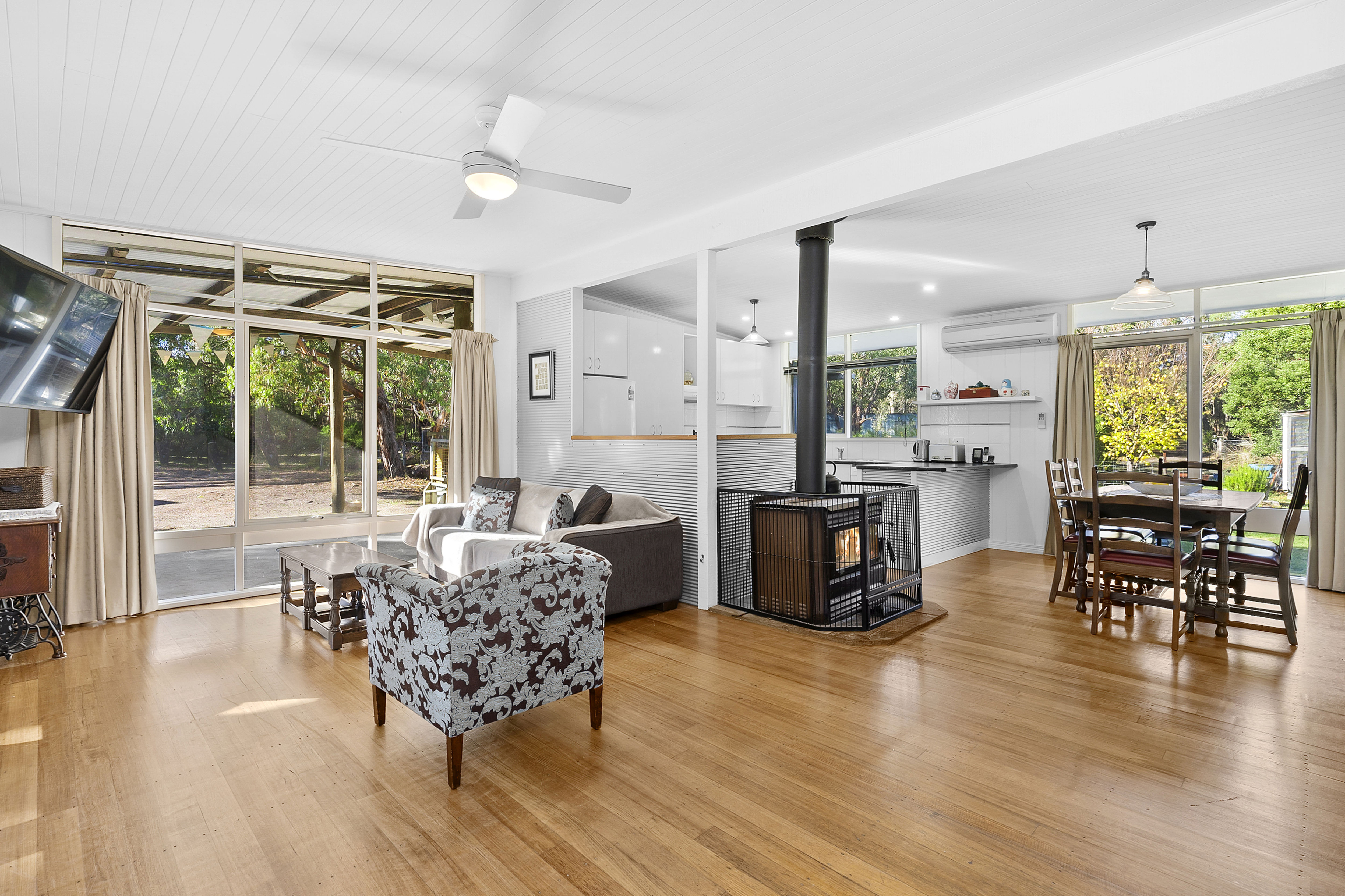 The substantial family residence located 200 metres up a winding driveway features a spacious open plan living/dining/kitchen with wood heater and reverse cycle air conditioner, formal lounge or rumpus room.