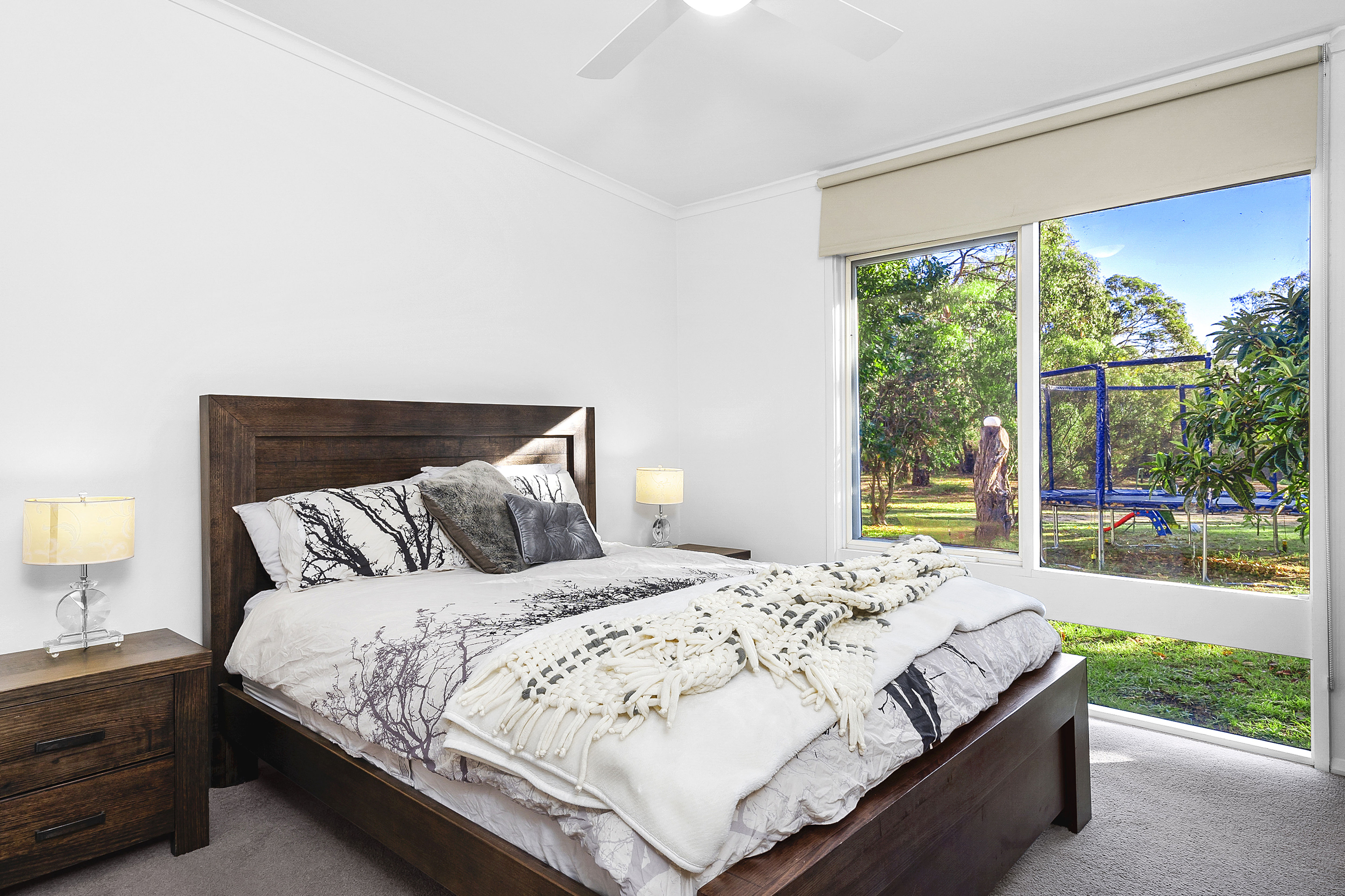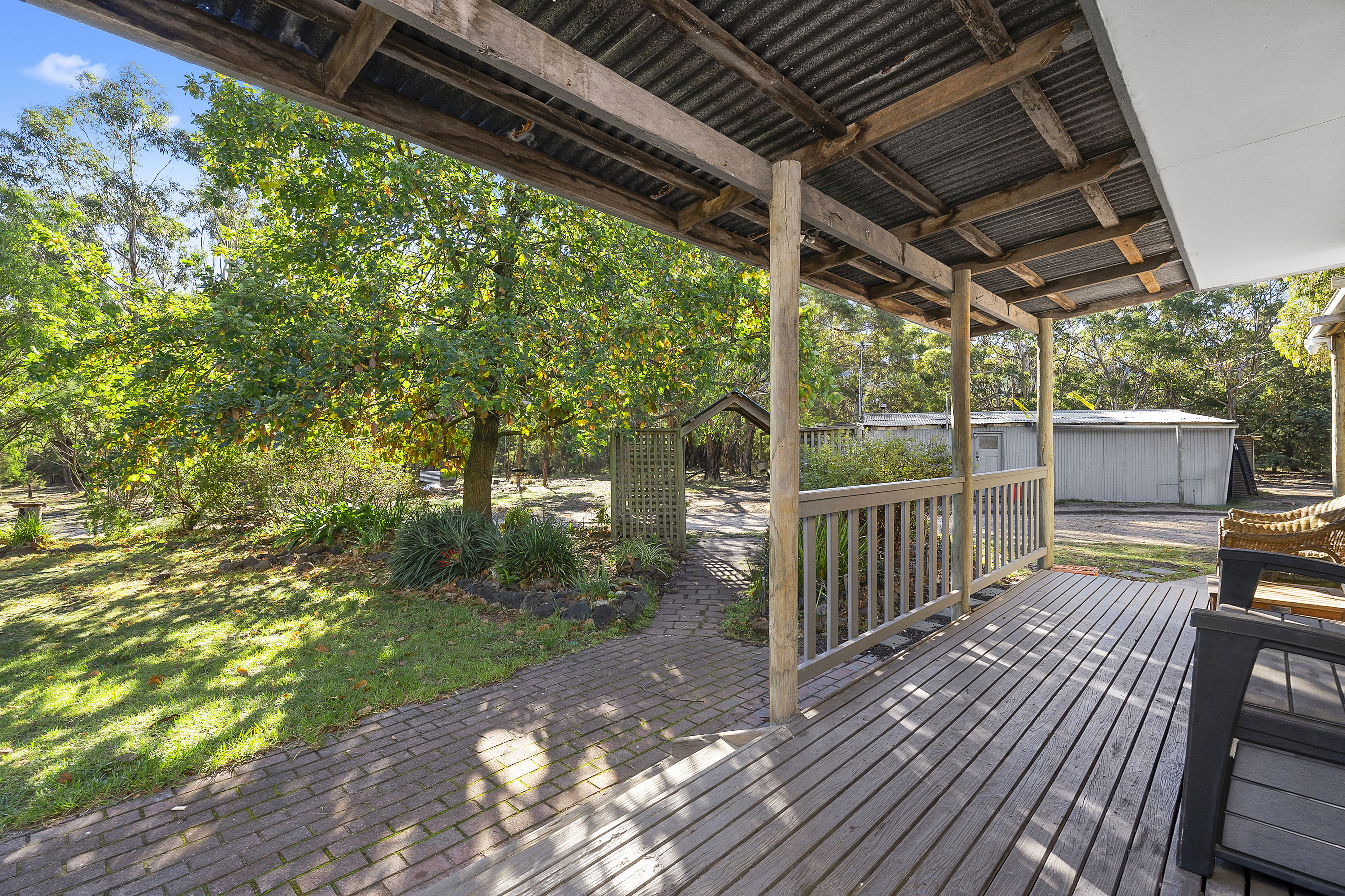 A veranda along the front of the house has a northerly aspect and looks out over extensive lawns established trees and natural bushland.