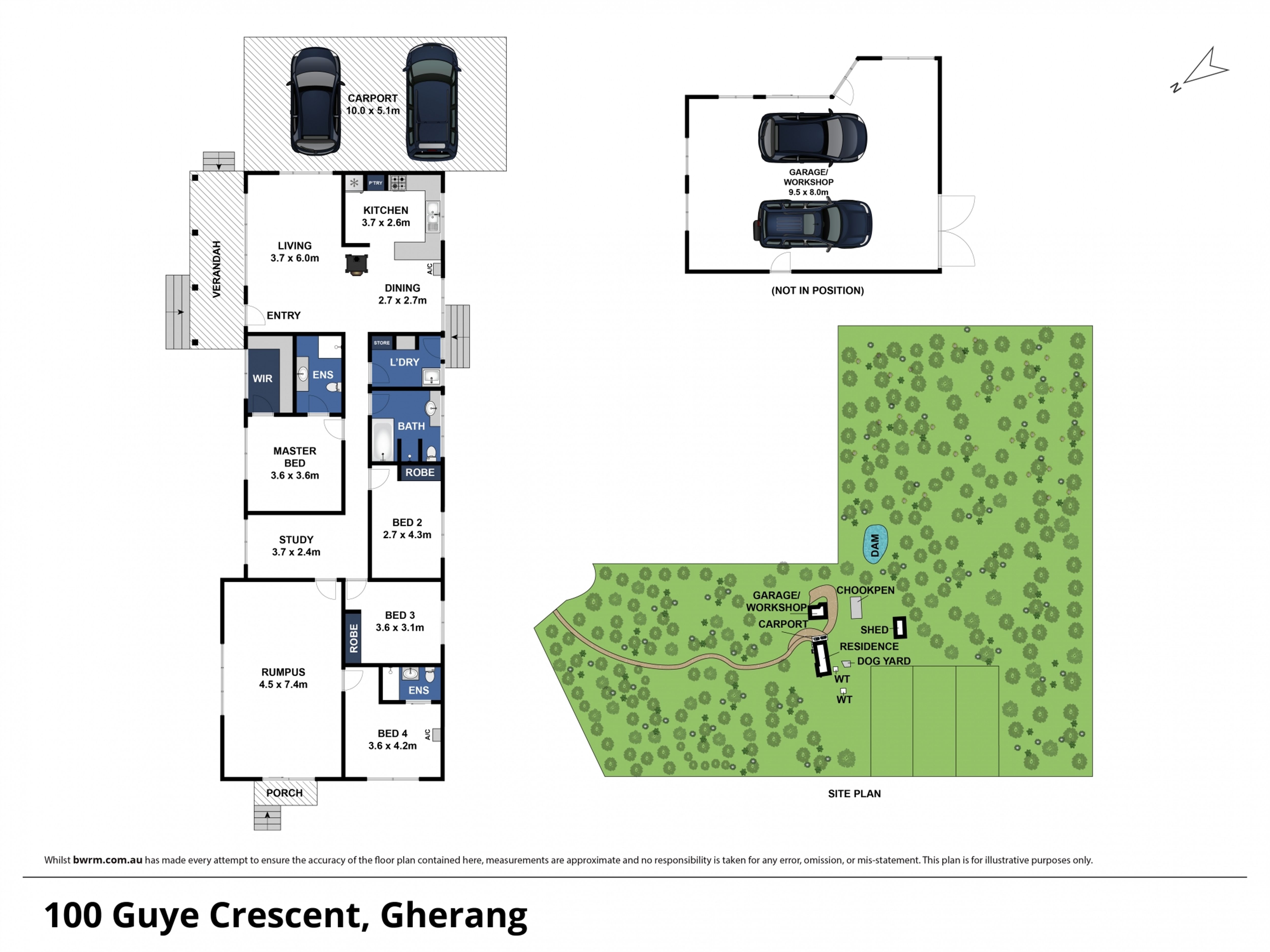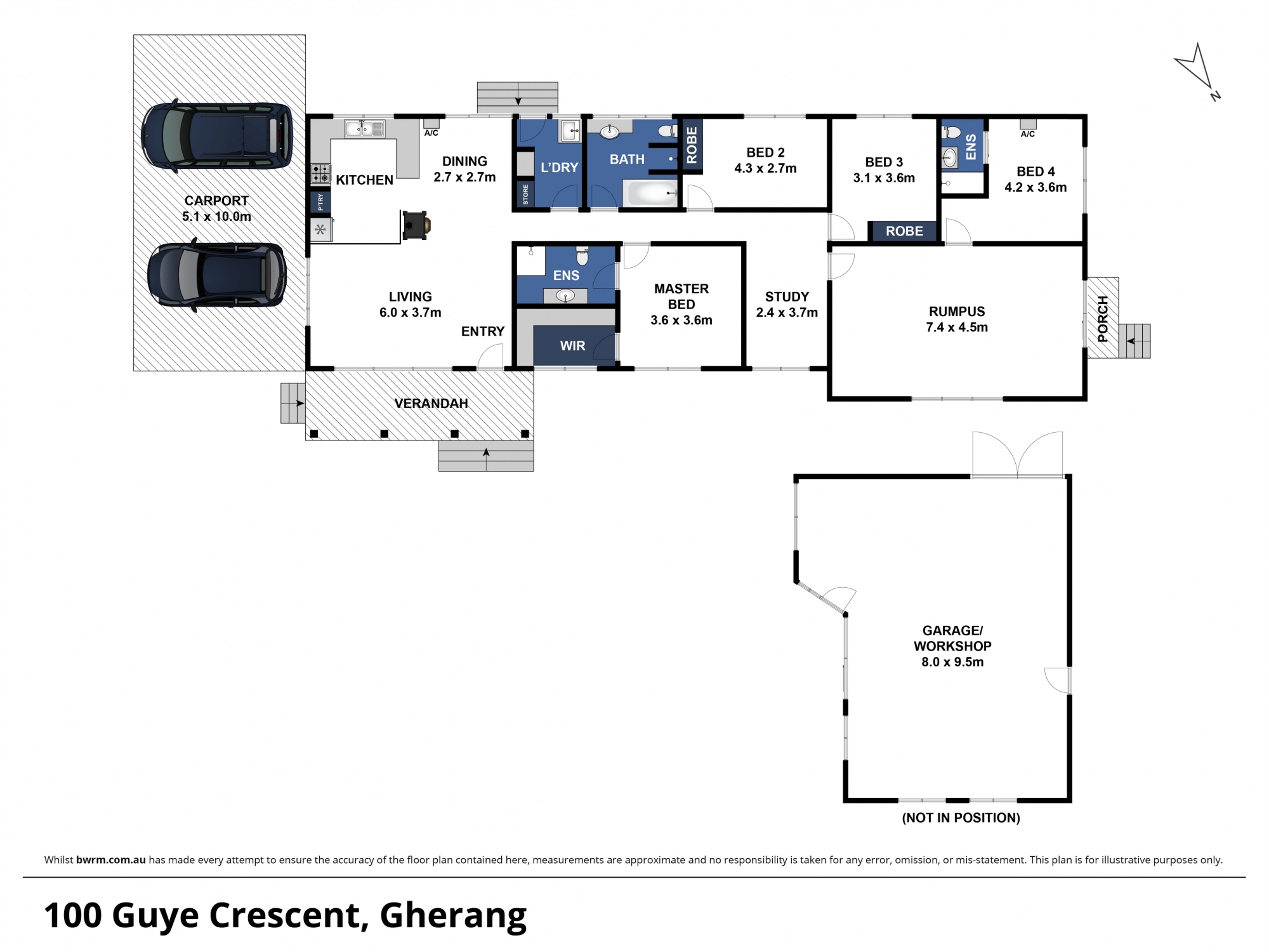 There are four bedrooms - master with walk-in-robe and ensuite, second bedroom with ensuite and air conditioning, study, central bathroom, laundry and double carport.